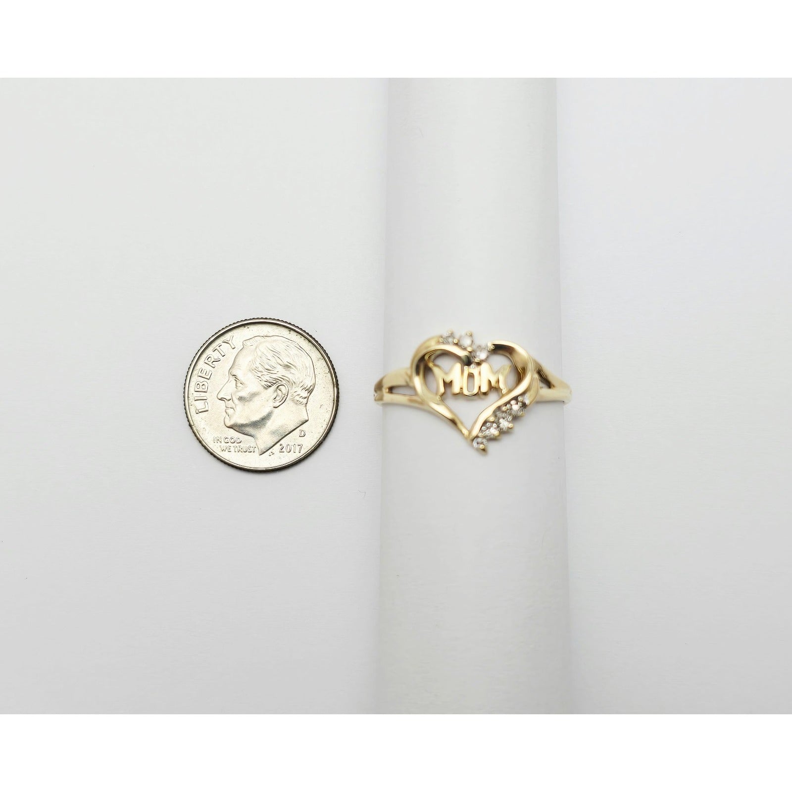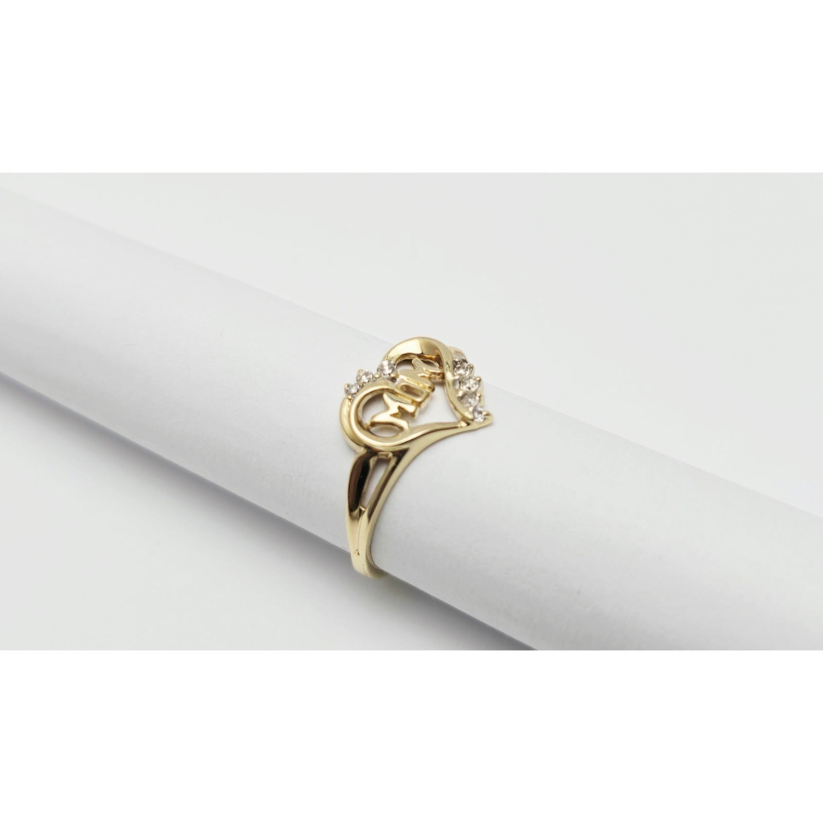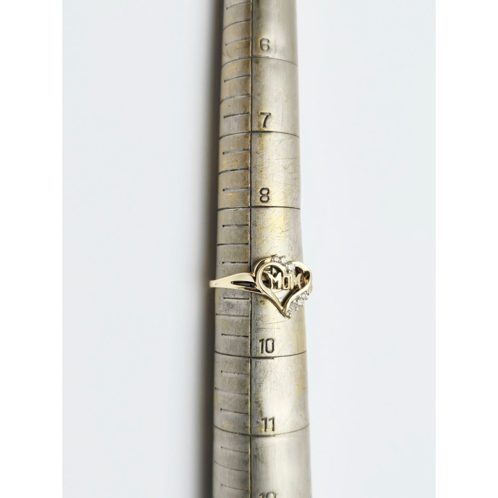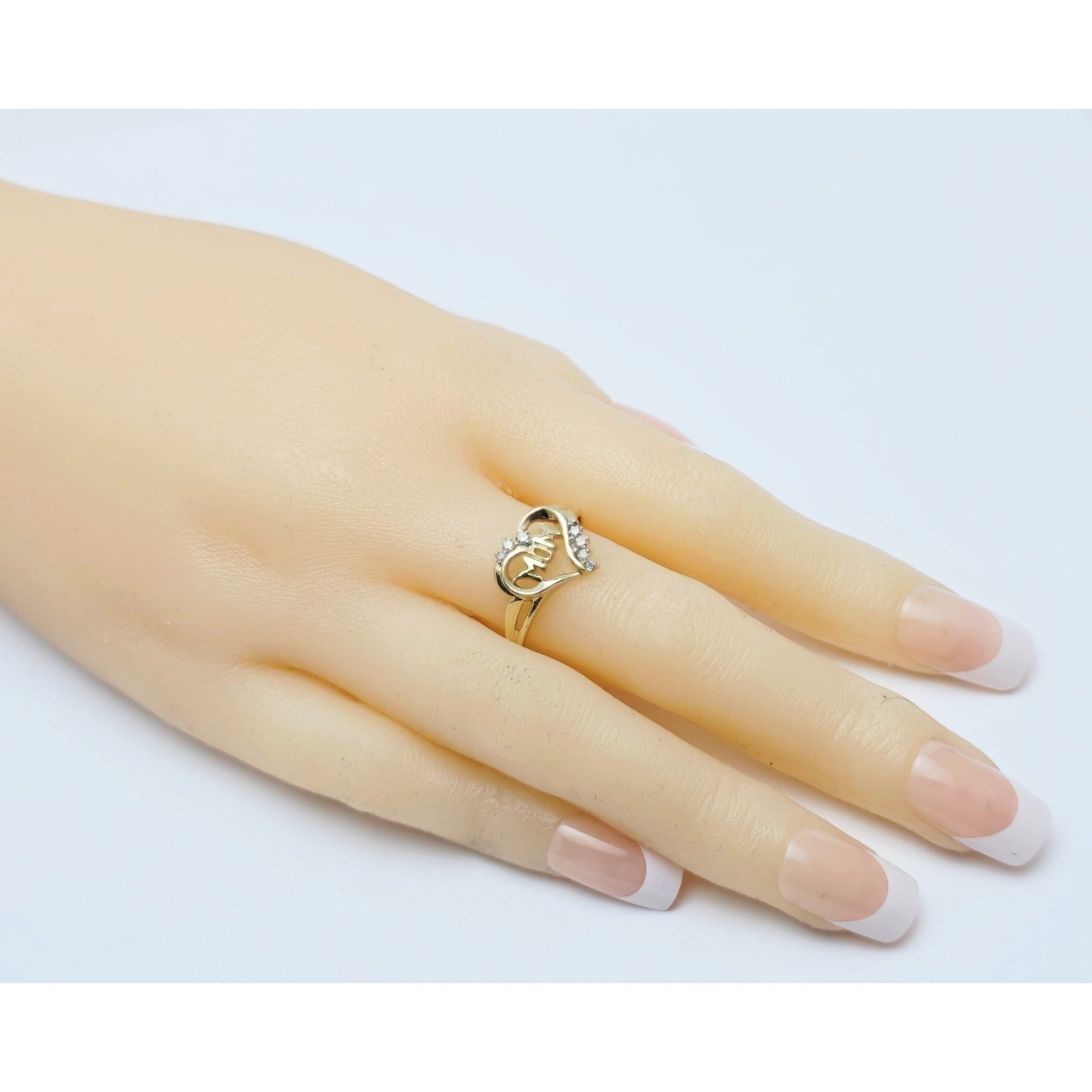 10K Yellow Gold Heart Shaped Initial Mom Diamond Ring