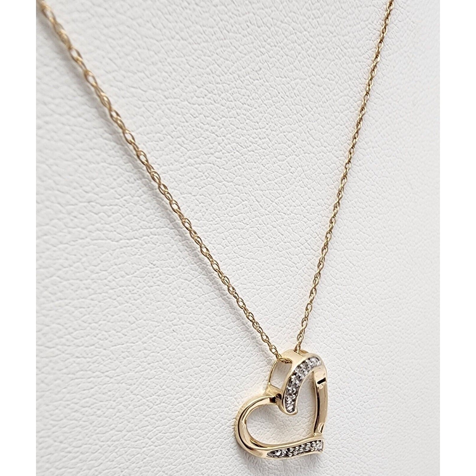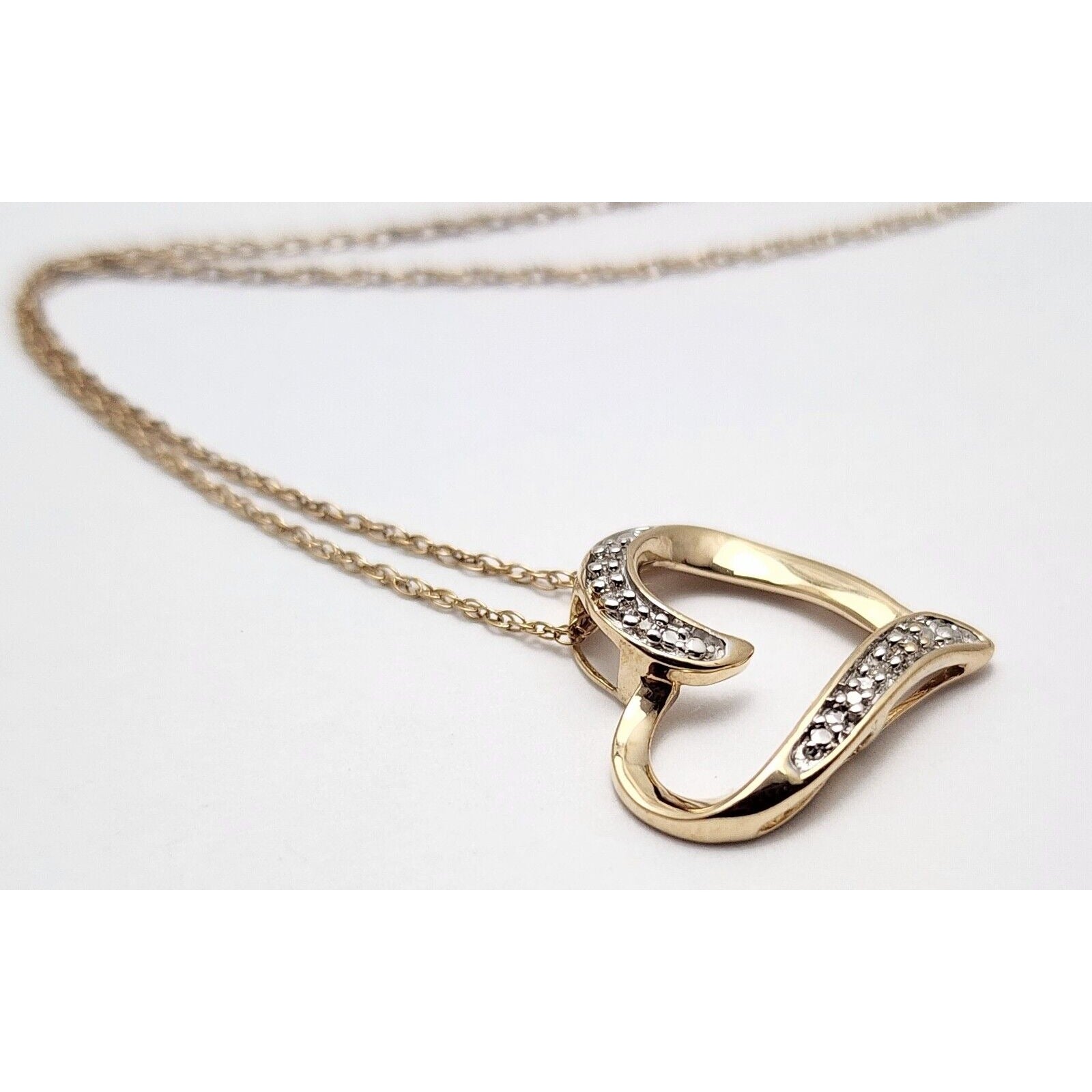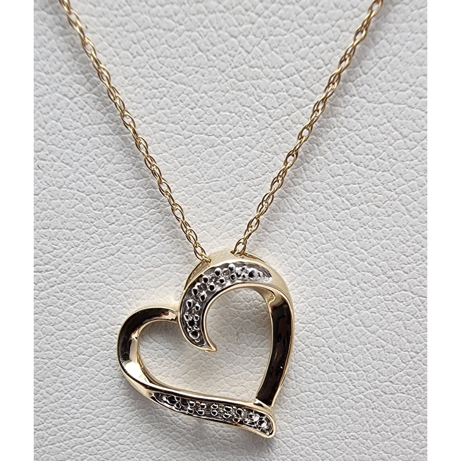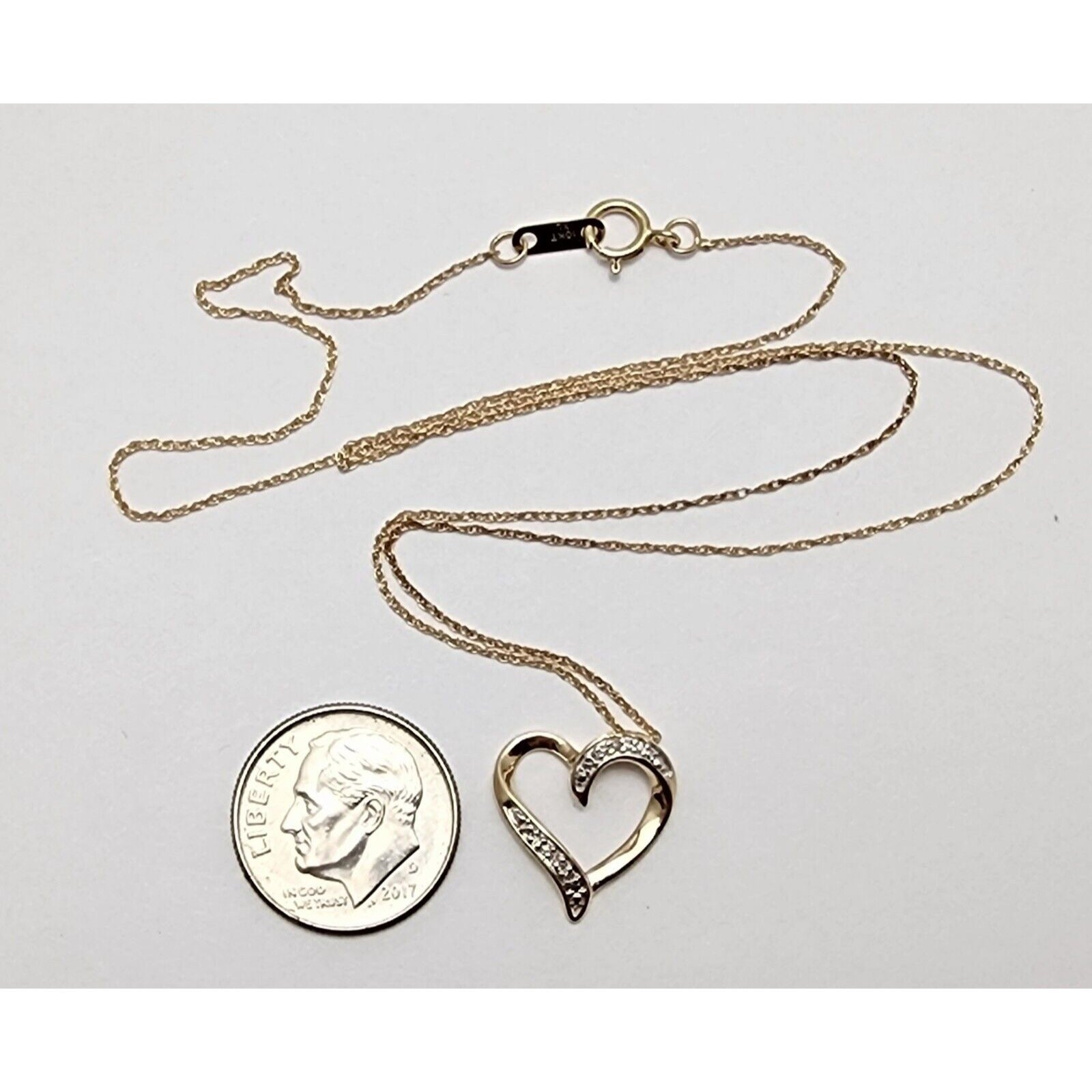 10K Yellow Gold Open Heart Diamond Charm Pendant & Link Chain Necklace