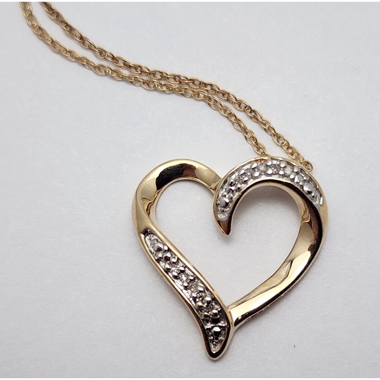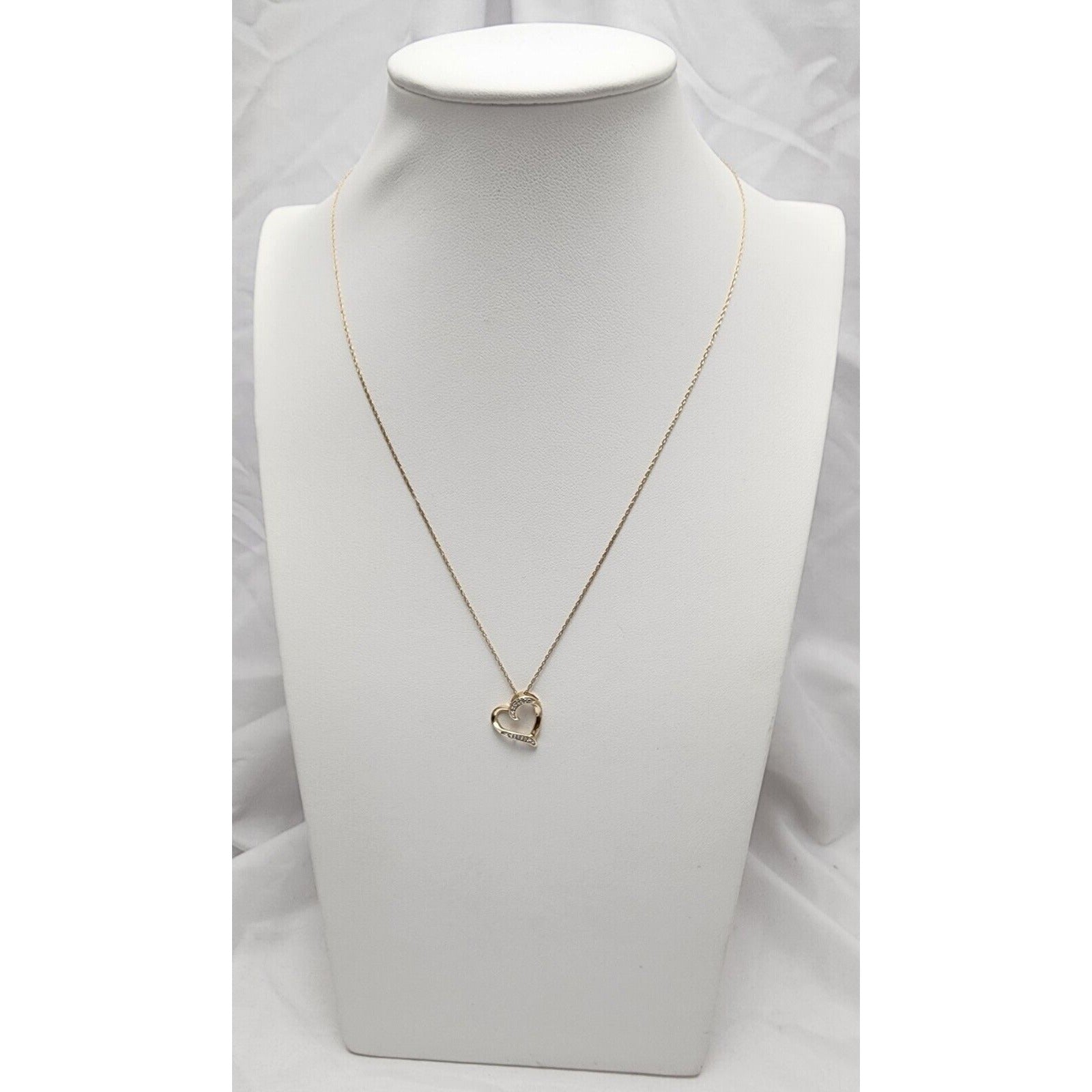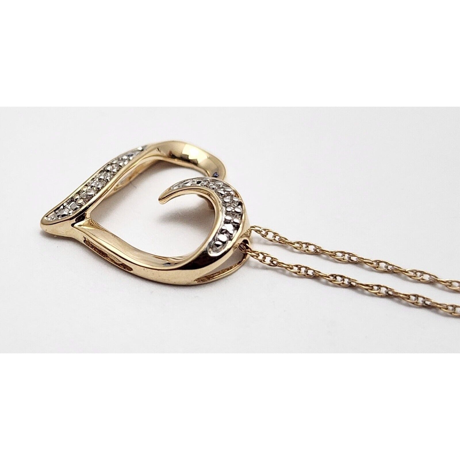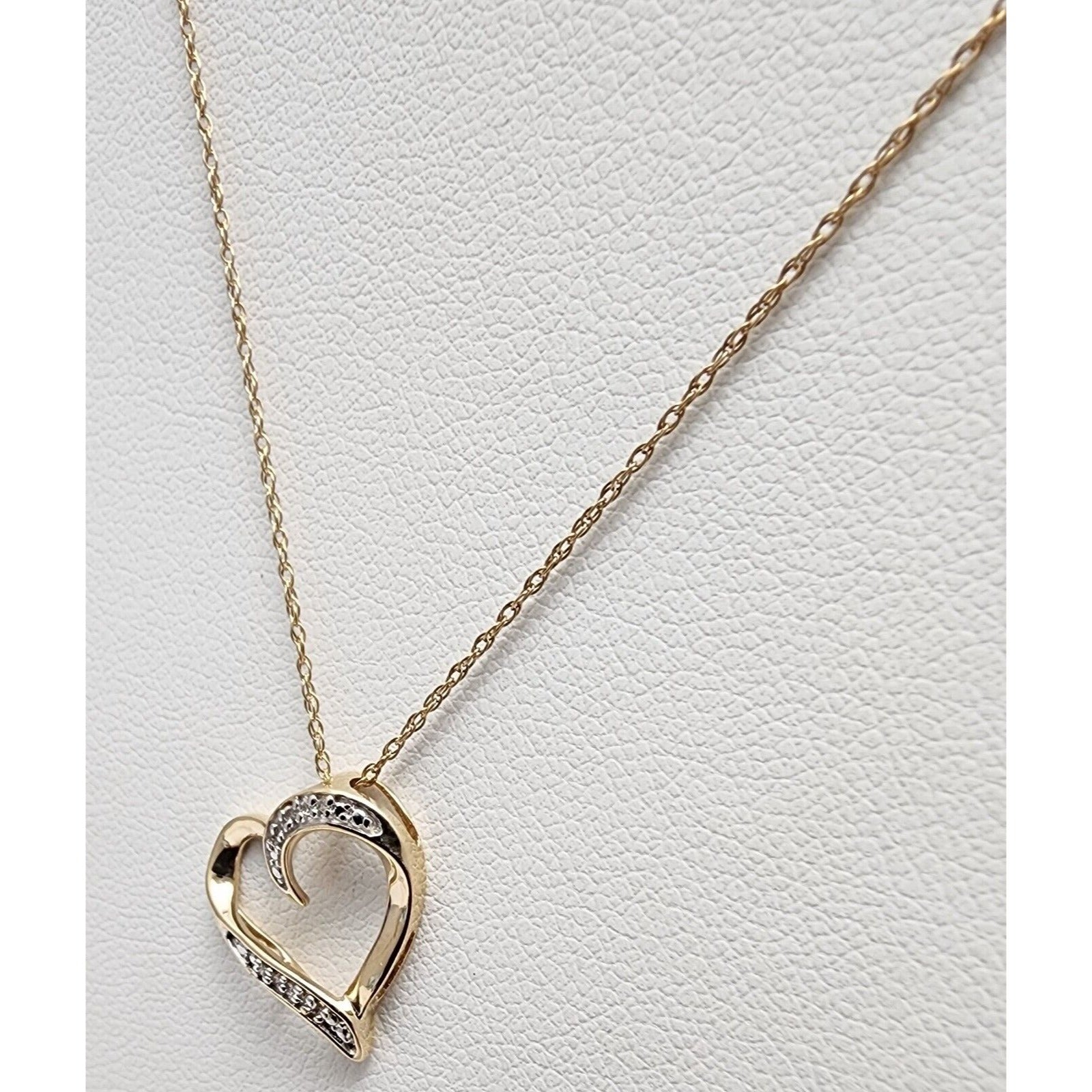 10K Yellow Gold Open Heart Diamond Charm Pendant & Link Chain Necklace