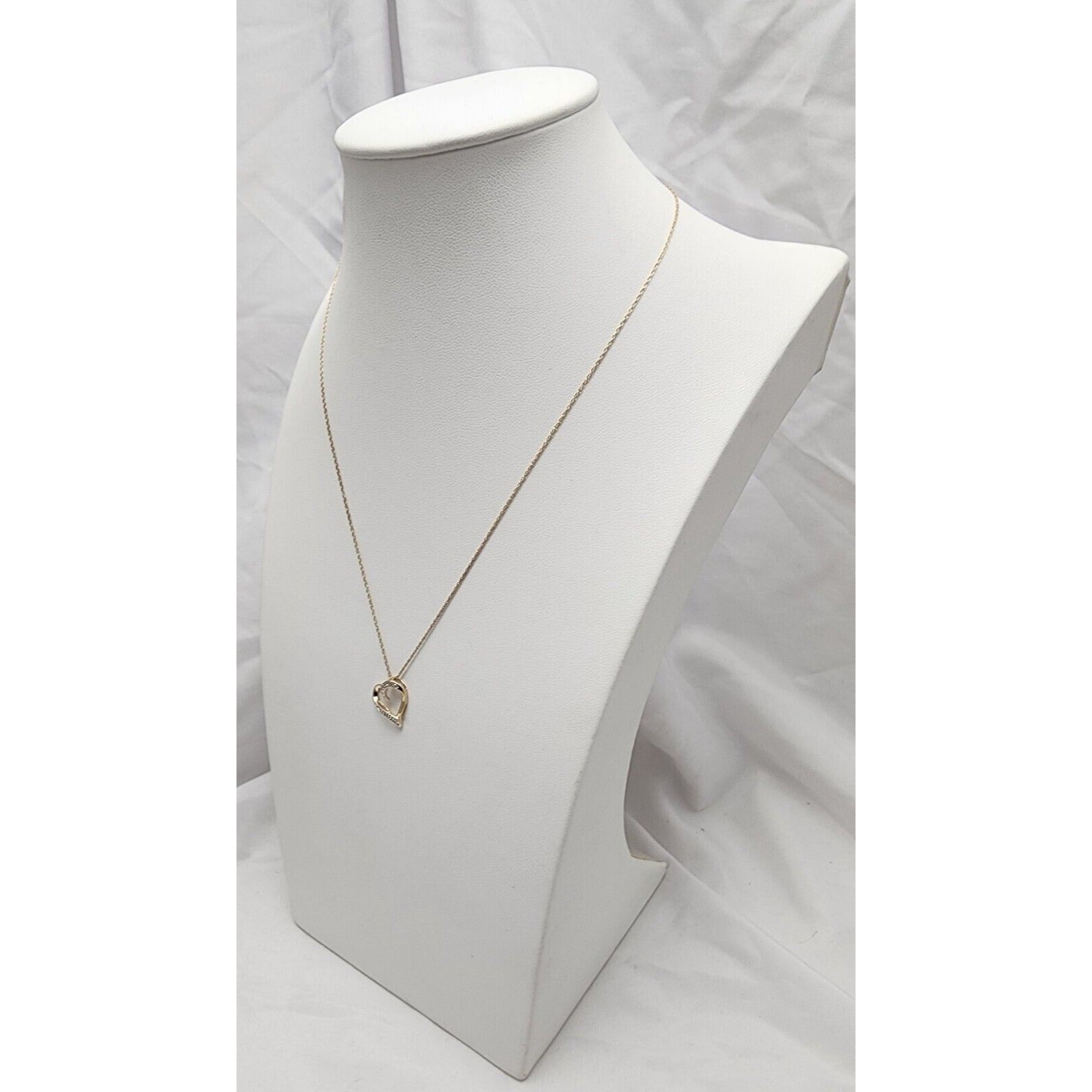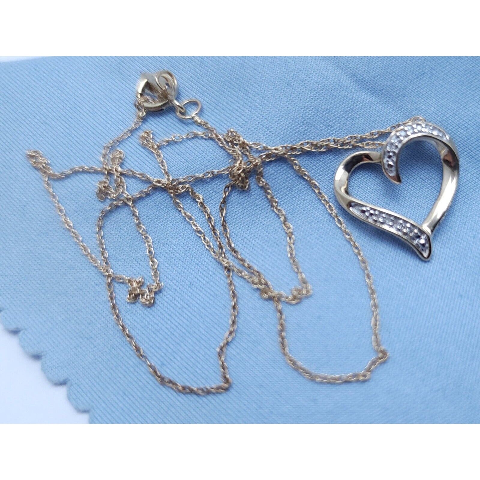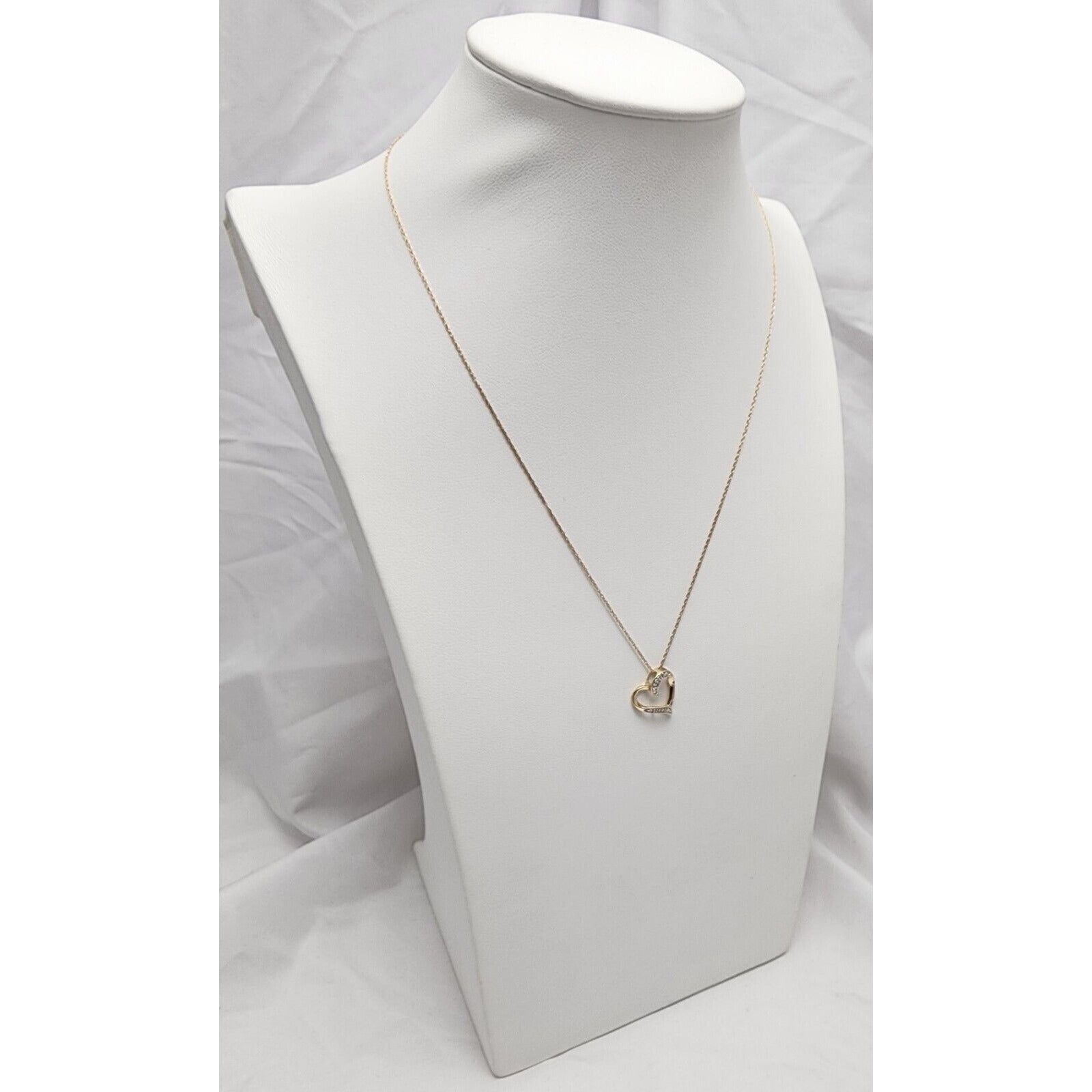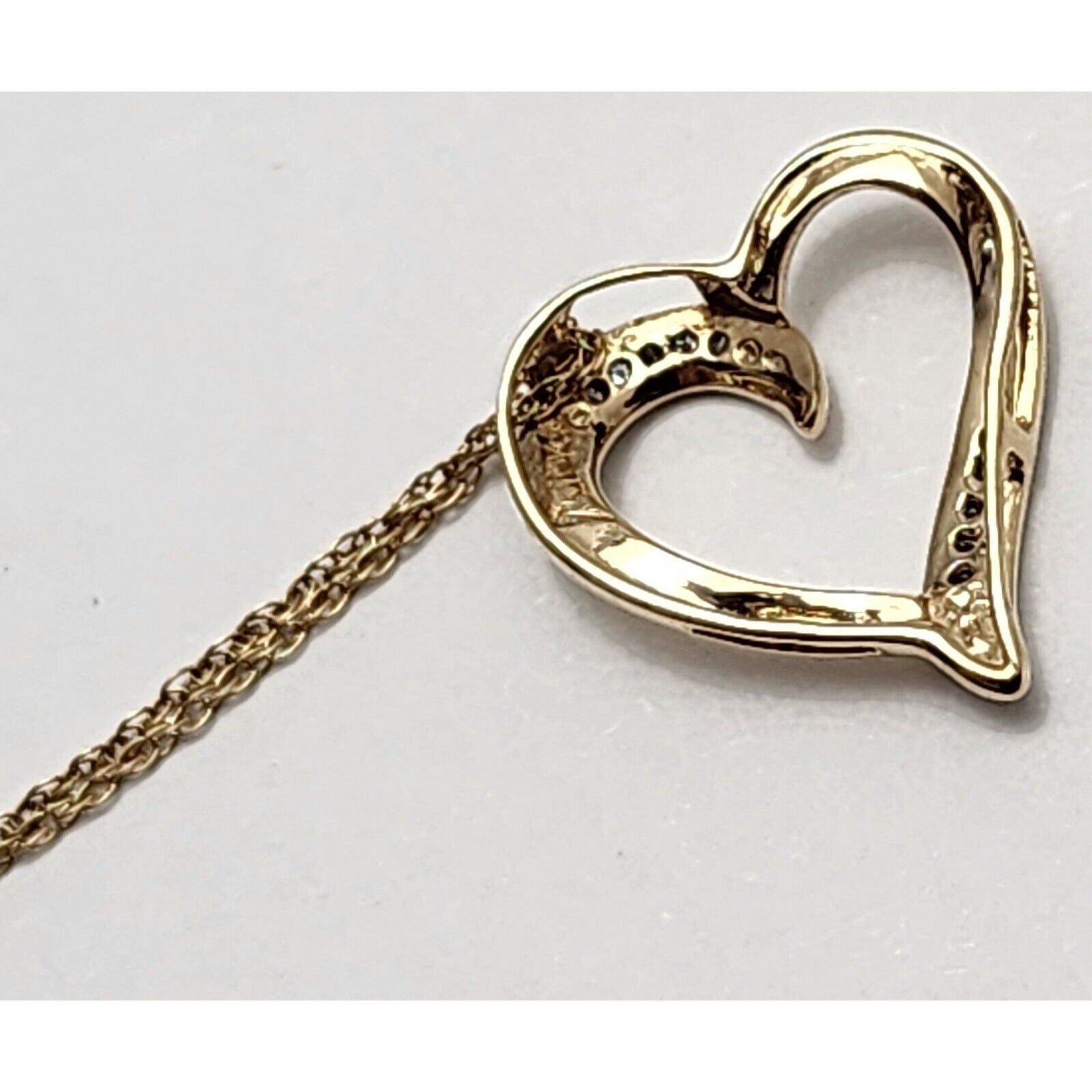 10K Yellow Gold Open Heart Diamond Charm Pendant & Link Chain Necklace