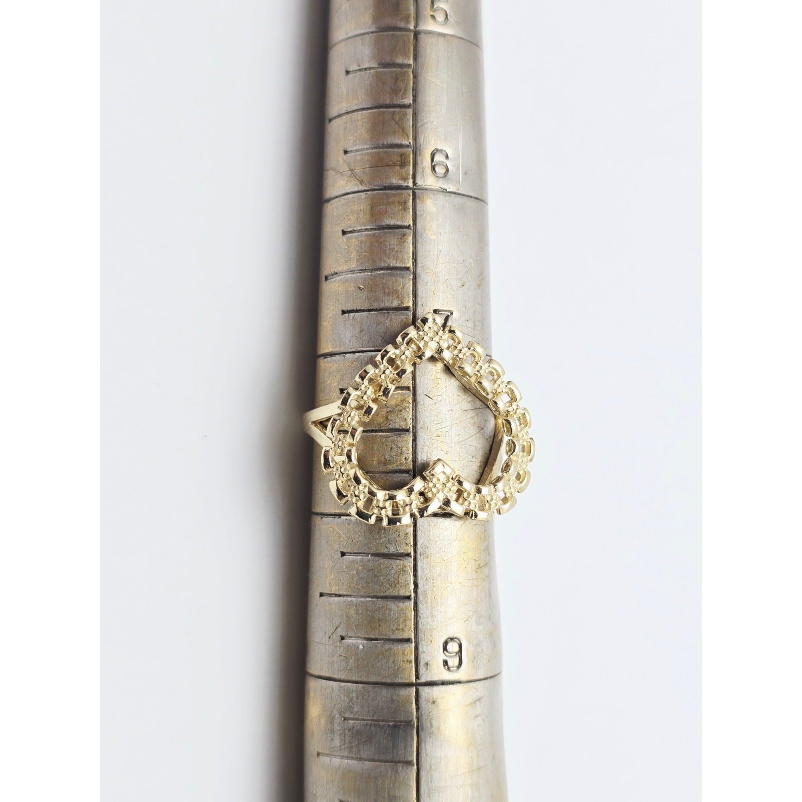 10K Yellow Gold Open Heart Shaped Rolex Style Ring