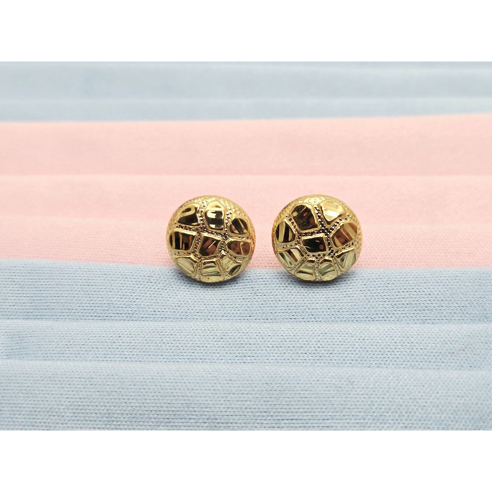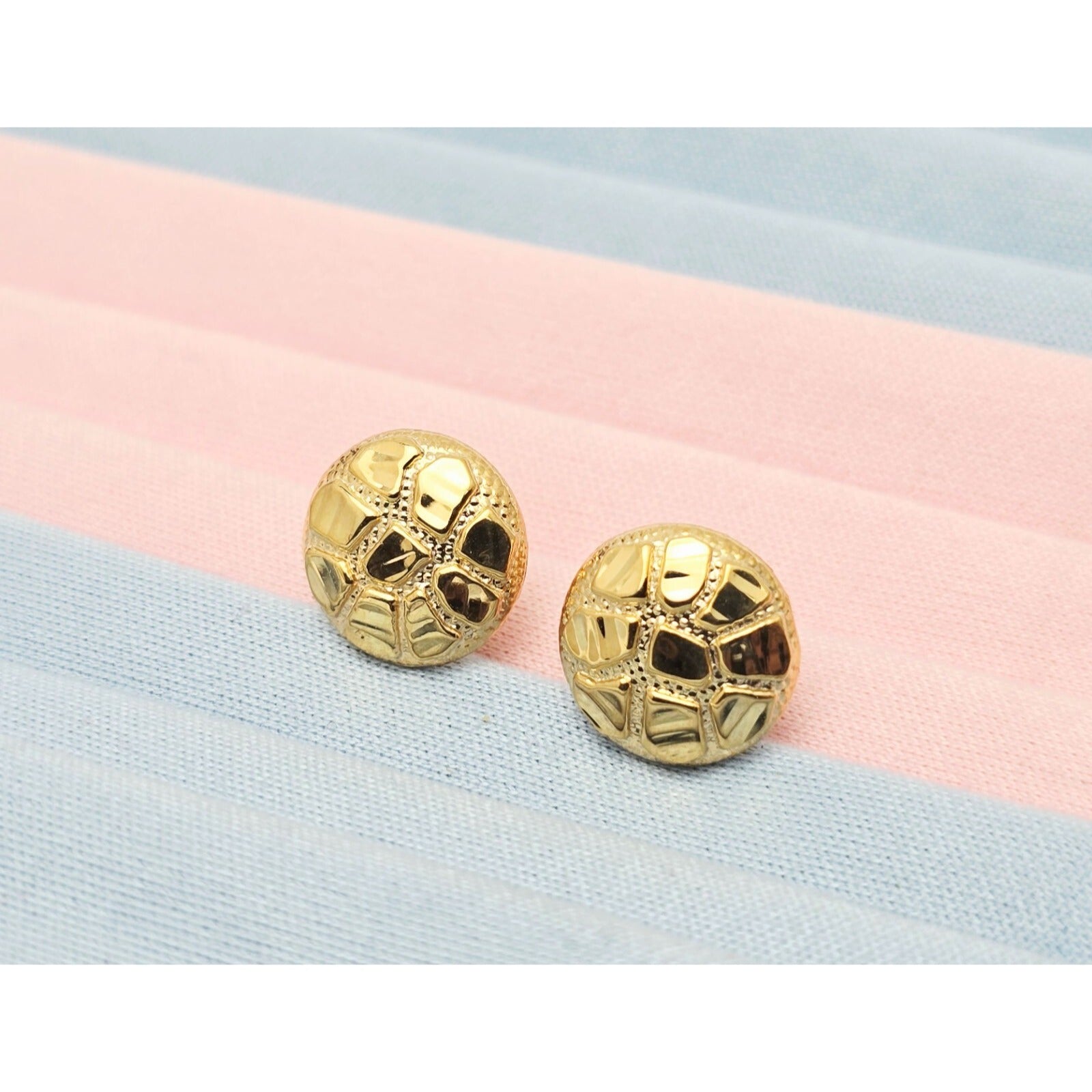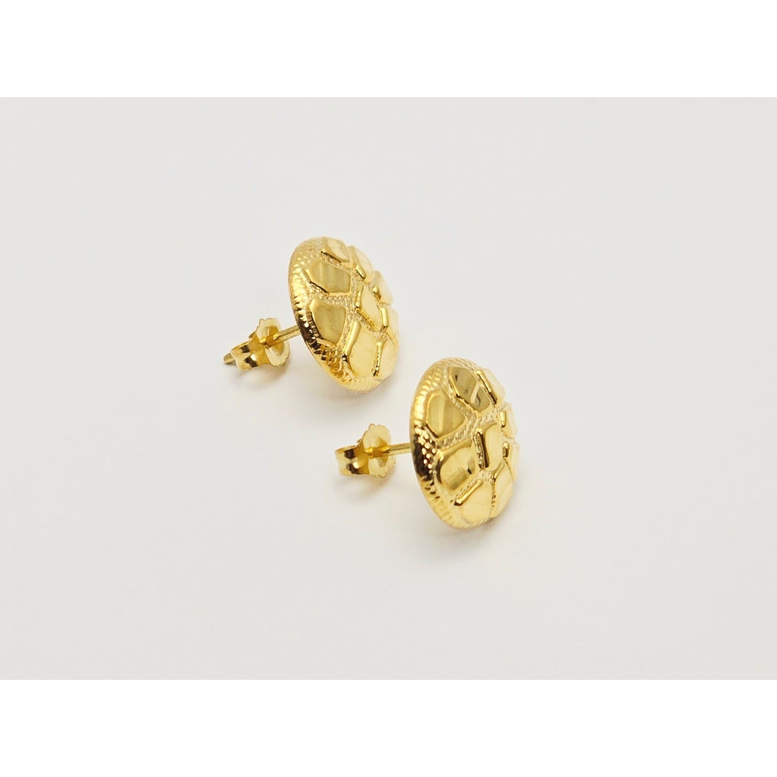 10K Yellow Gold Round Nugget Stud Earrings