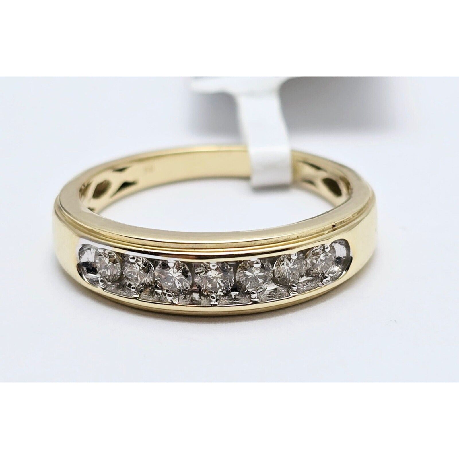 10K Yellow Gold Single Row 7 Diamond Wedding Band Ring