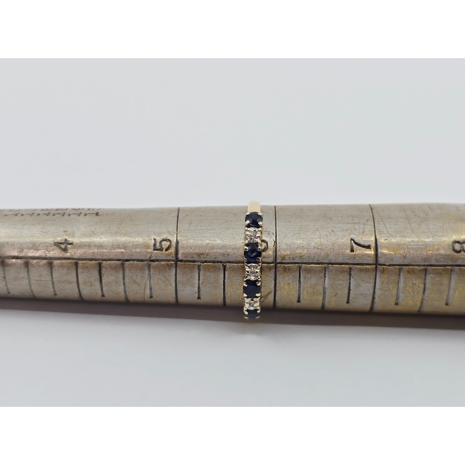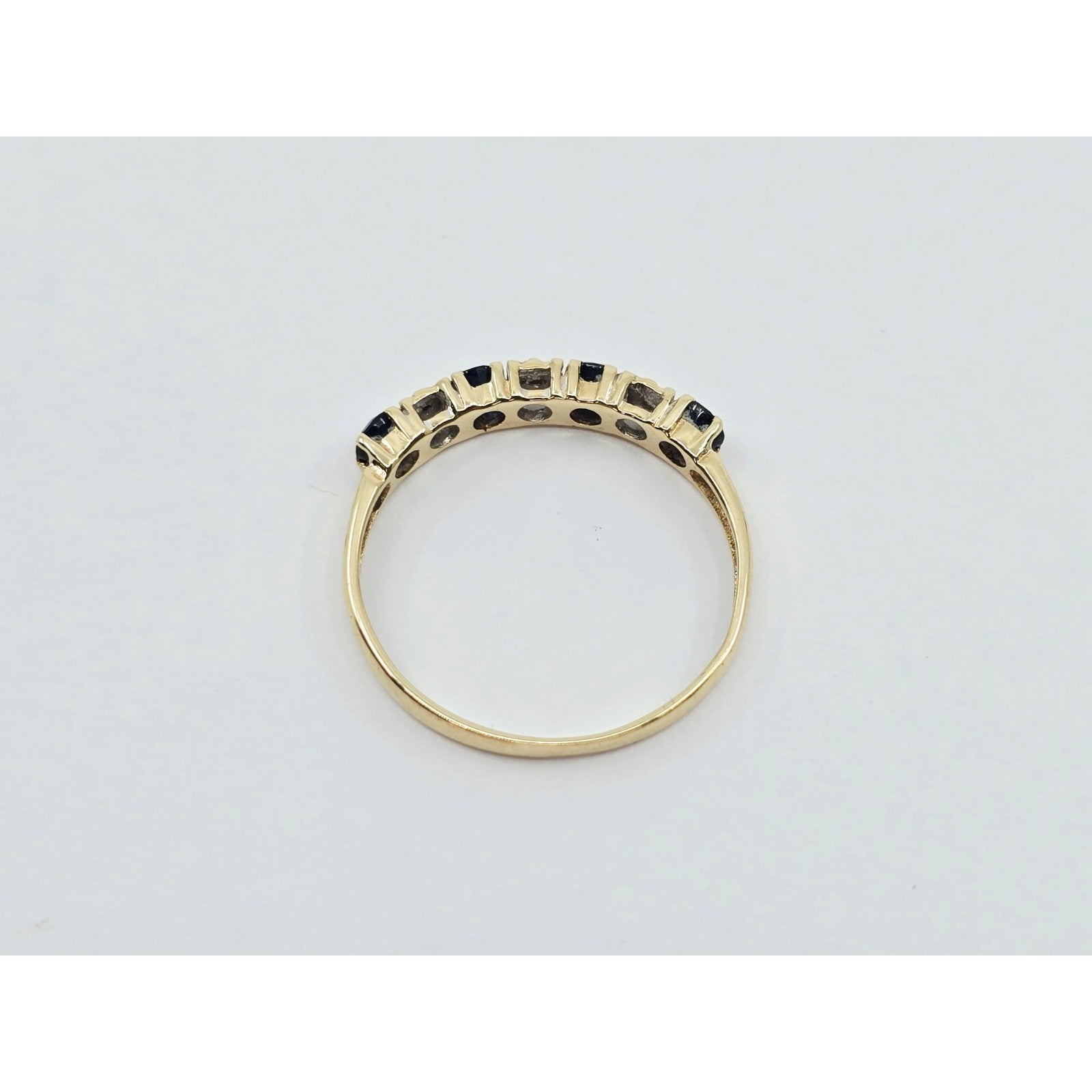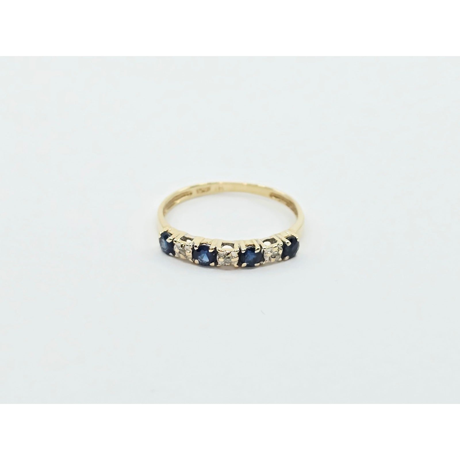 10K Yellow Gold Single Row Sapphire & Diamond Ring