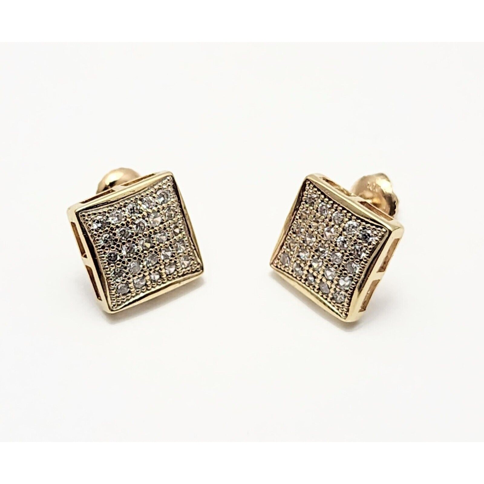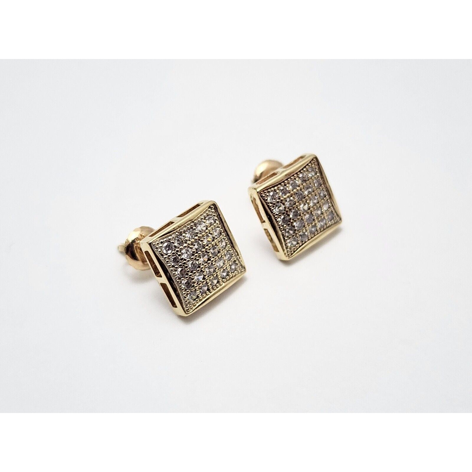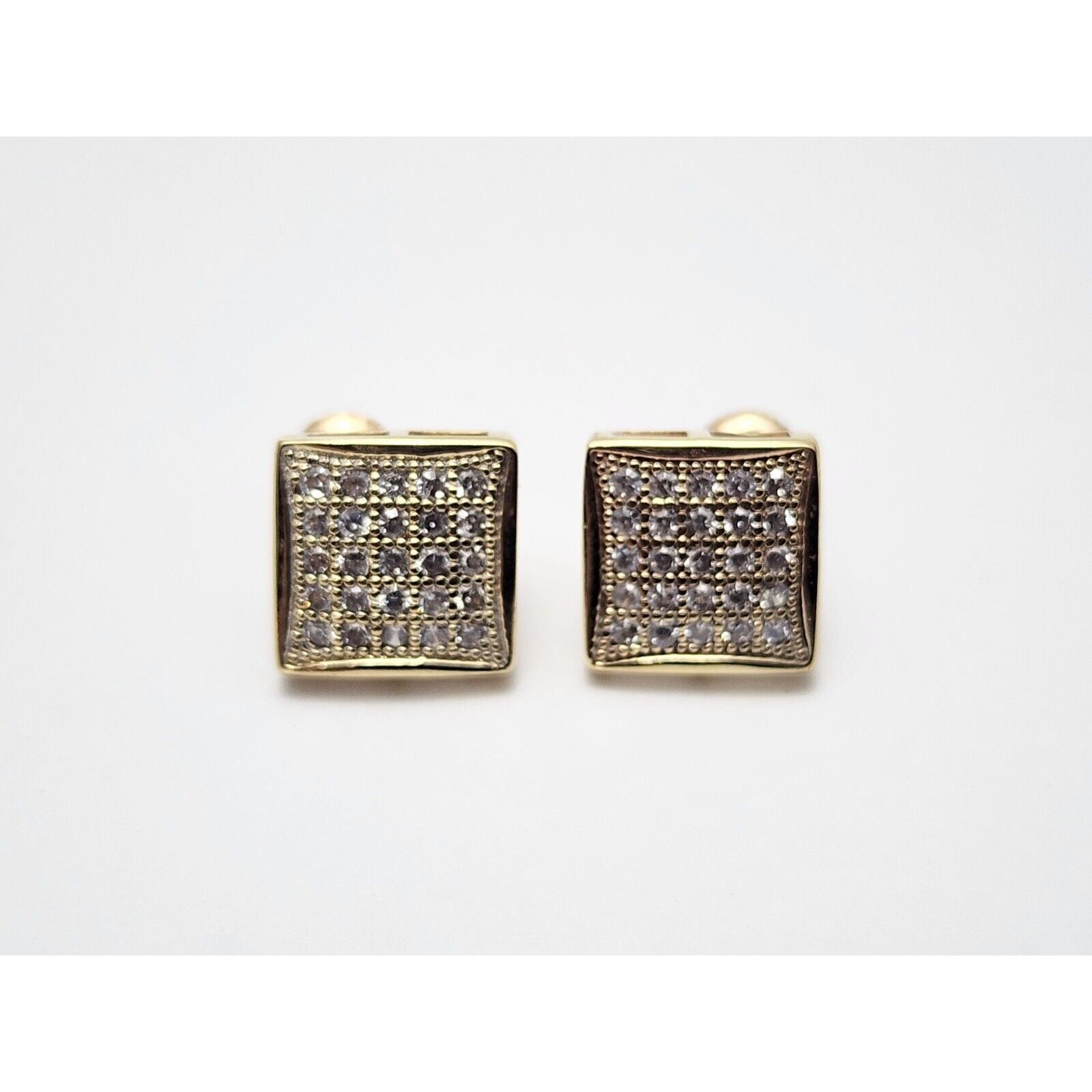 10K Yellow Gold Square Shaped Cubic Zirconia Stud Earrings