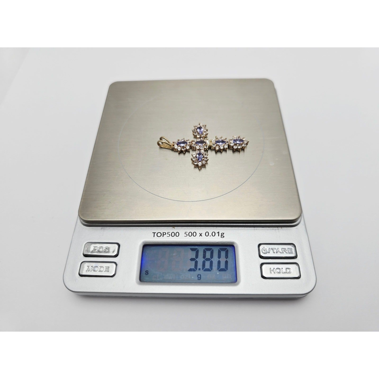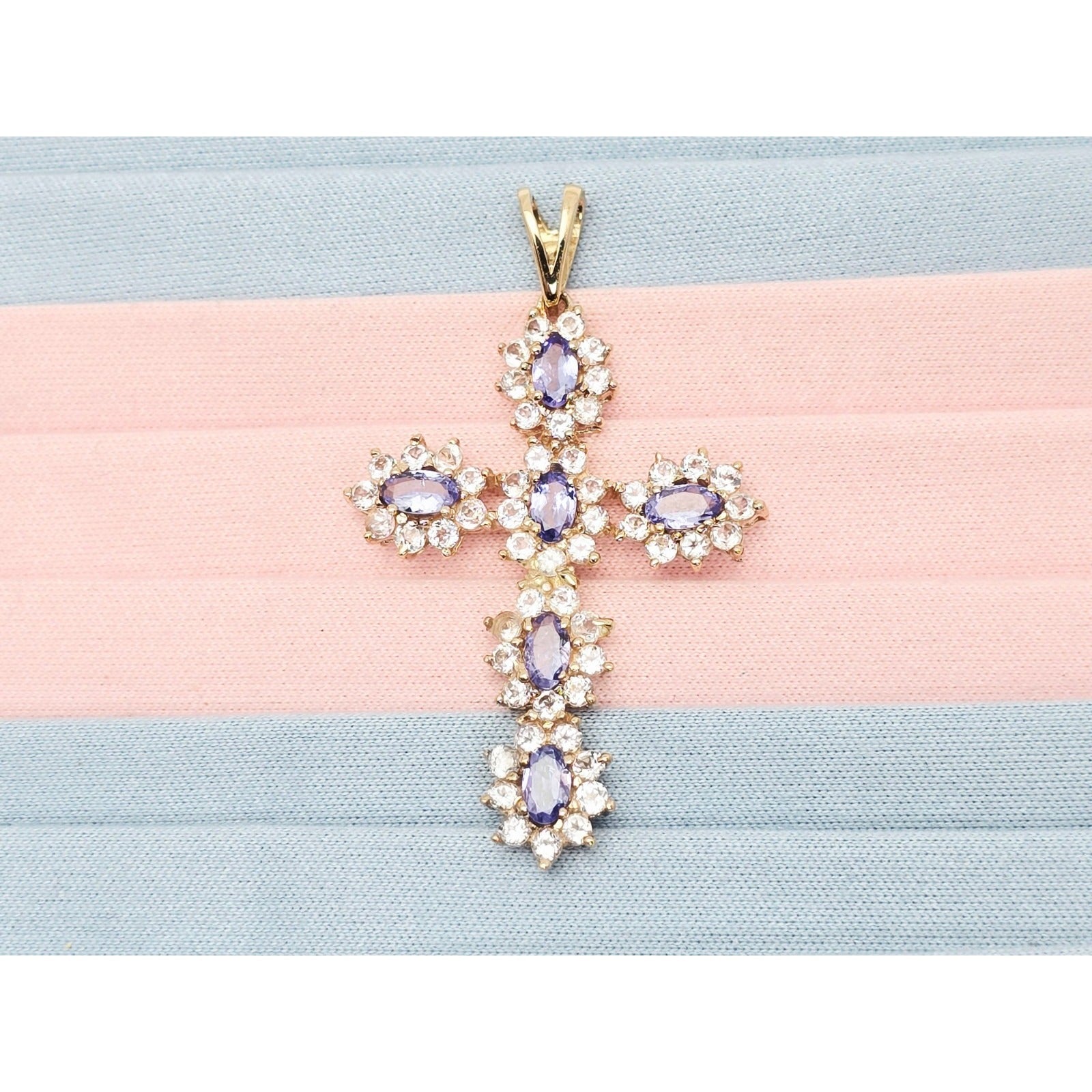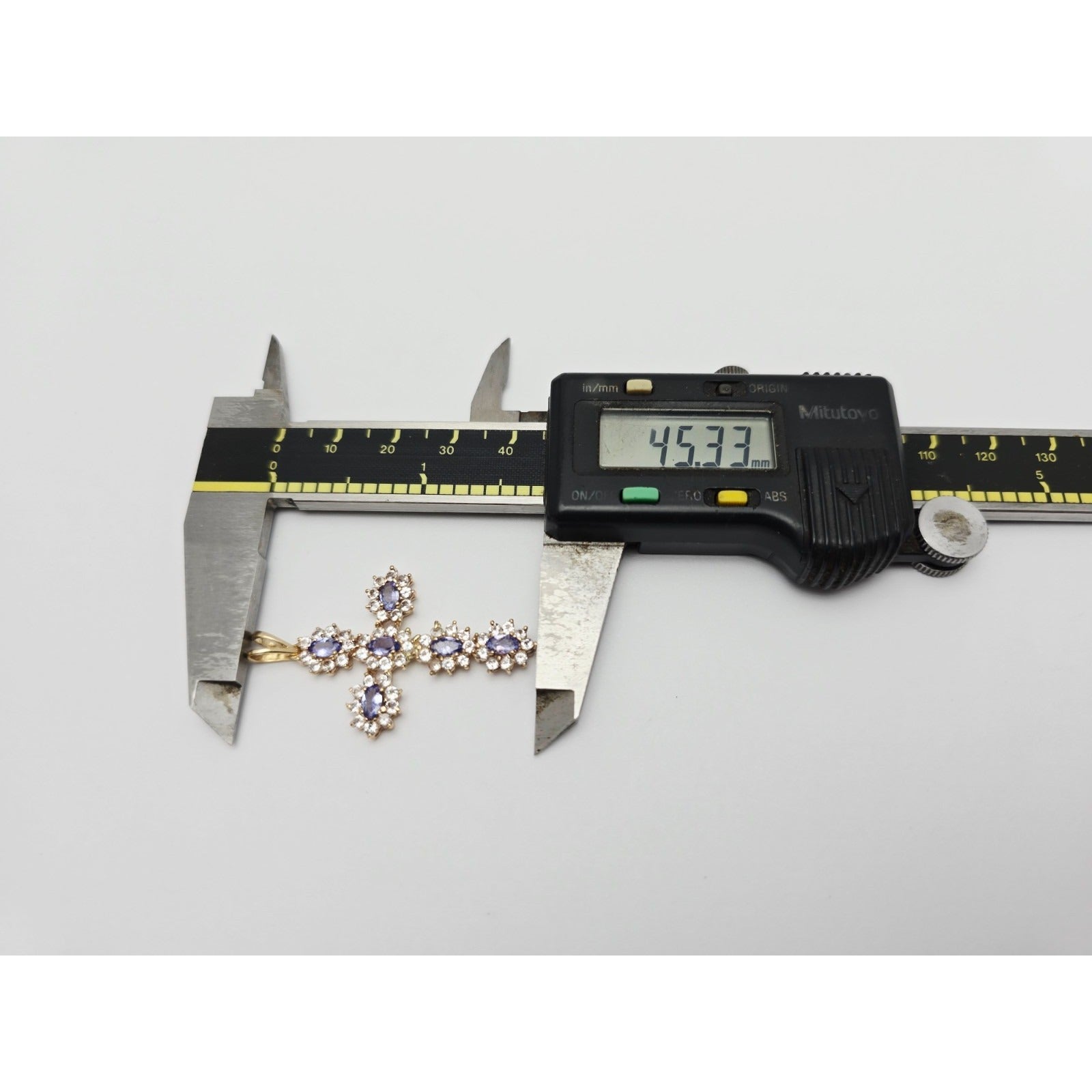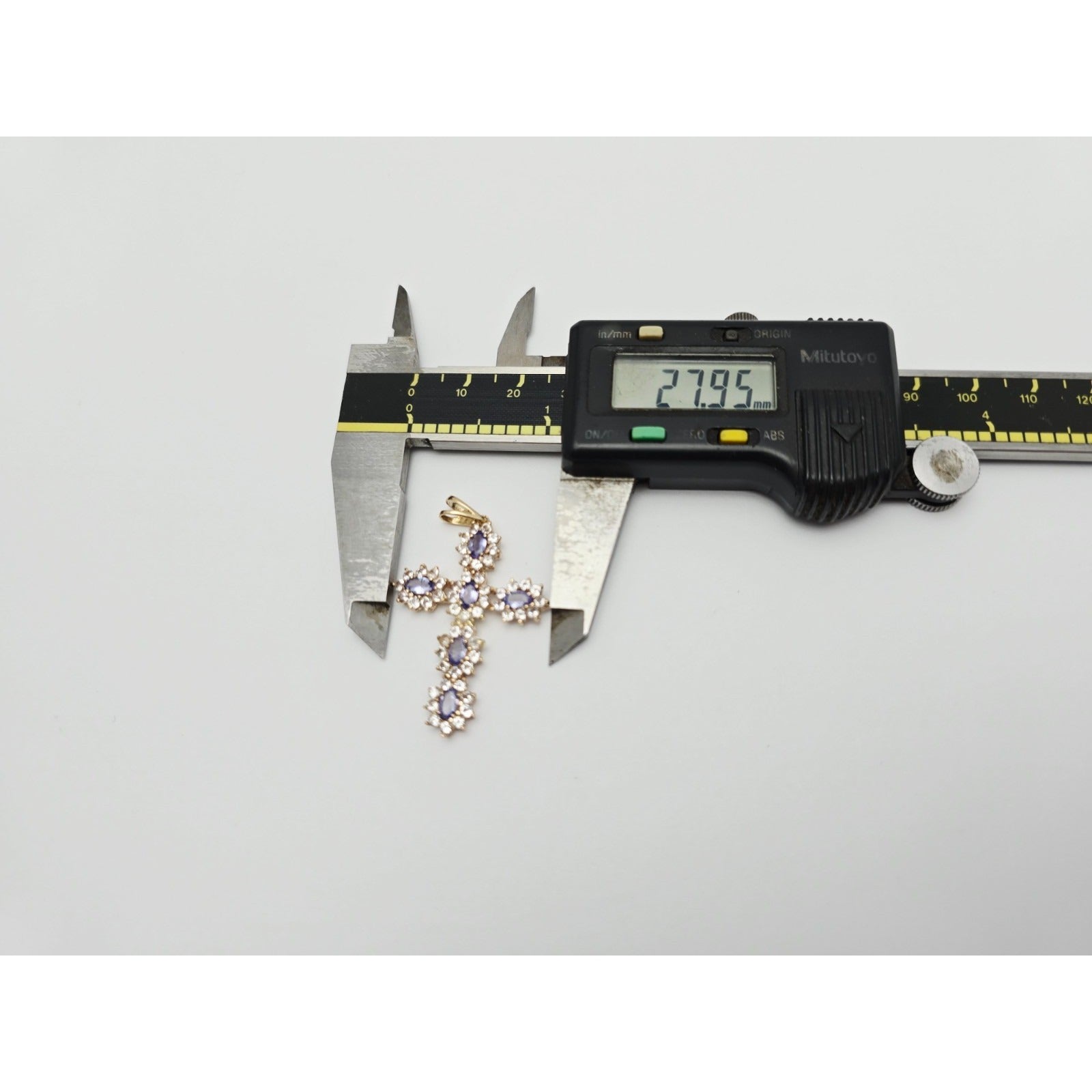 10K Yellow Gold Tanzanite & CZ Cross Pendant Charm