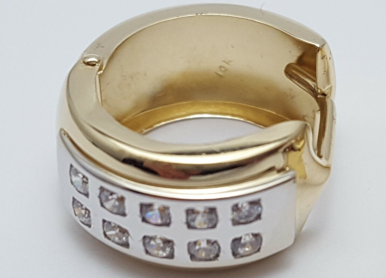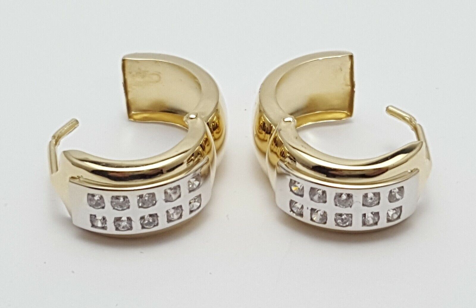14K Multi Tone Gold Designer Cubic Zirconia Round Hoop Earrings