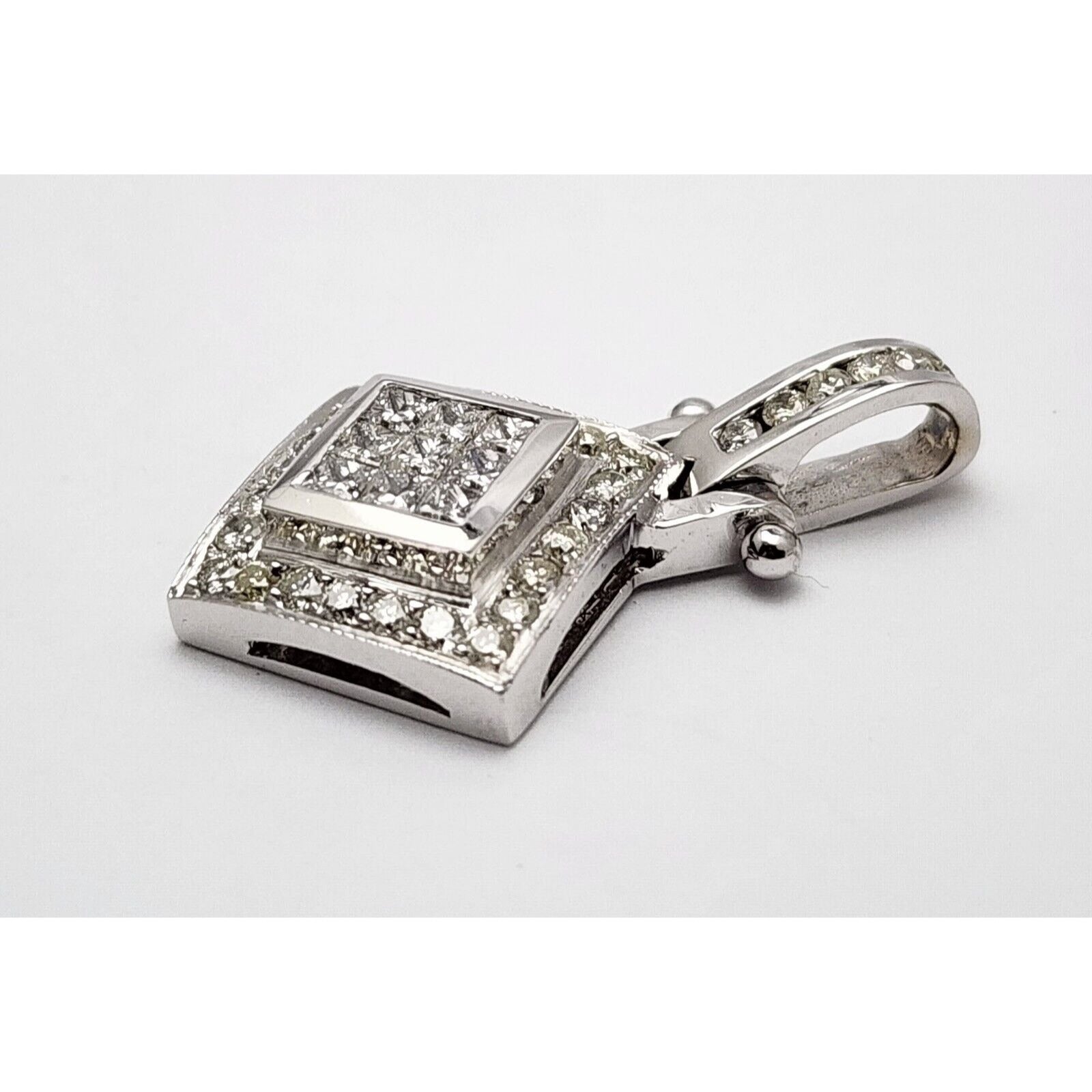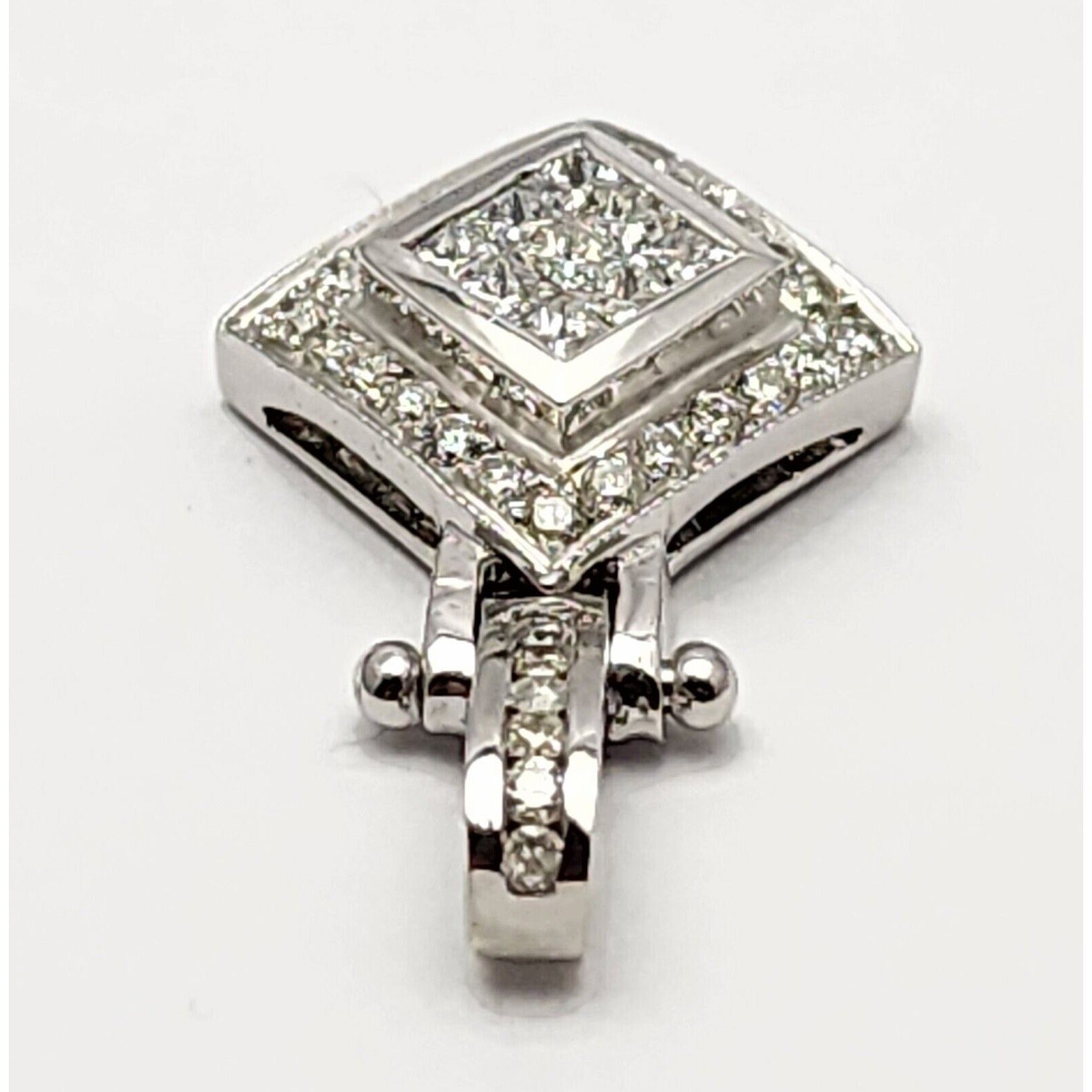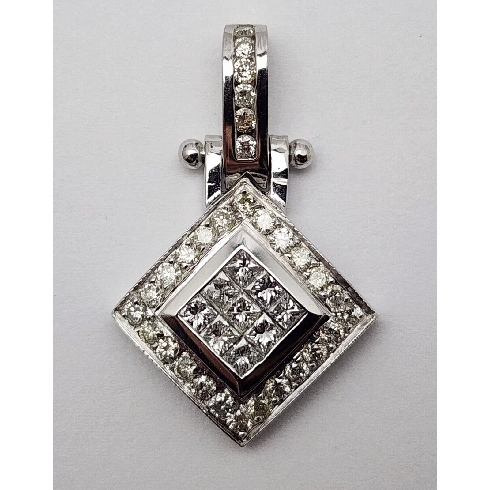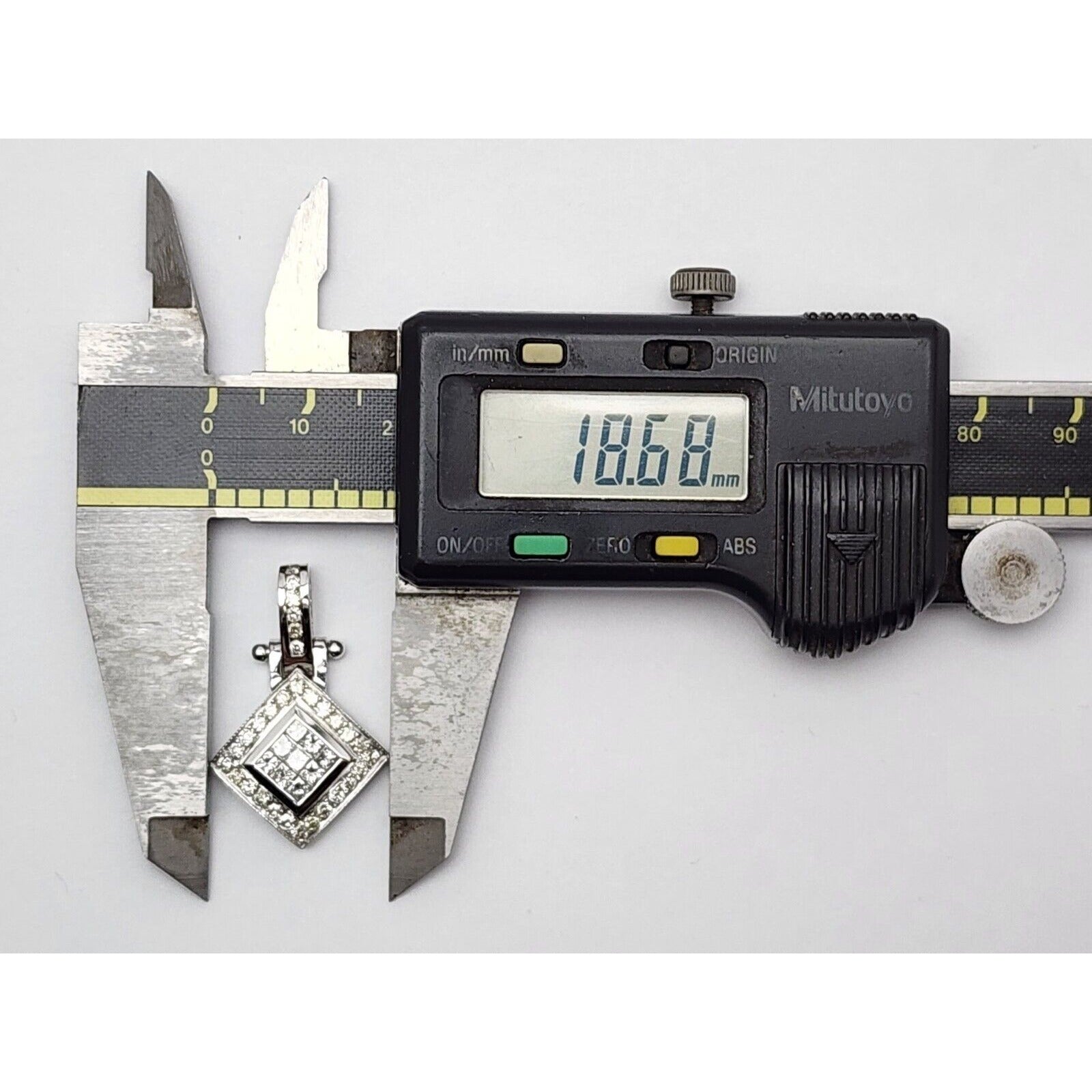 14K Solid White Gold Rhombus Diamond Charm Pendant