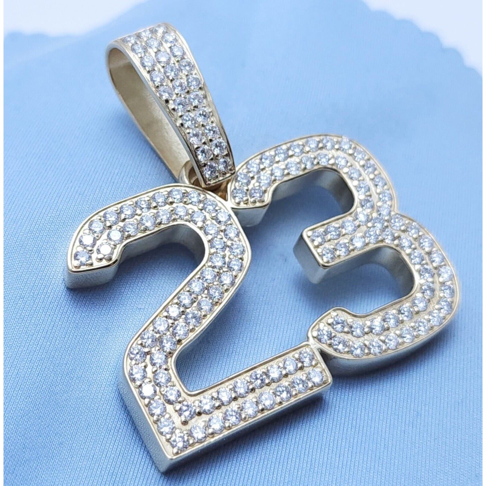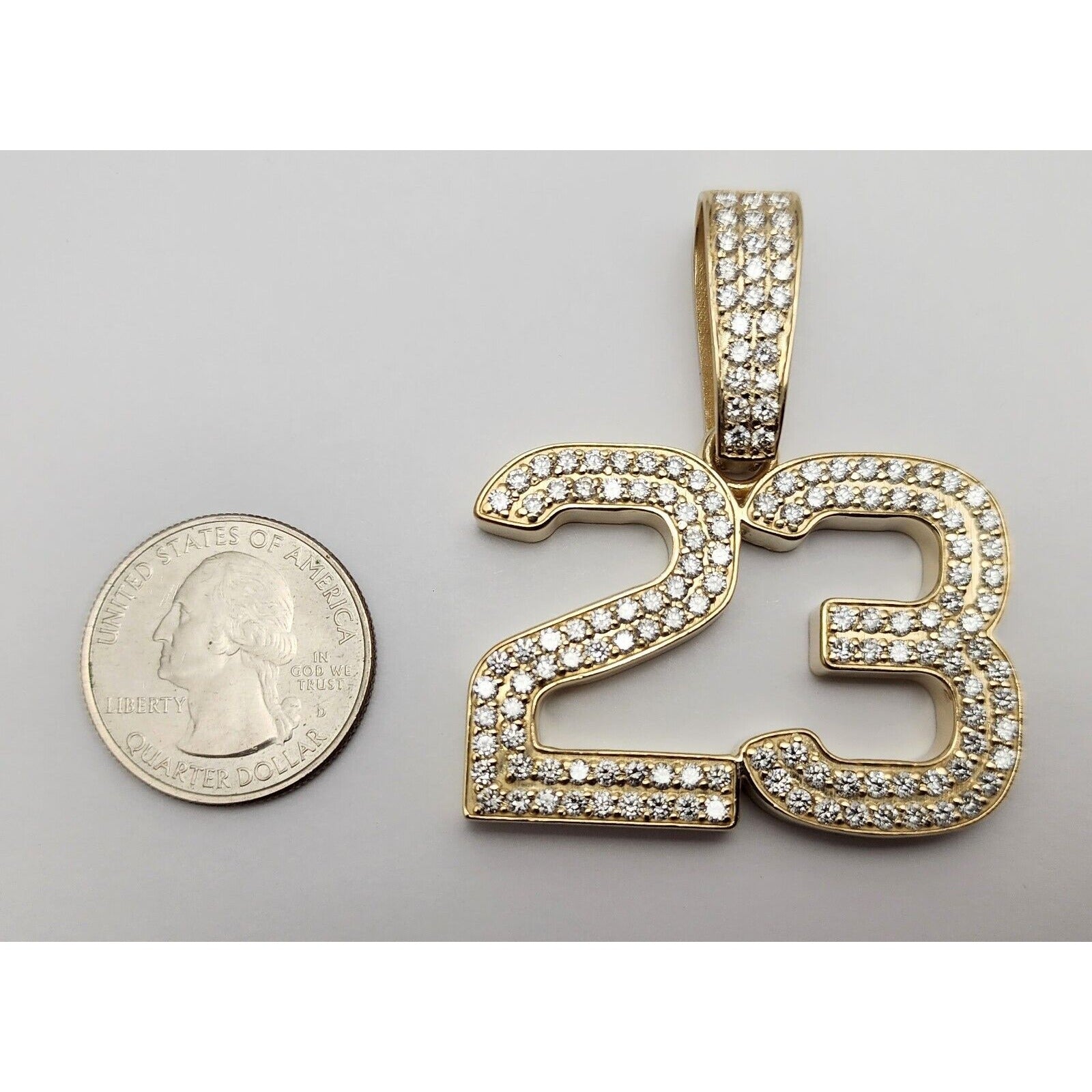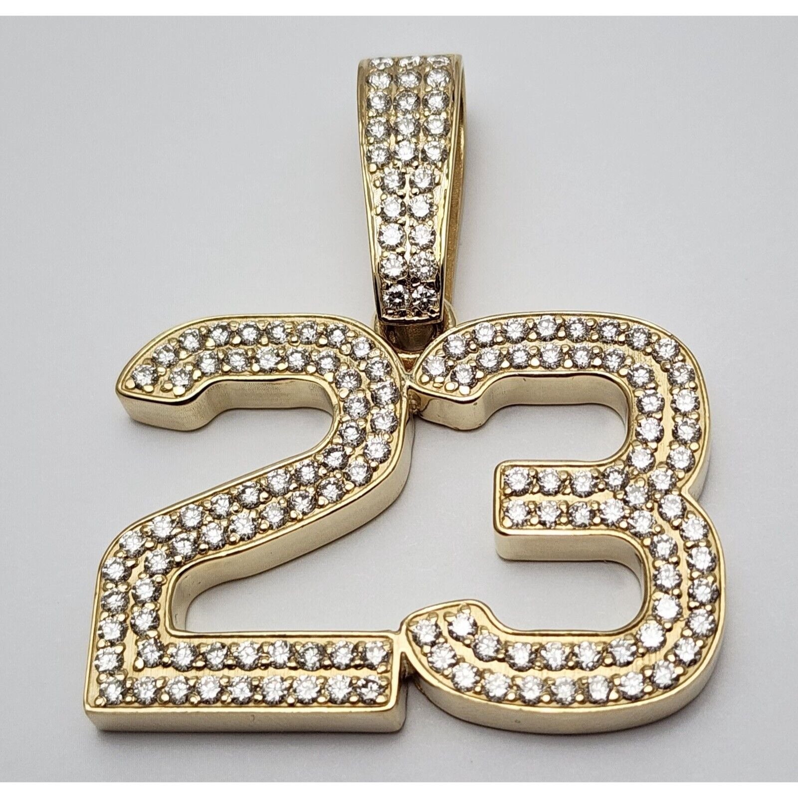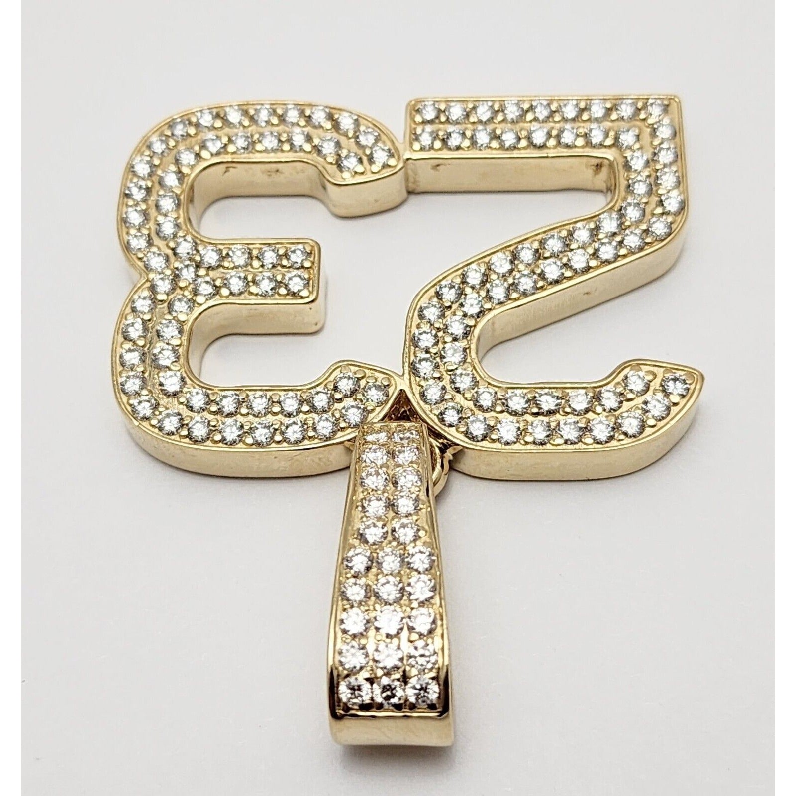 14K Solid Yellow Gold Michael Jordan Diamond Number 23 Charm Pendant