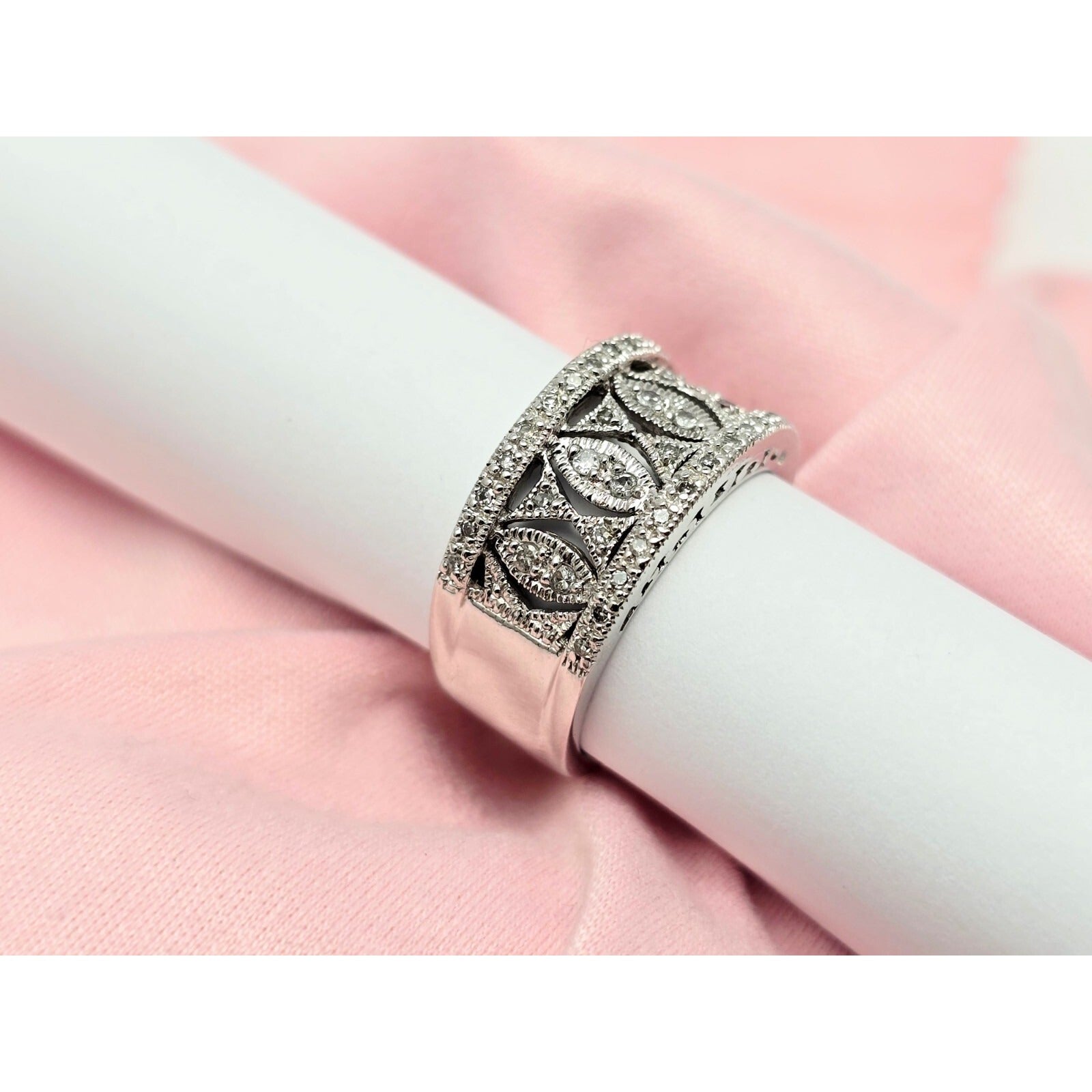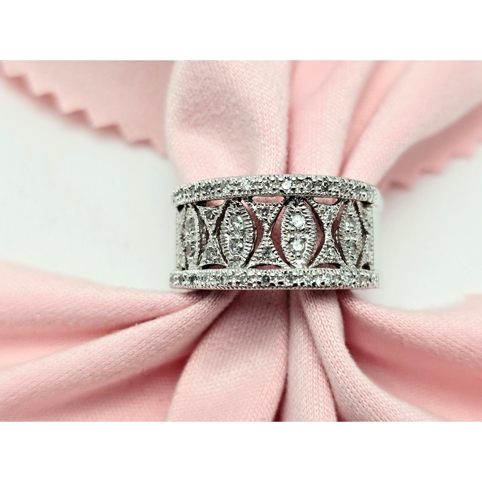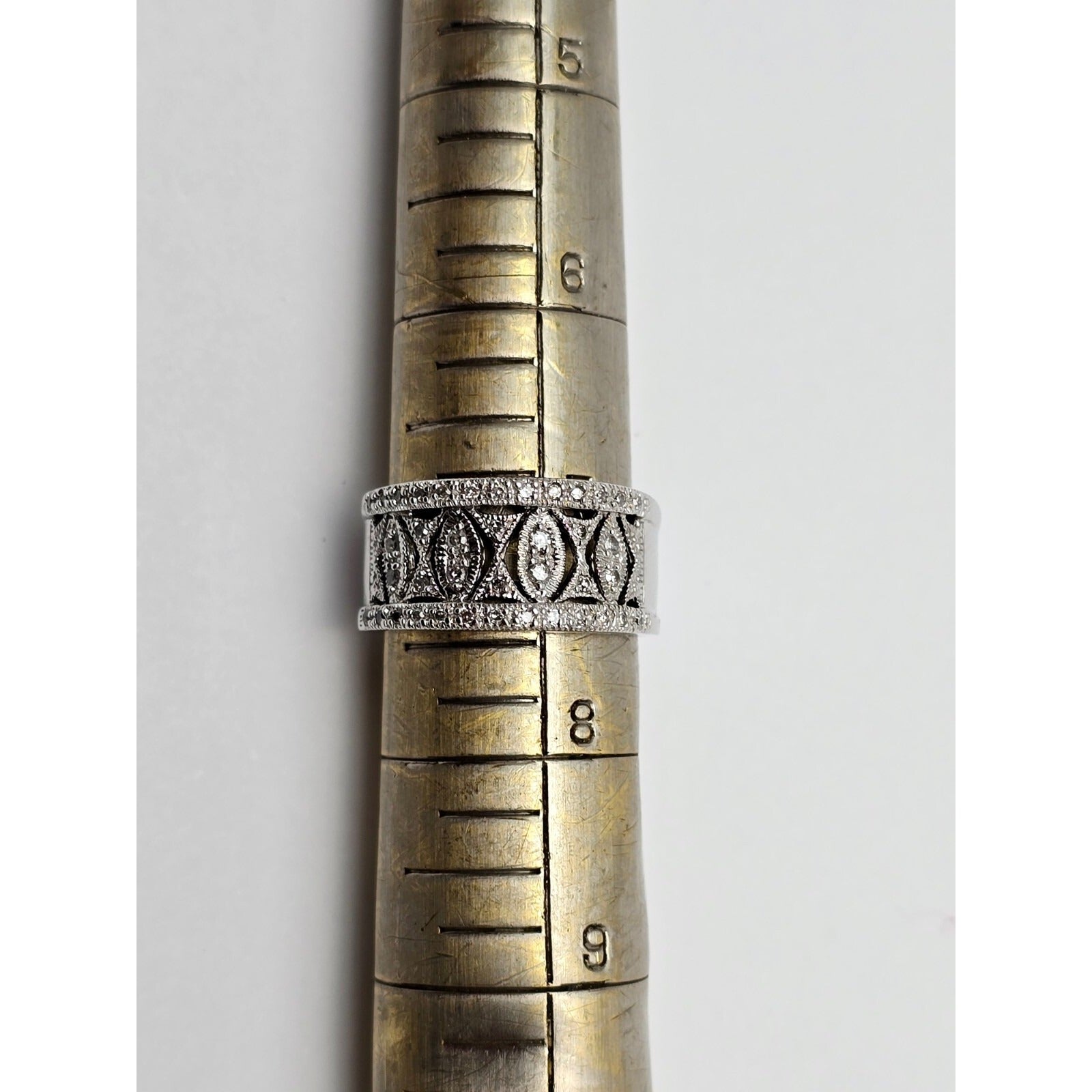 14K Karat White Gold Round Cut Diamond Wide Band Ring