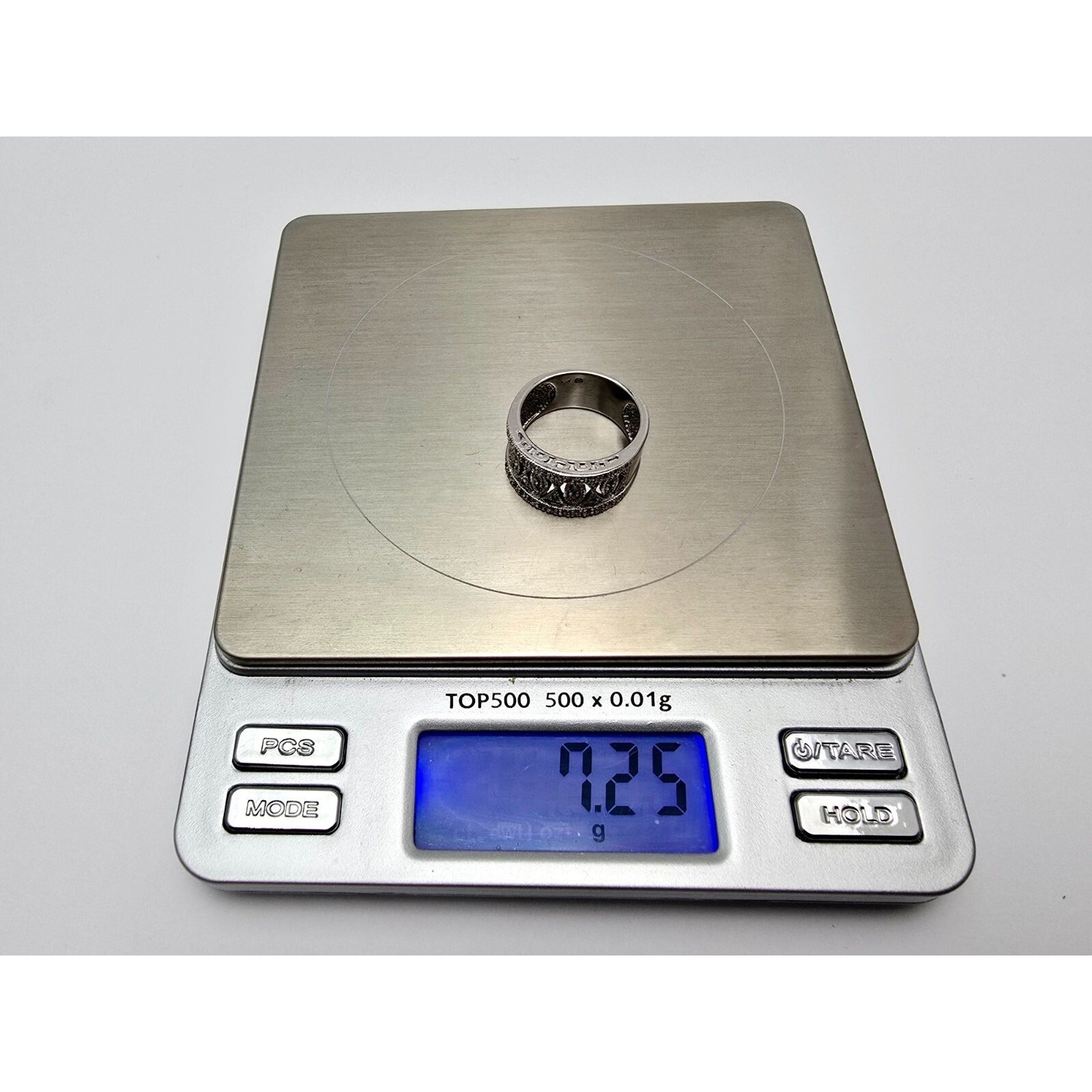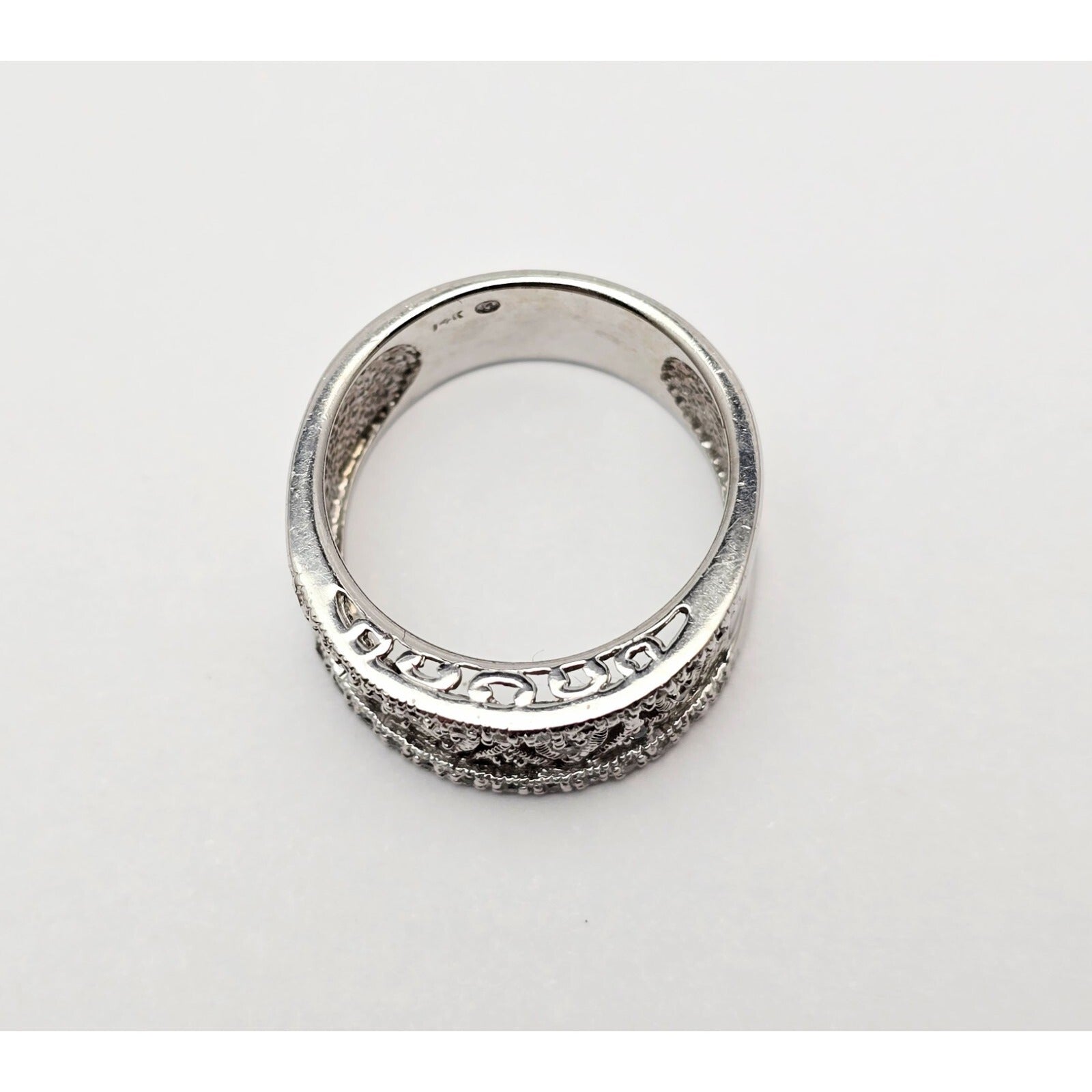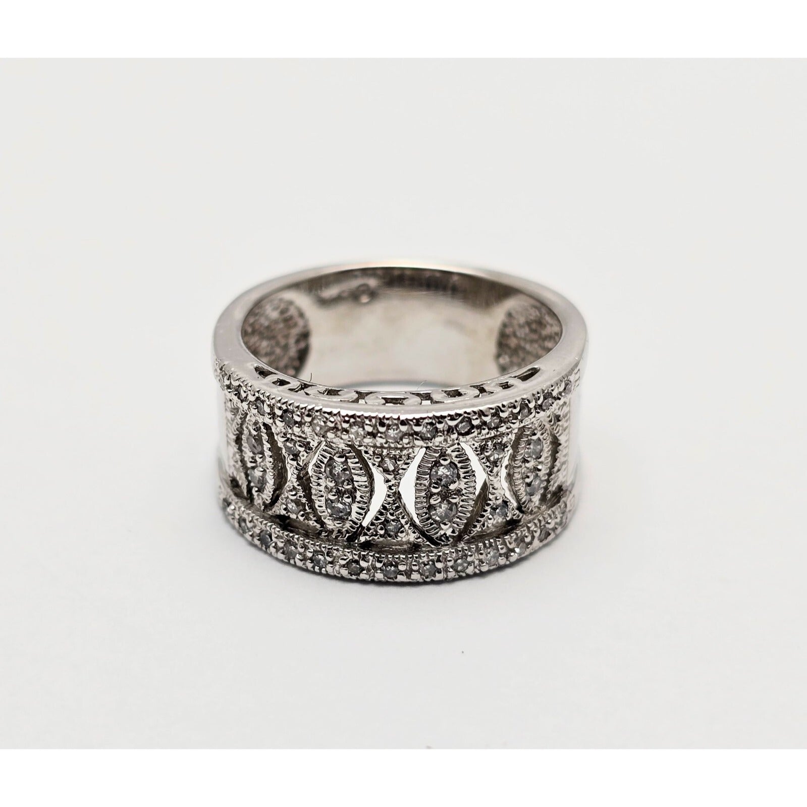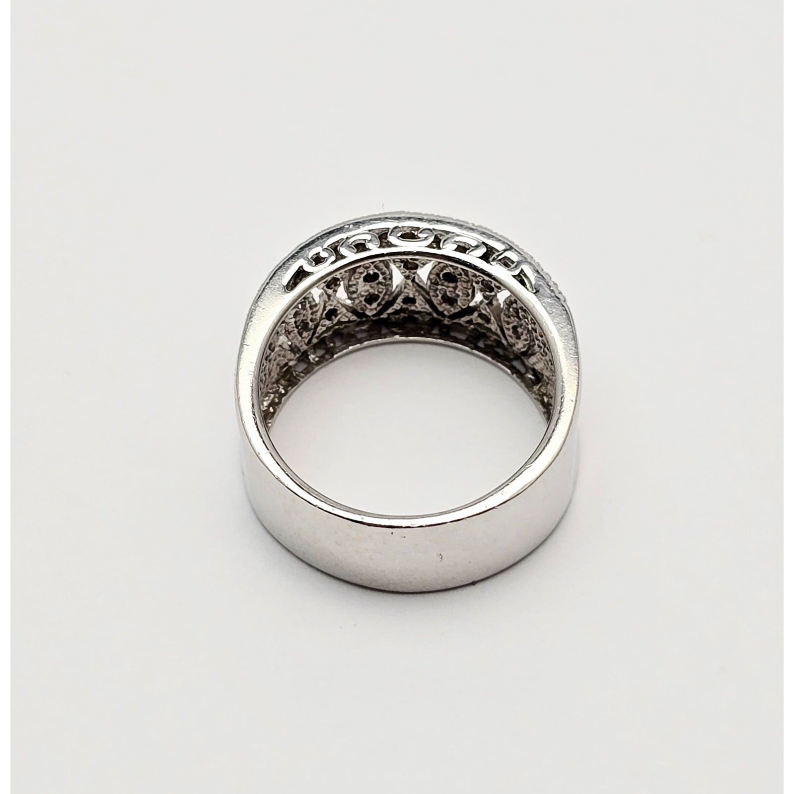 14K Karat White Gold Round Cut Diamond Wide Band Ring