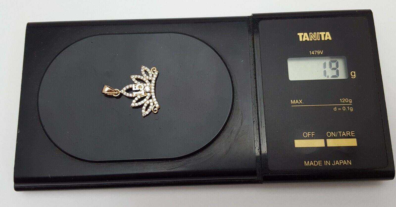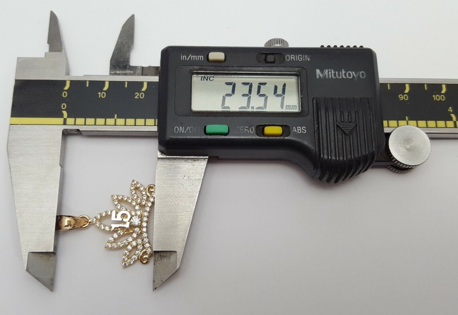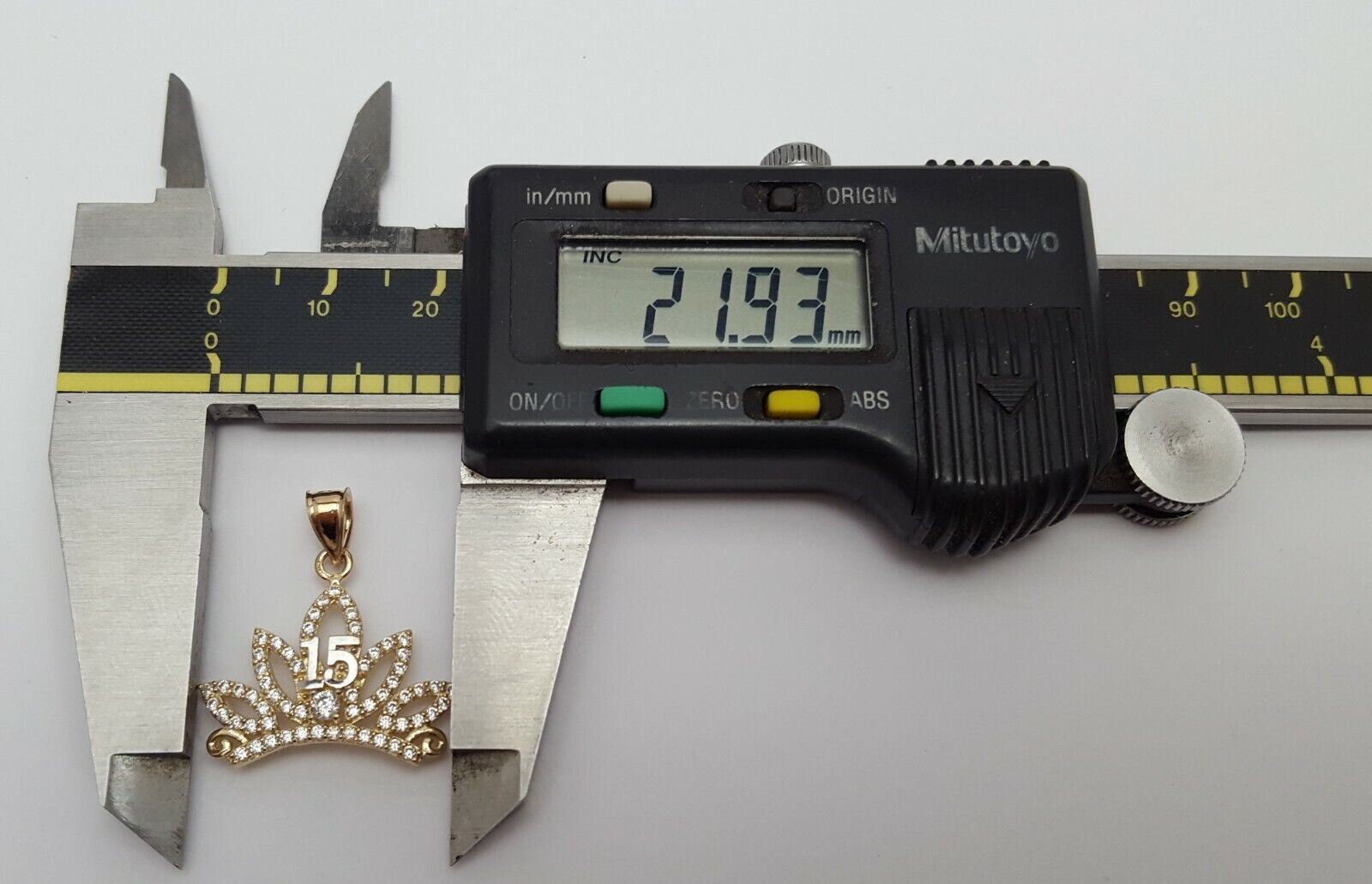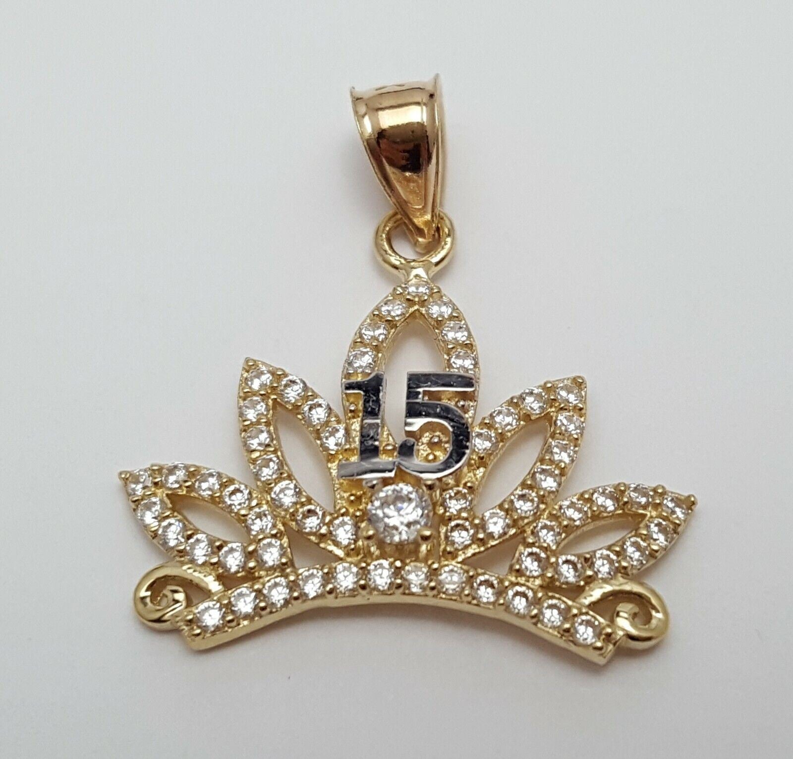 14K Two Tone Cubic Zirconia Quinceanera Crown Tiara 15 Charm Pendant