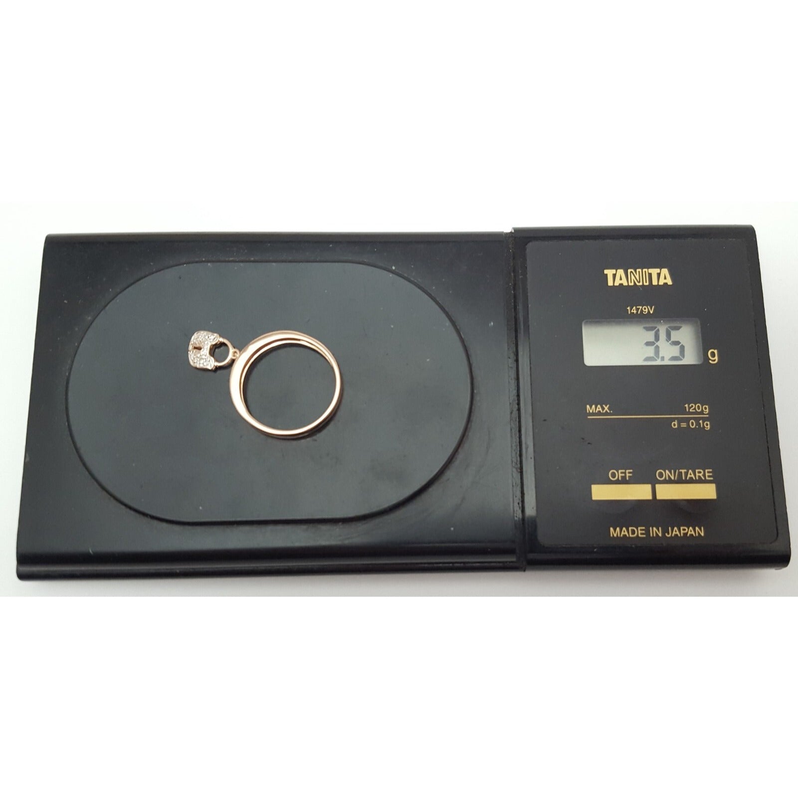 14K Rose Gold Diamond Band Ring w/ Hanging Lock Charm