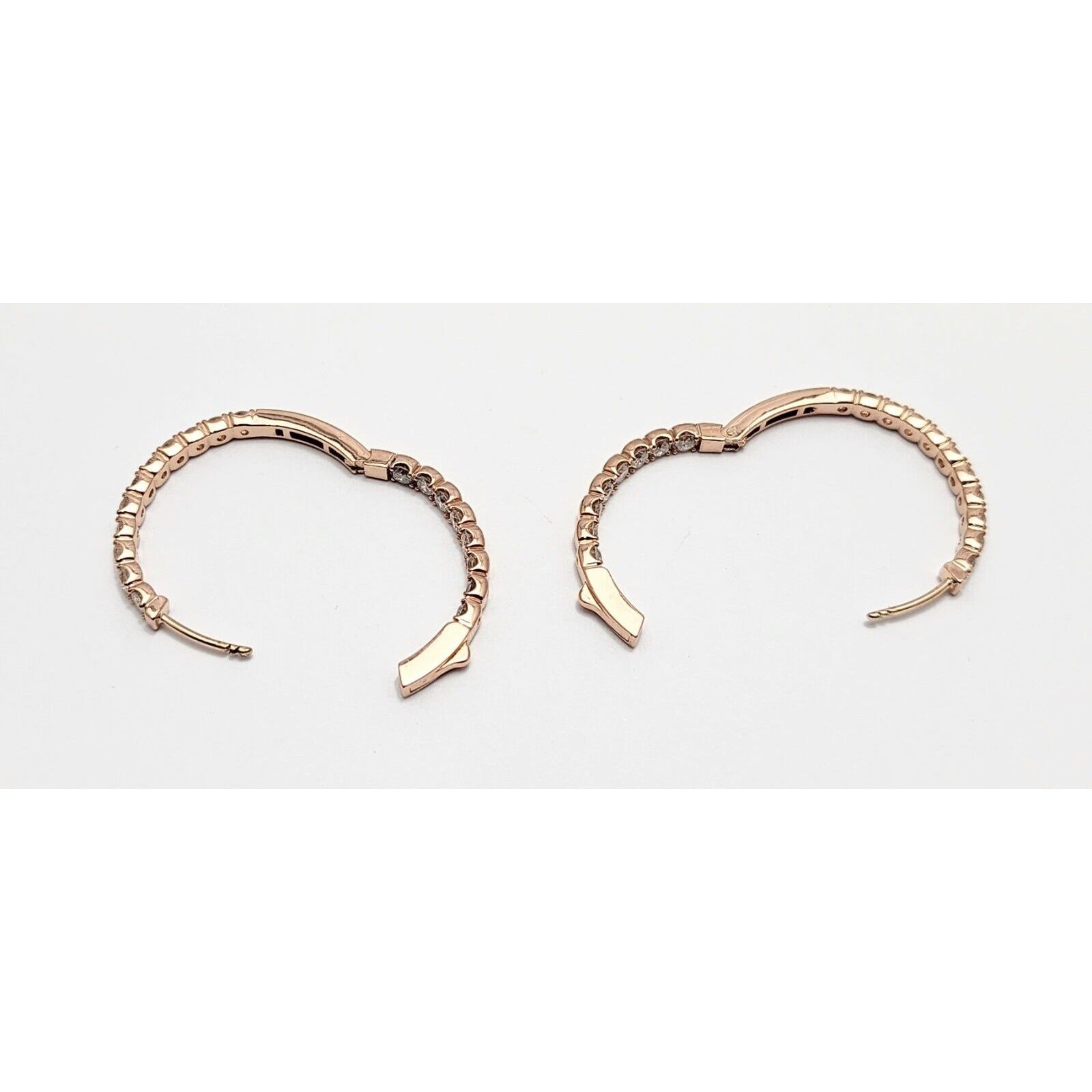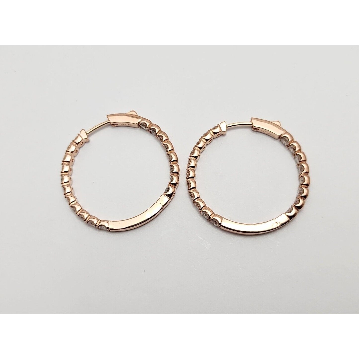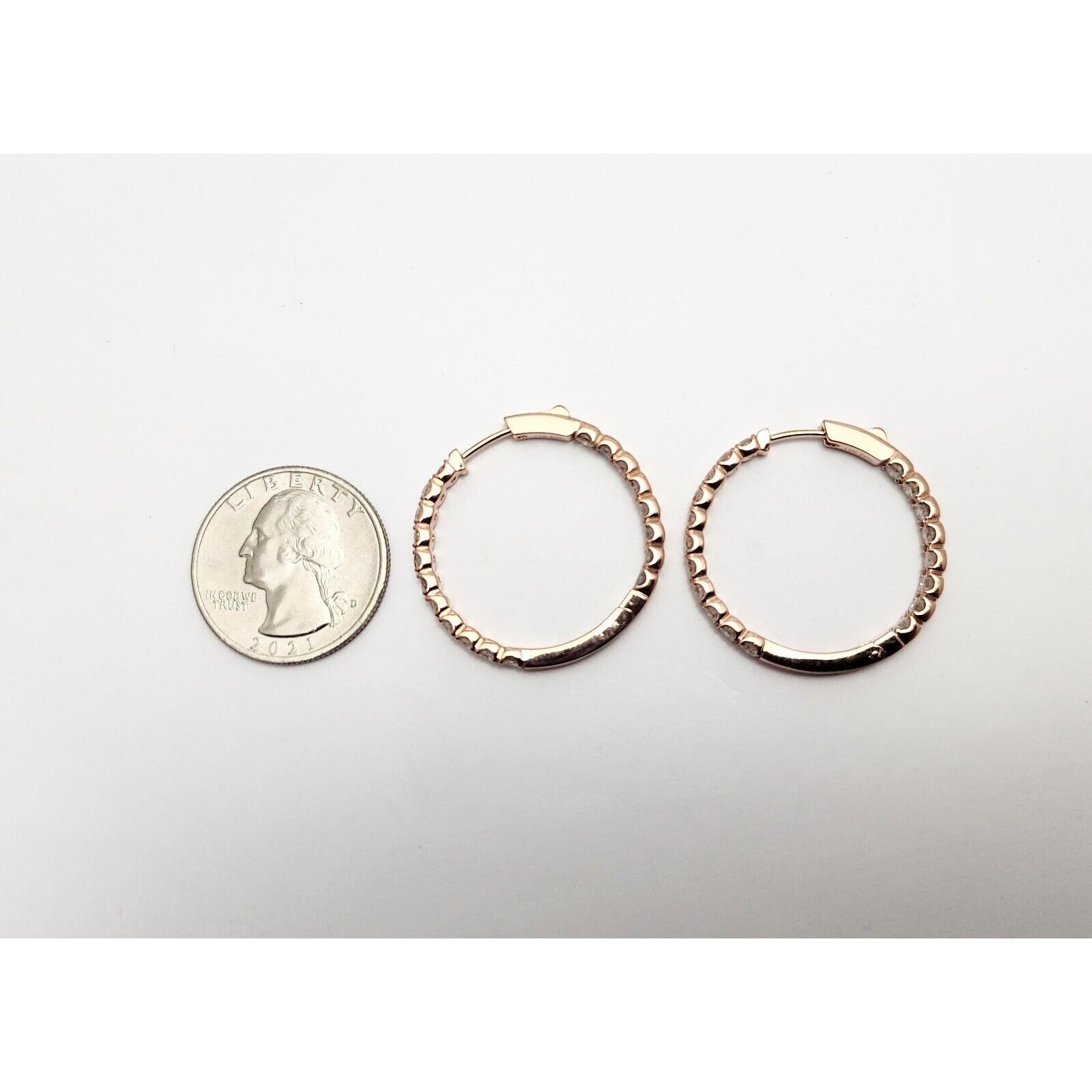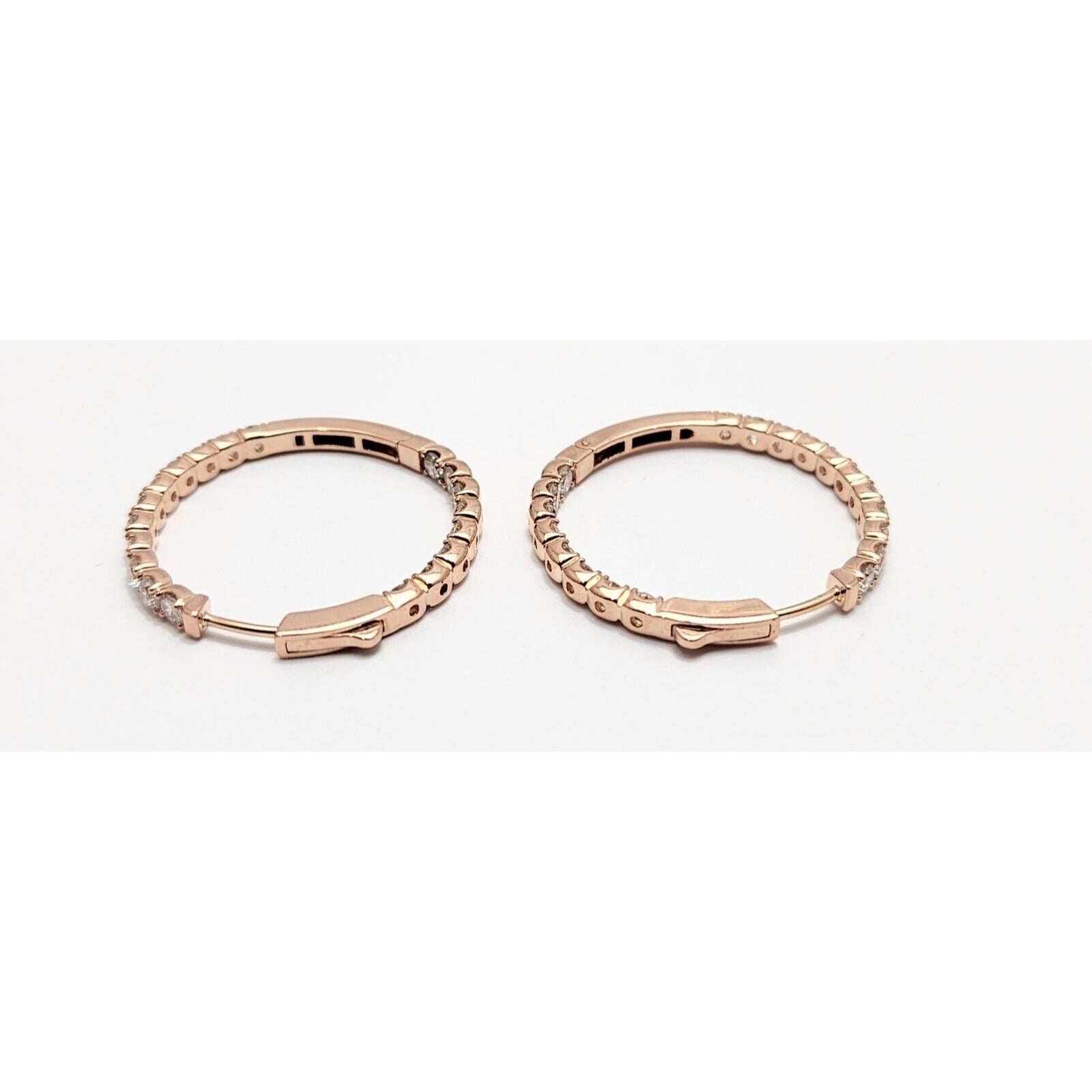 14K Rose Gold Double Sided Diamond Round Hoop Earrings