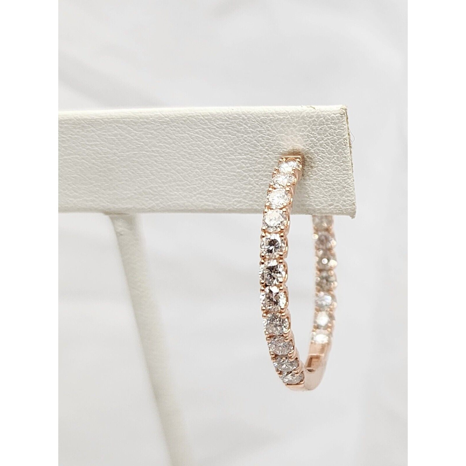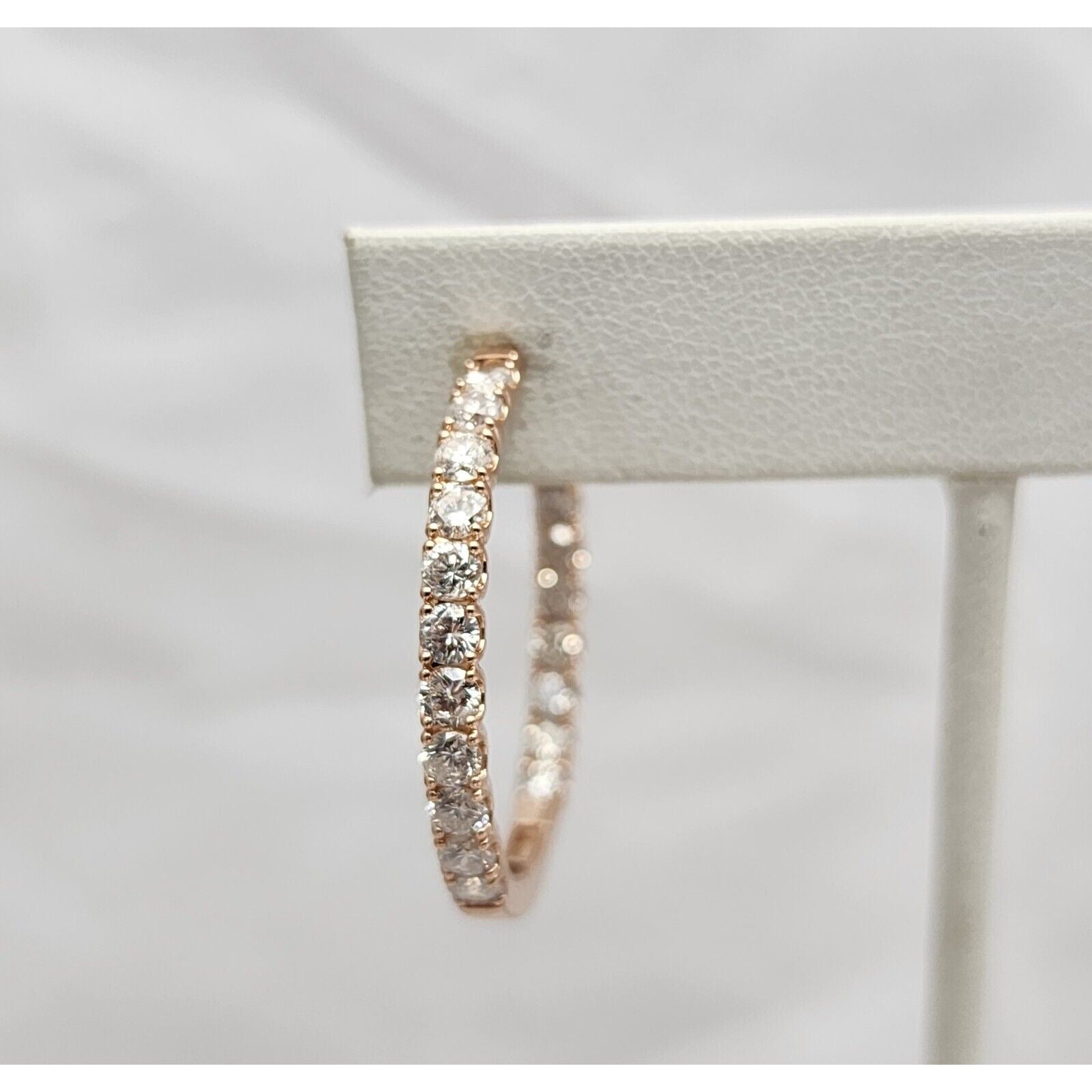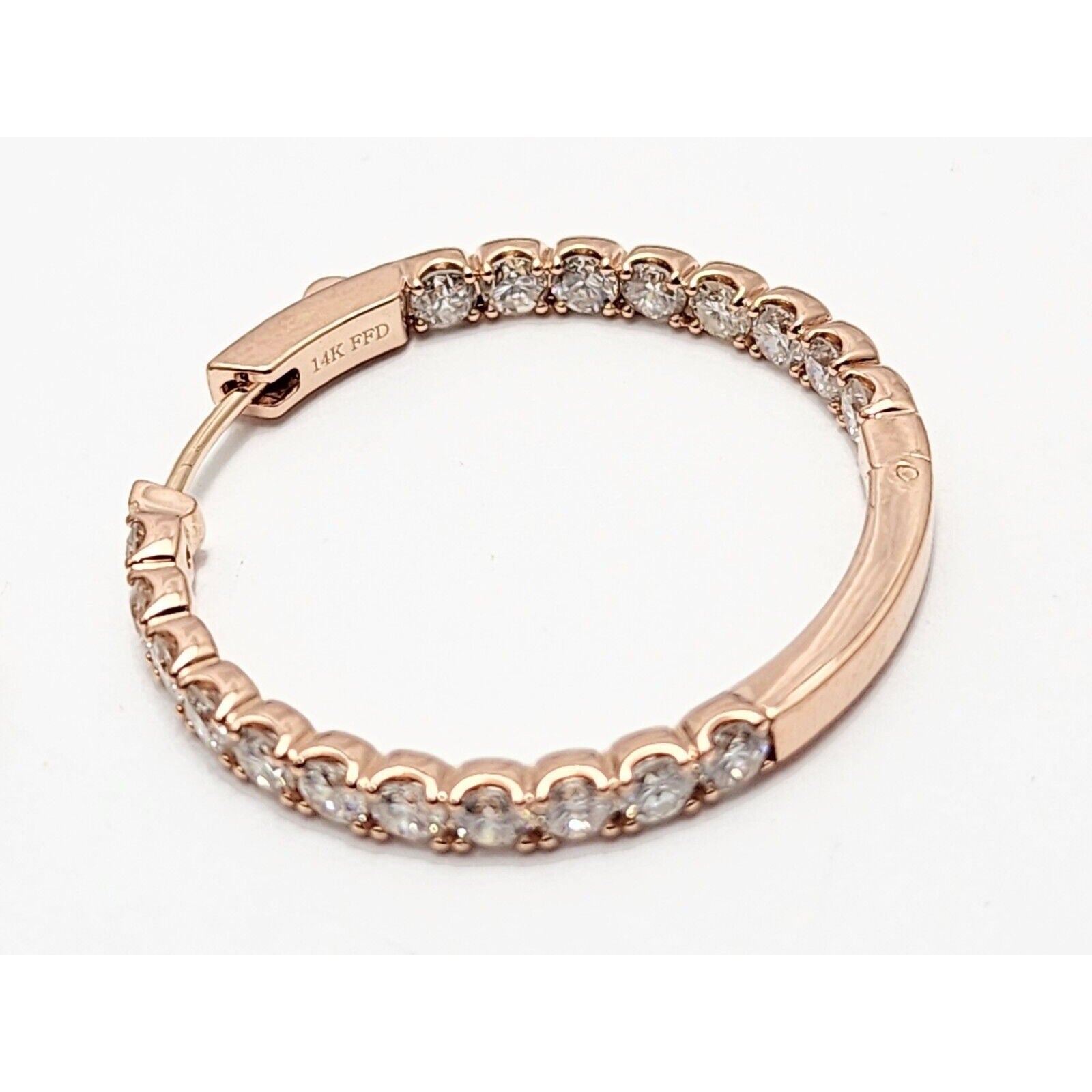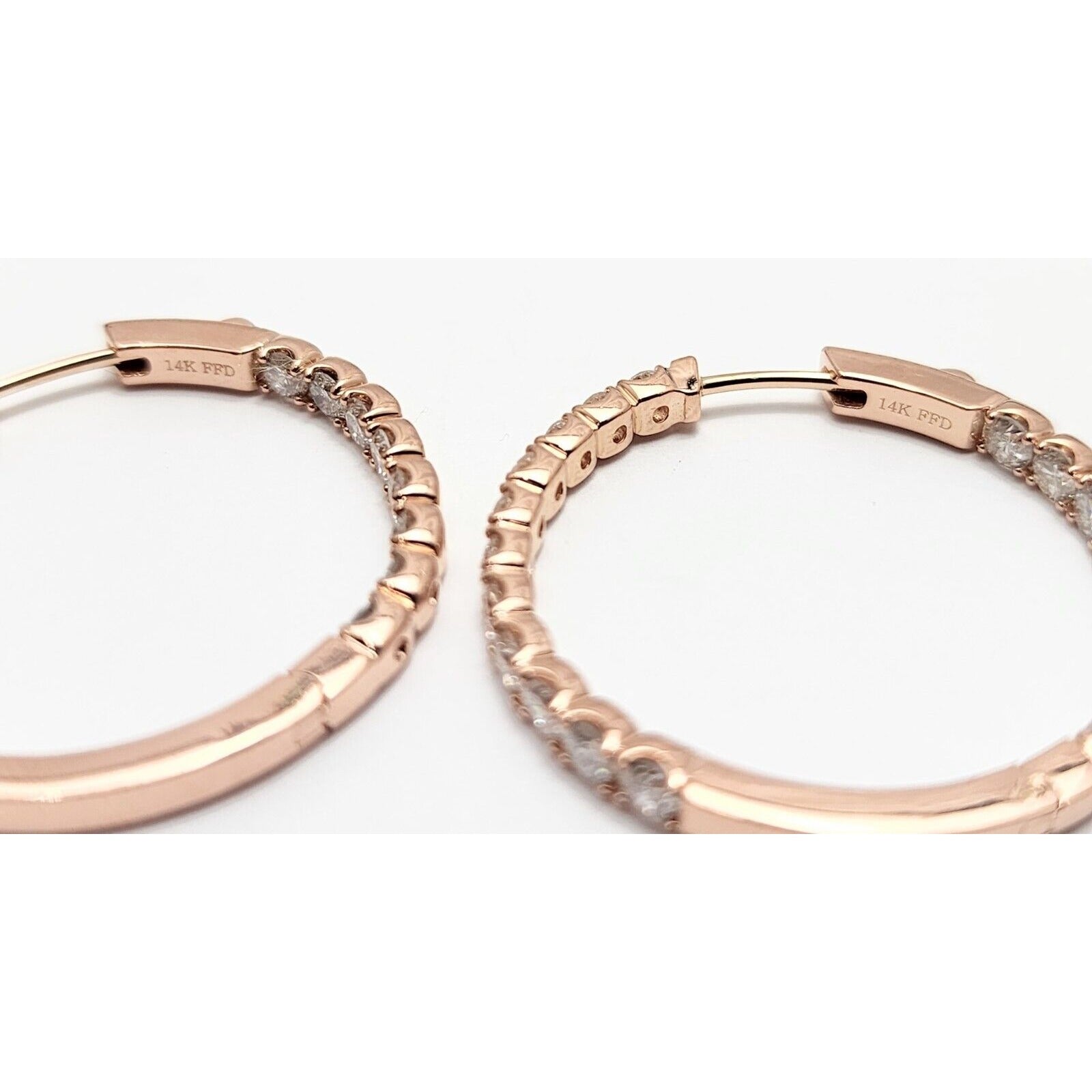 14K Rose Gold Double Sided Diamond Round Hoop Earrings