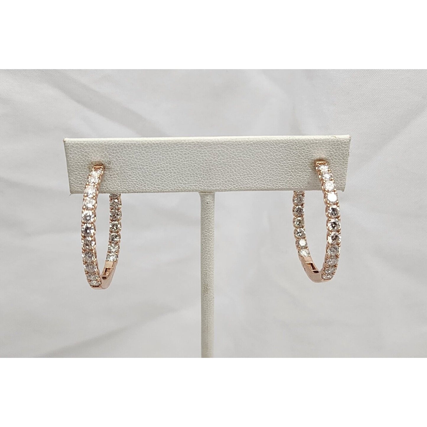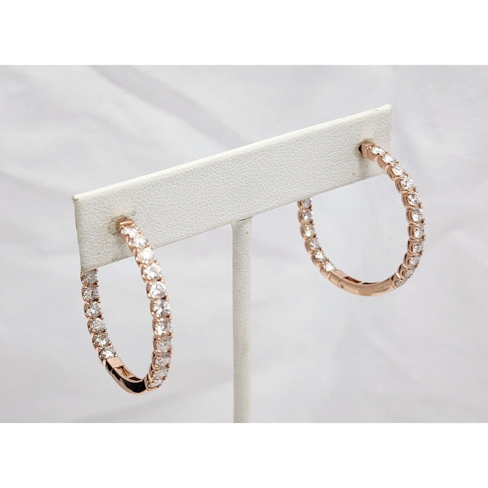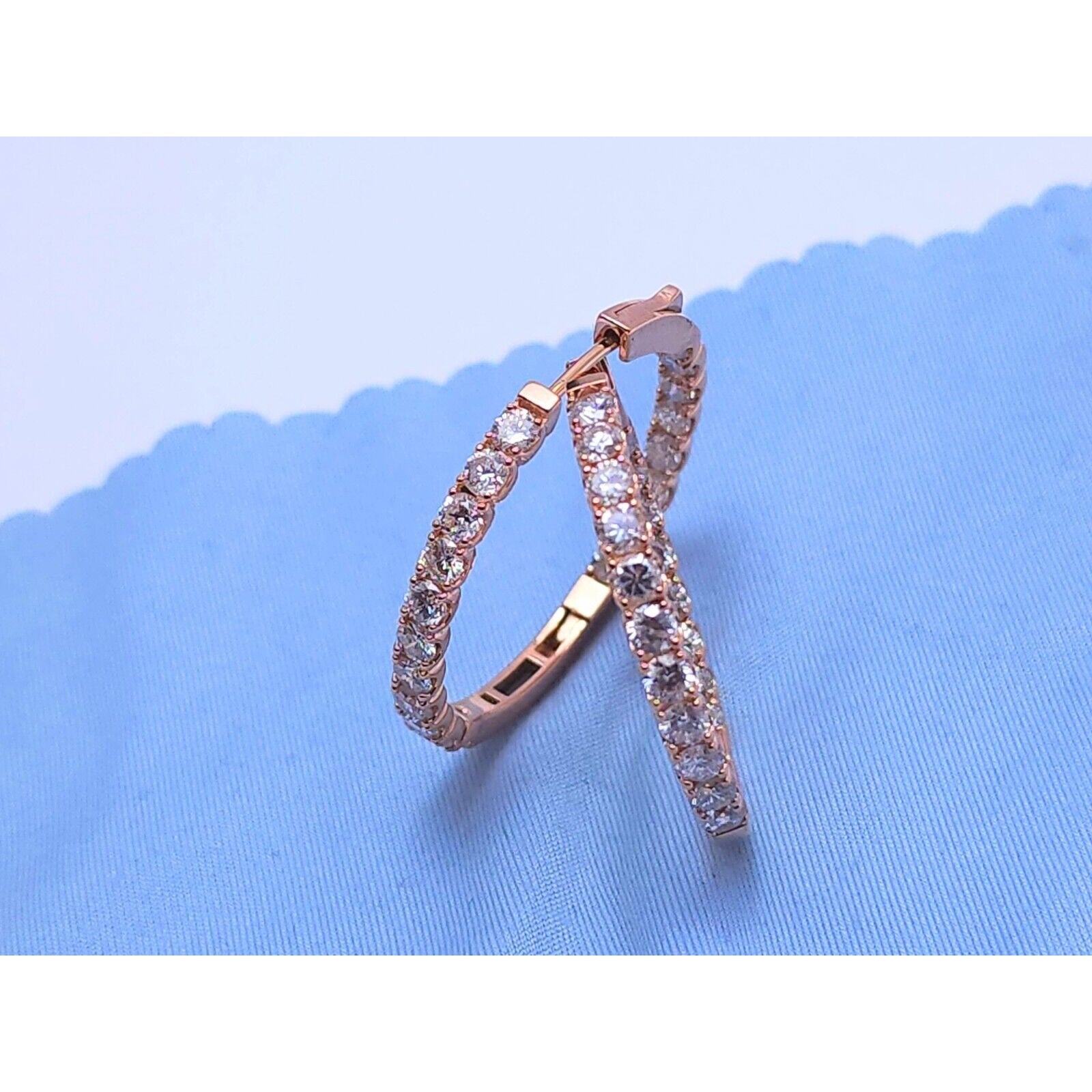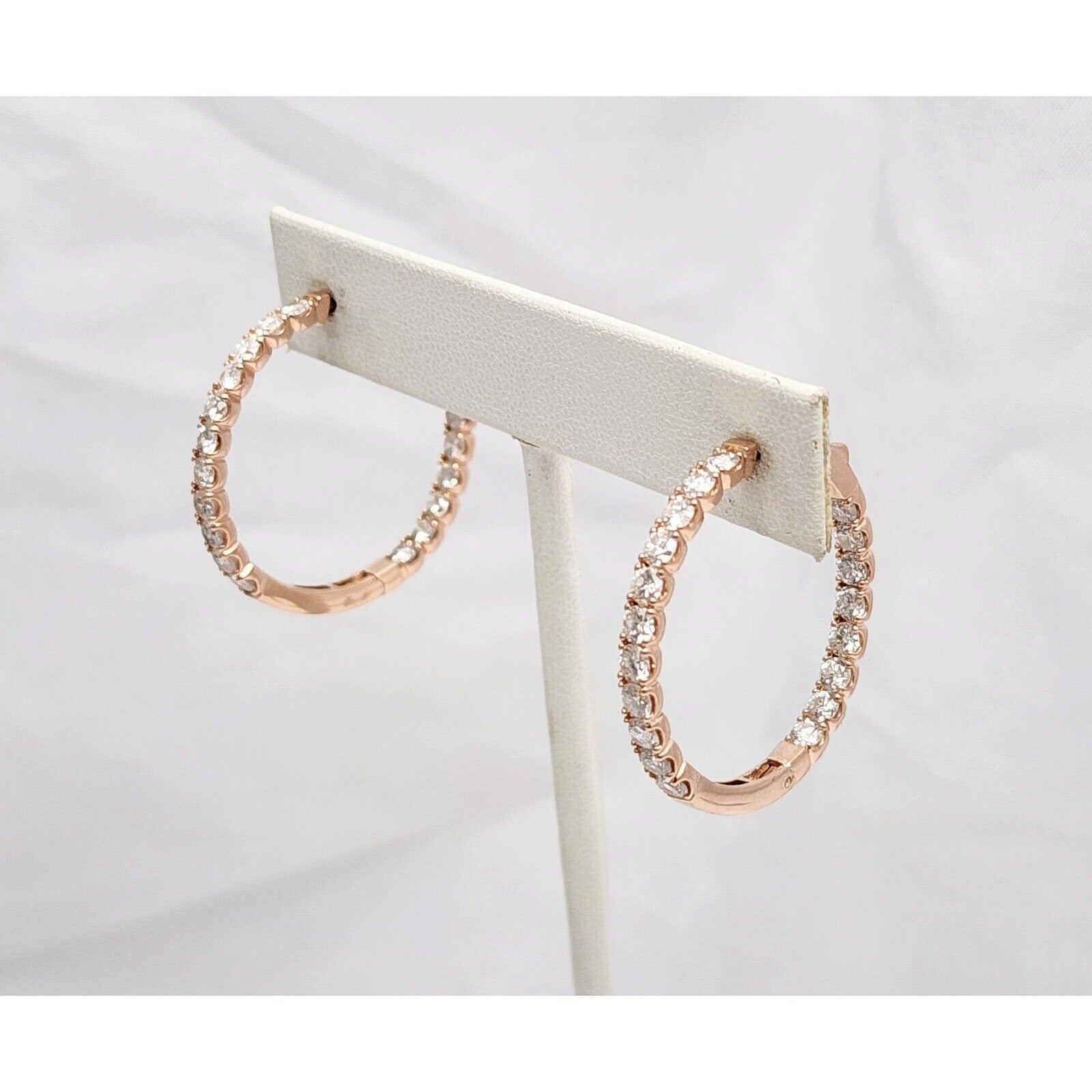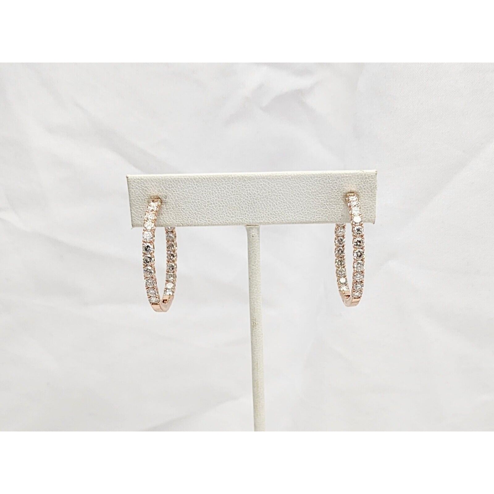 14K Rose Gold Double Sided Diamond Round Hoop Earrings