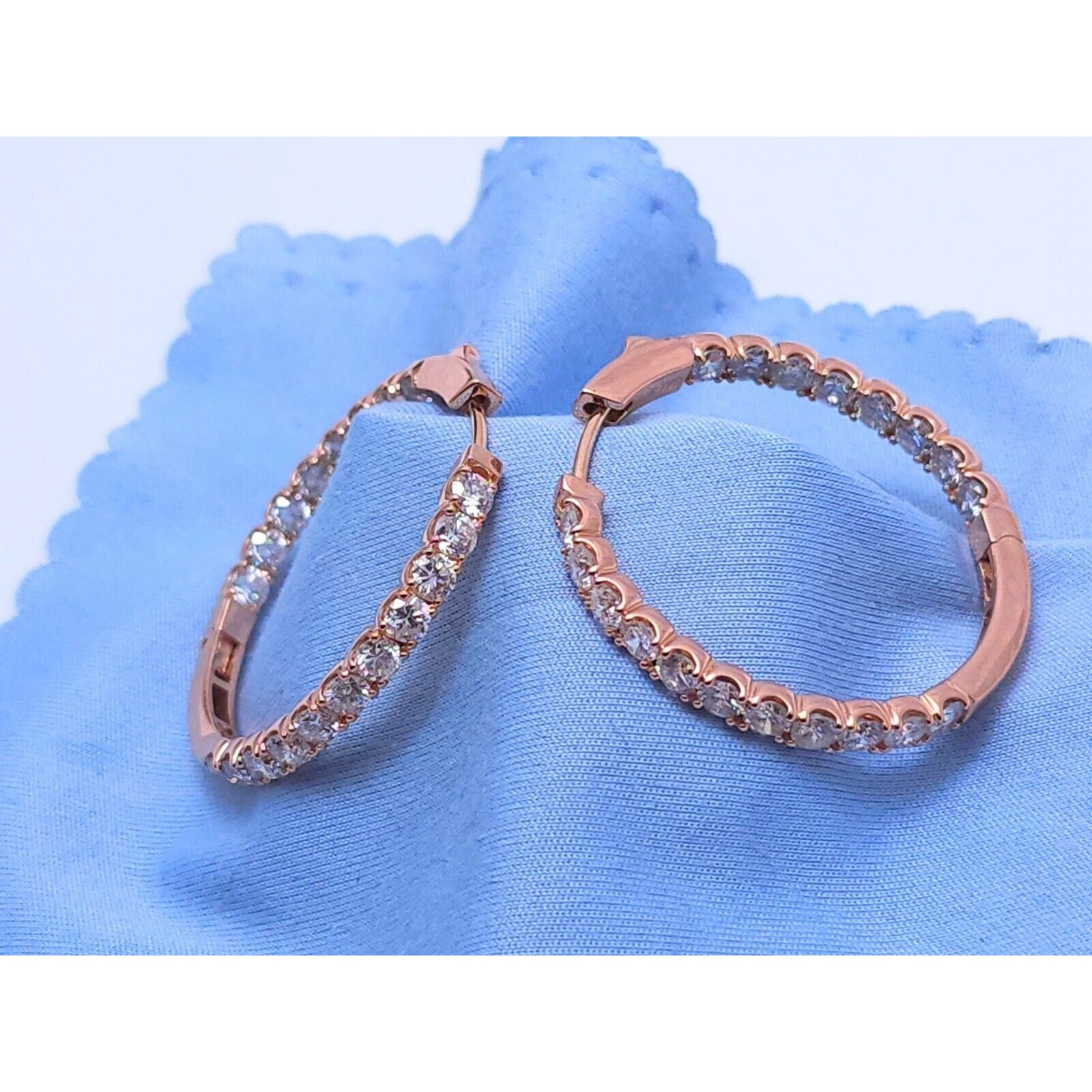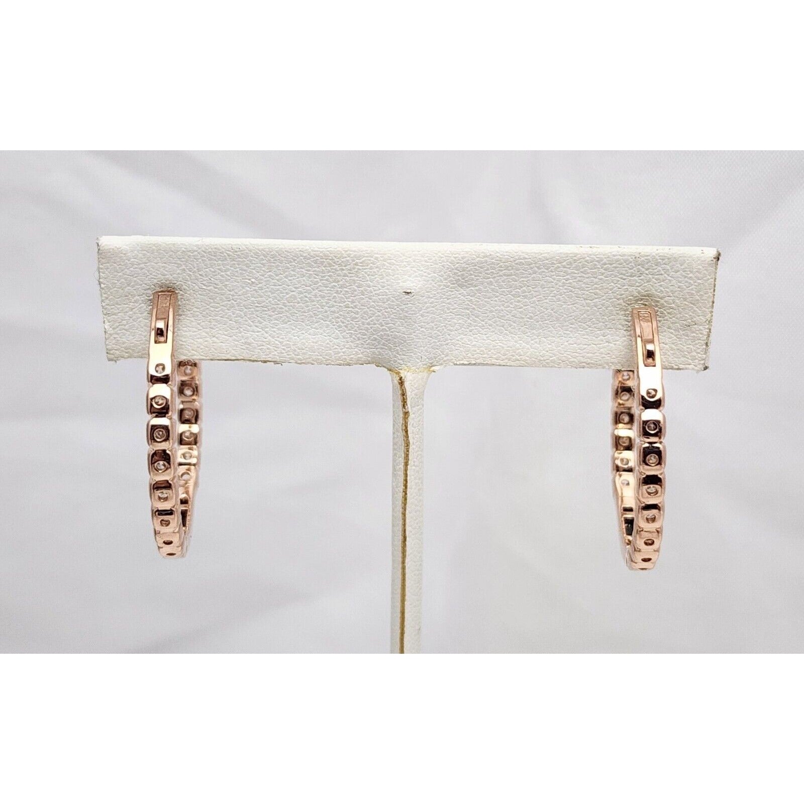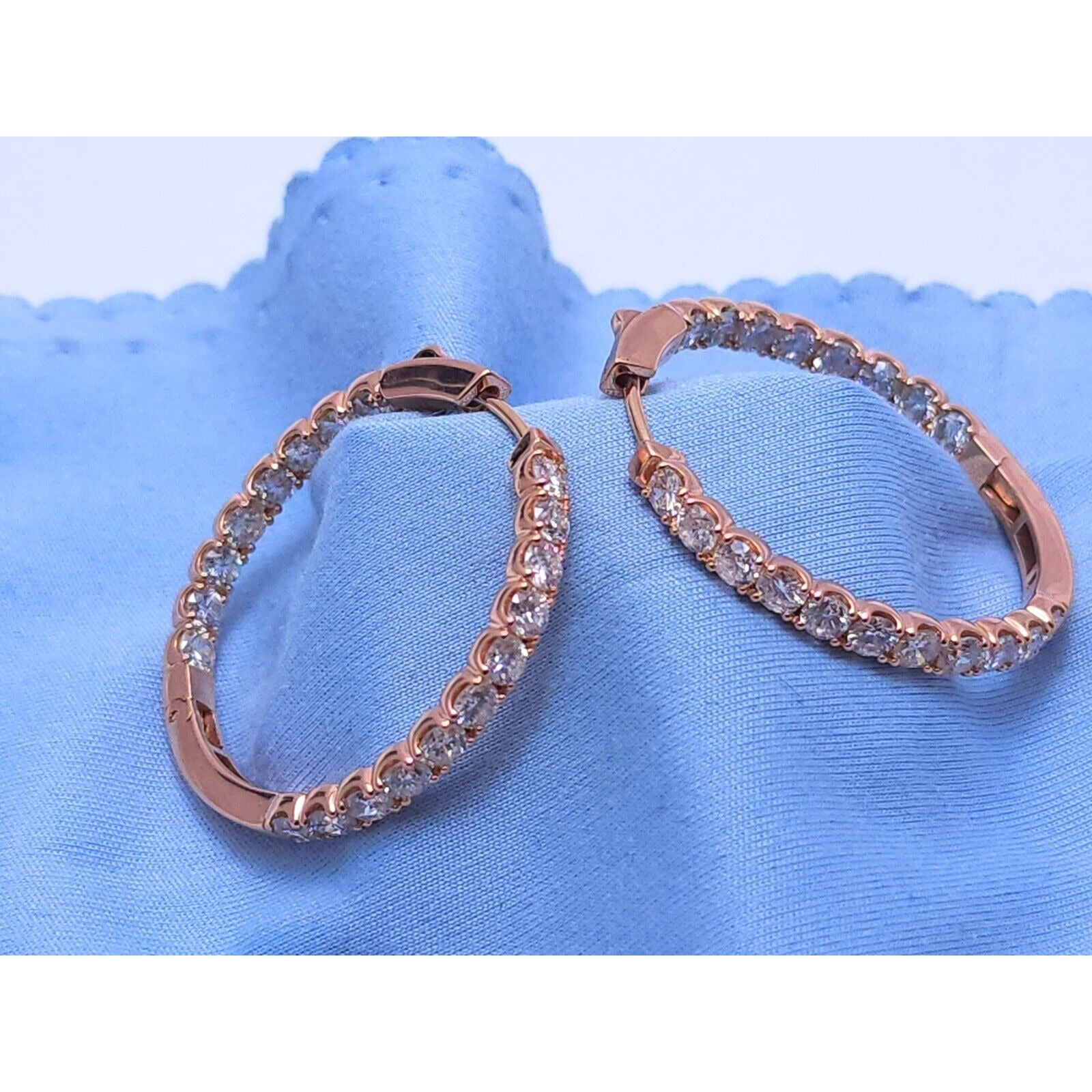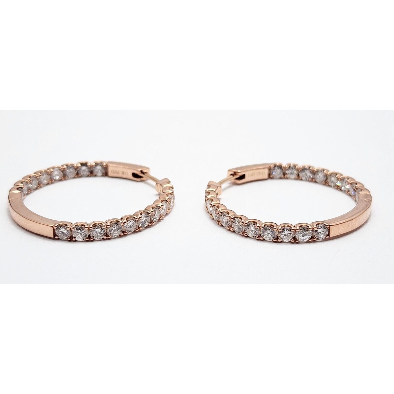 14K Rose Gold Double Sided Diamond Round Hoop Earrings