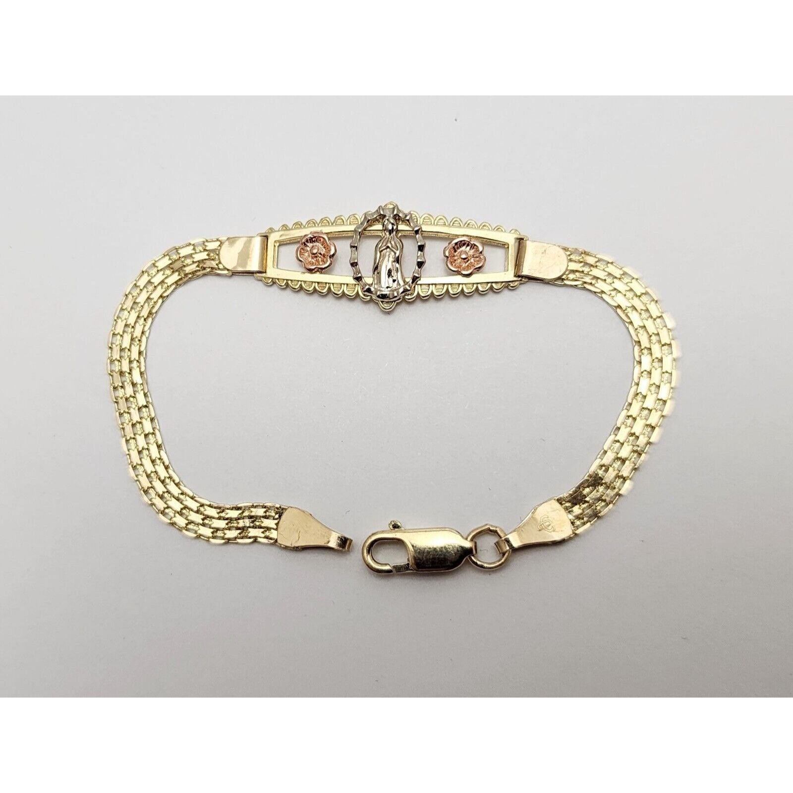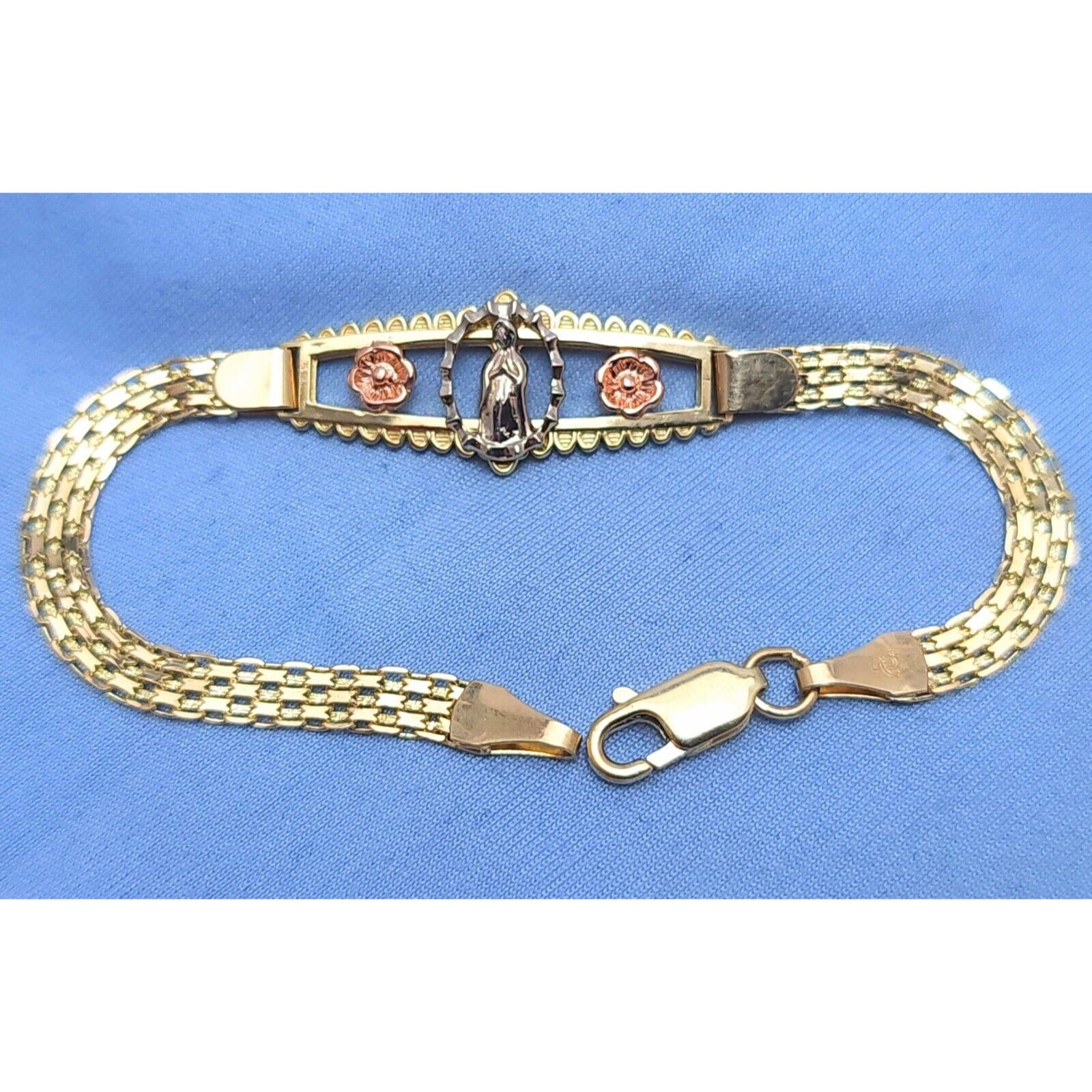 14K Solid Tri Color Gold Saint Mary Guadalupe Bracelet
