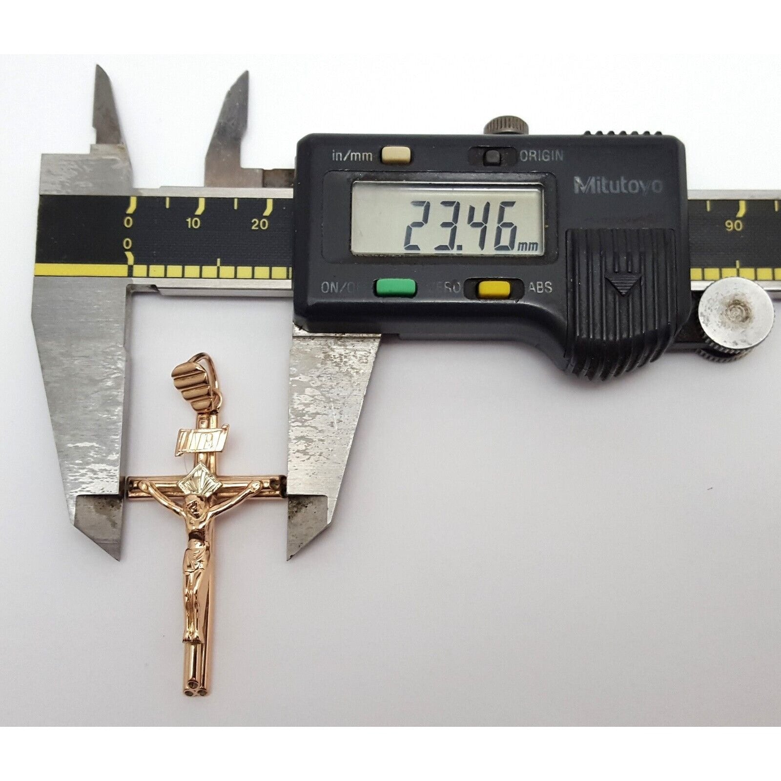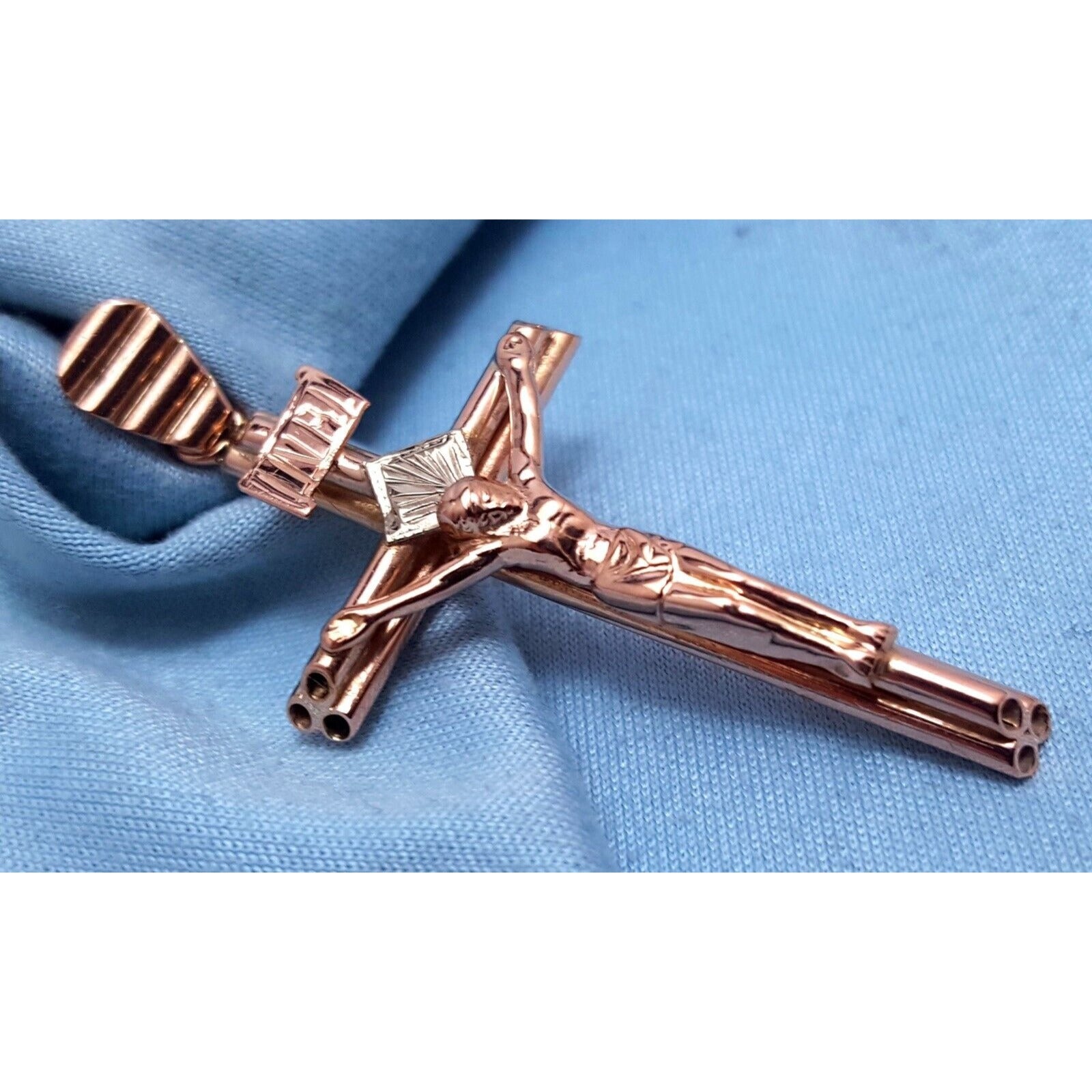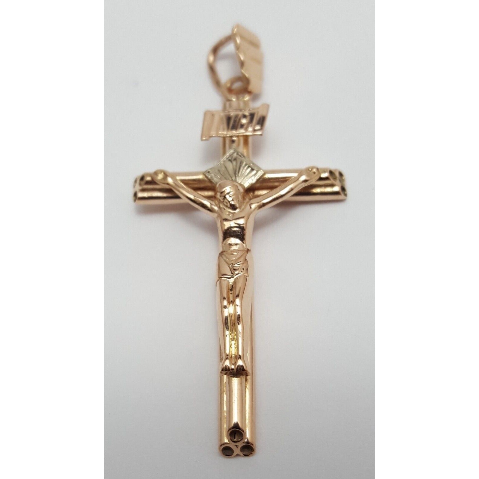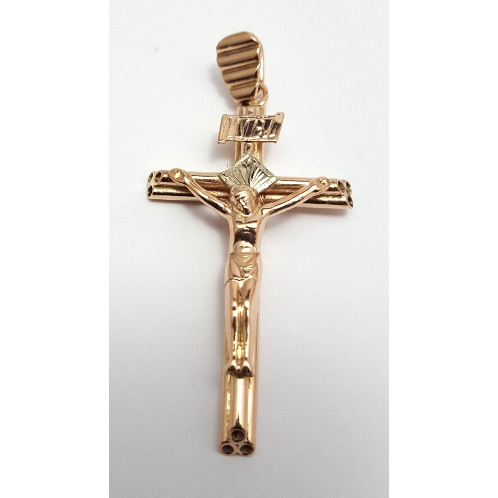14K Solid Two Tone Gold Jesus Cross Charm Pendant