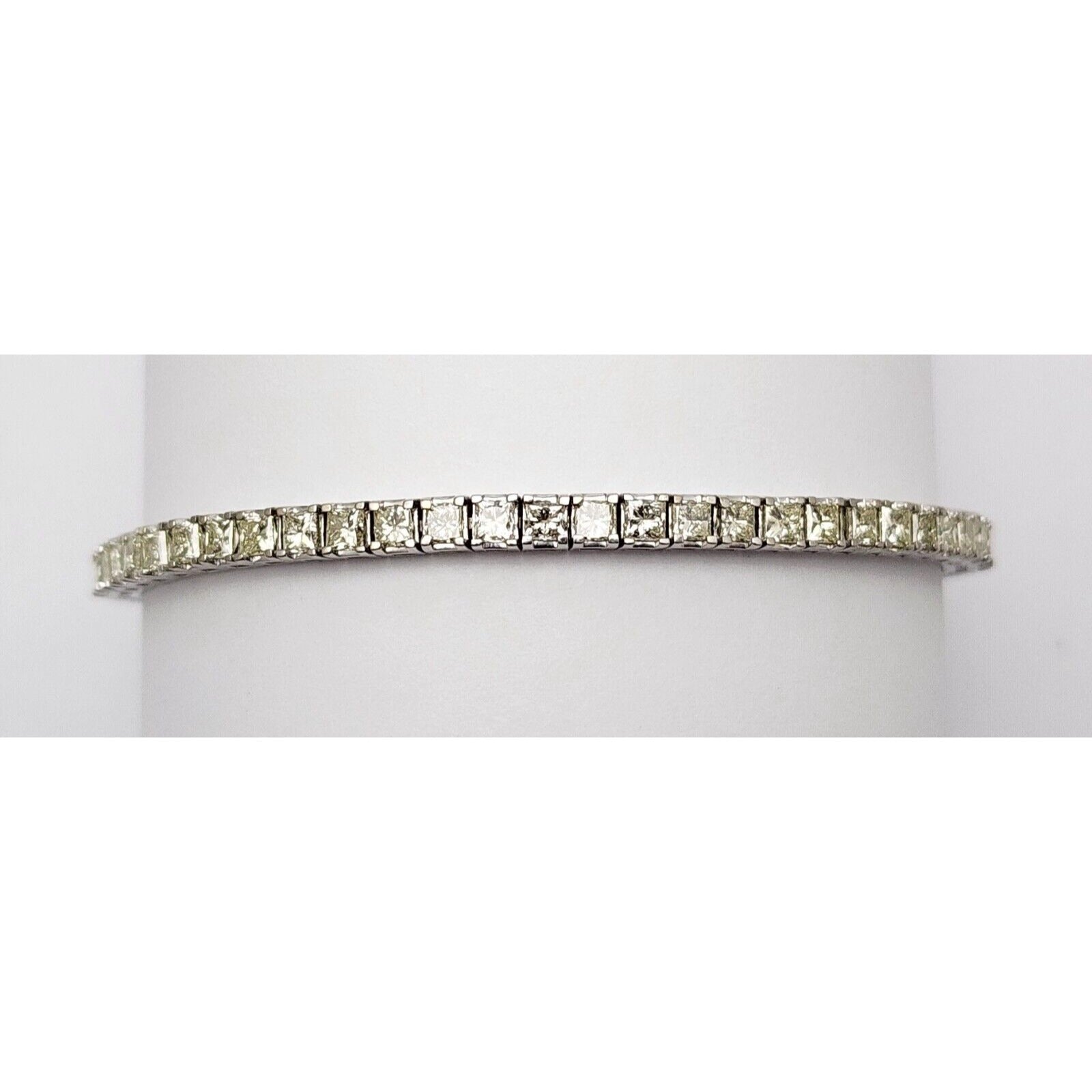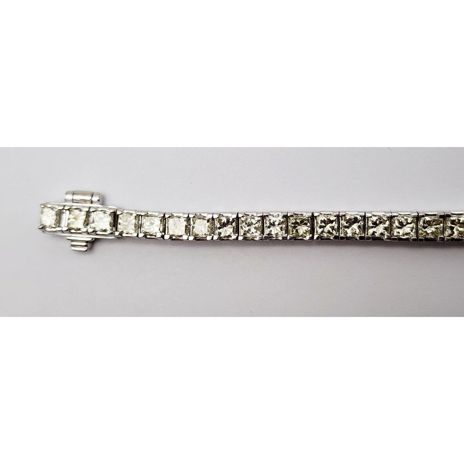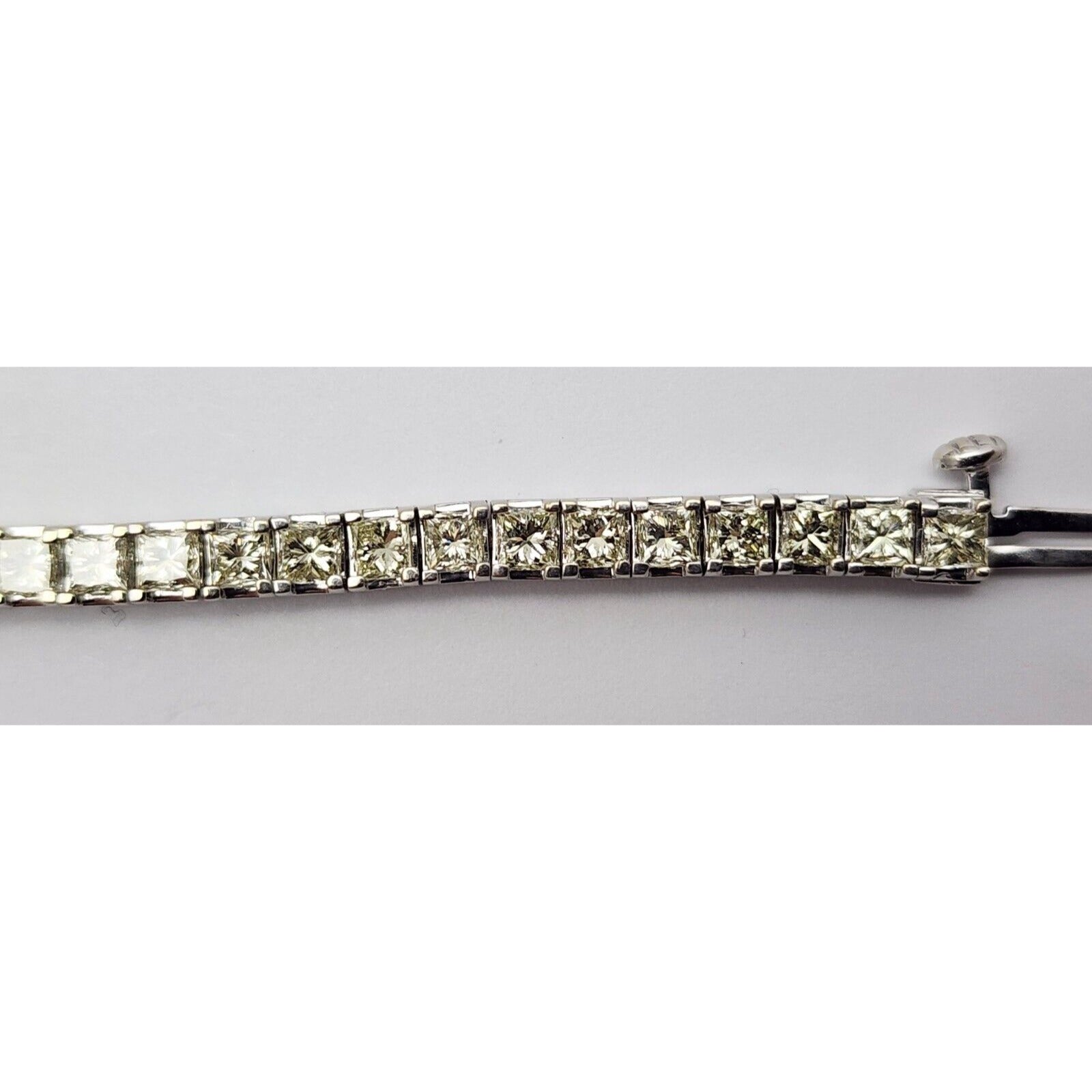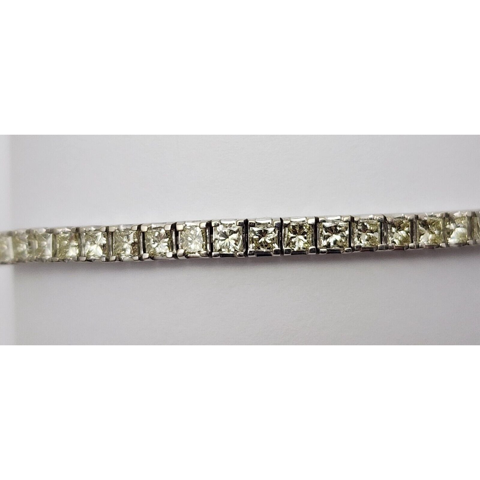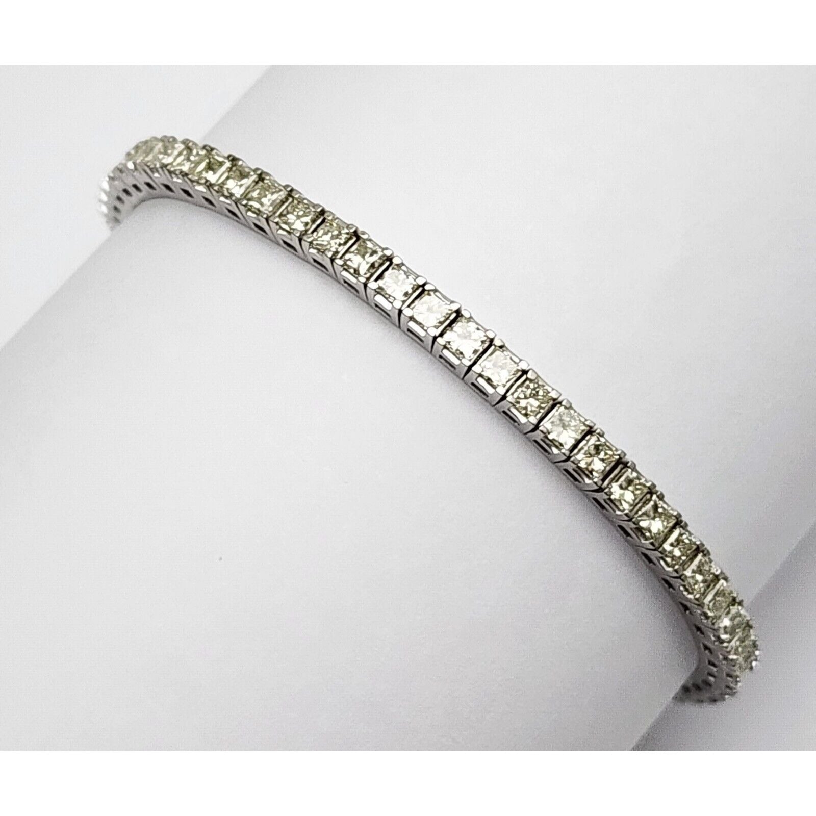 14K Solid White Gold Designer Princess Cut Diamond Tennis Link Bracelet