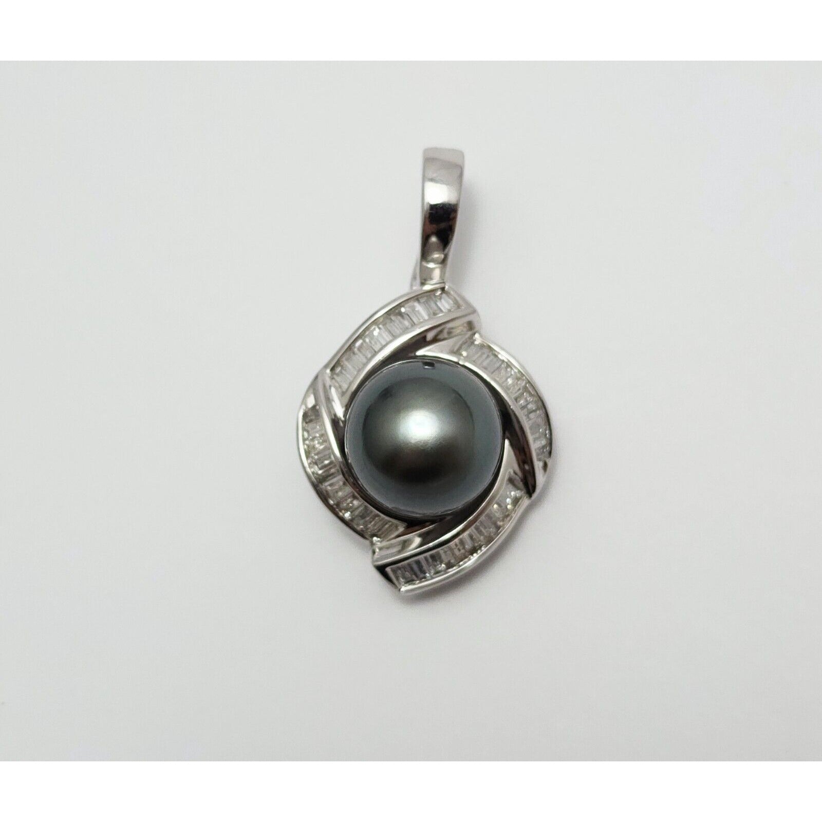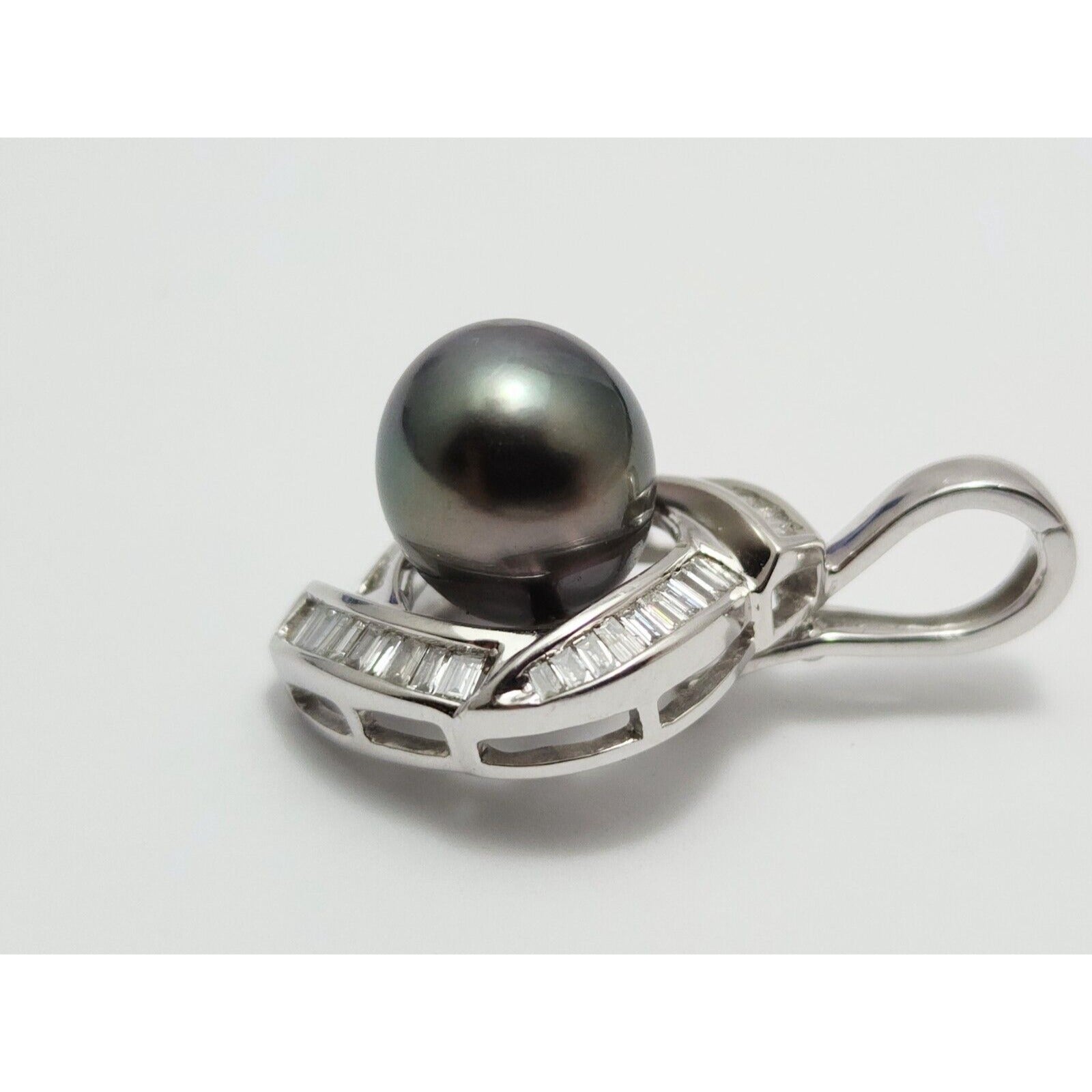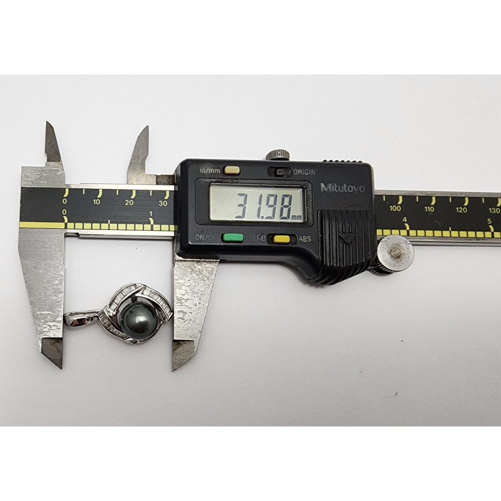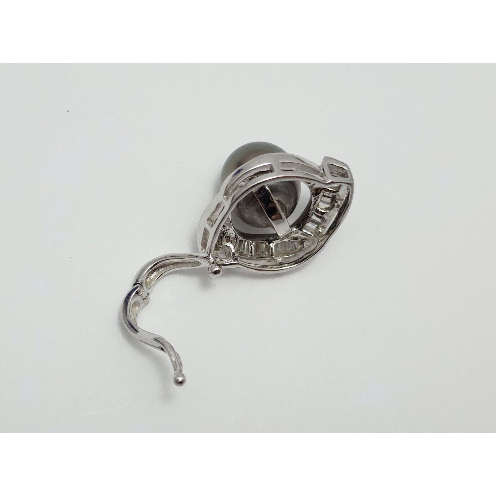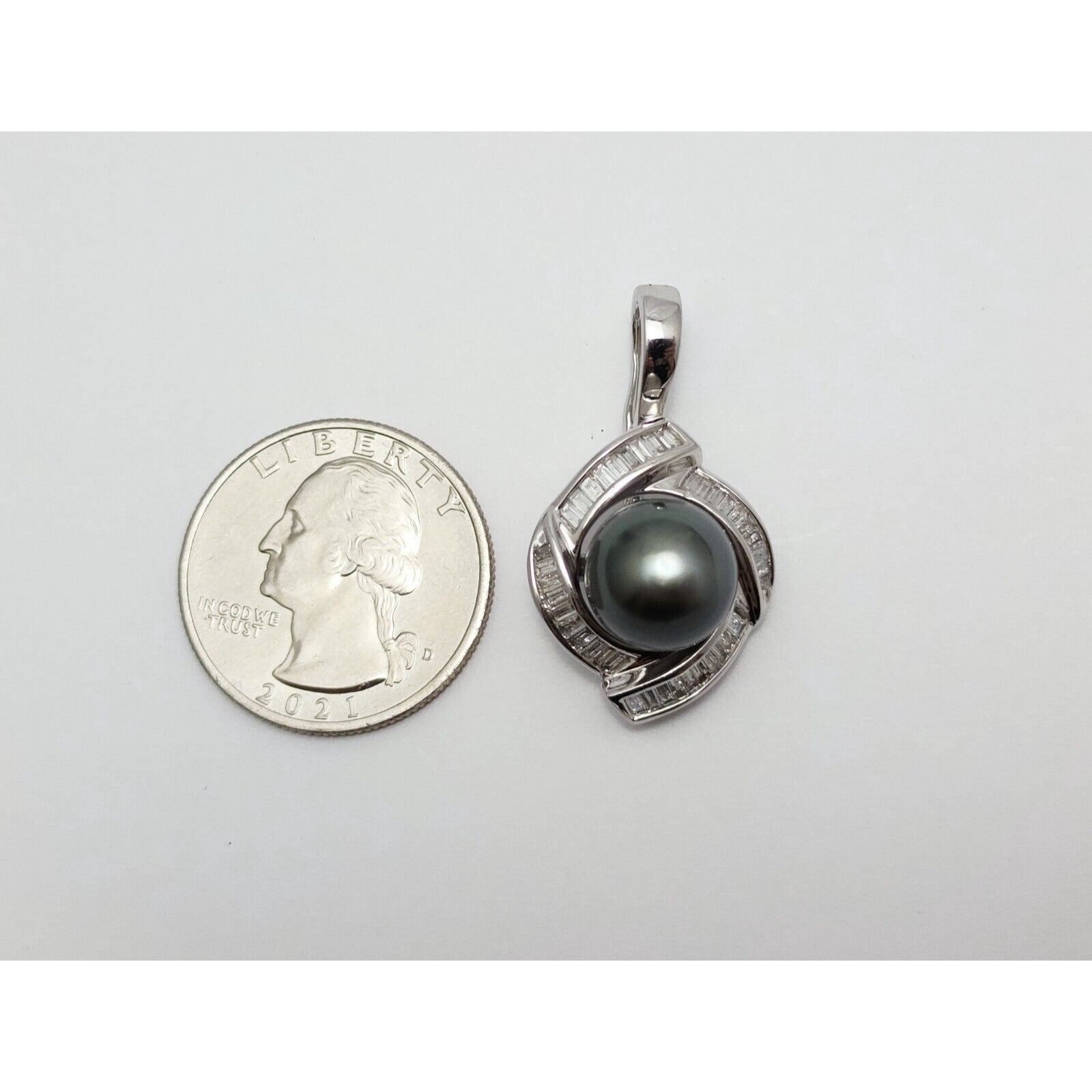 14K Solid White Gold Drop Dangle Tahitian Pearl & Diamond Charm Pendant