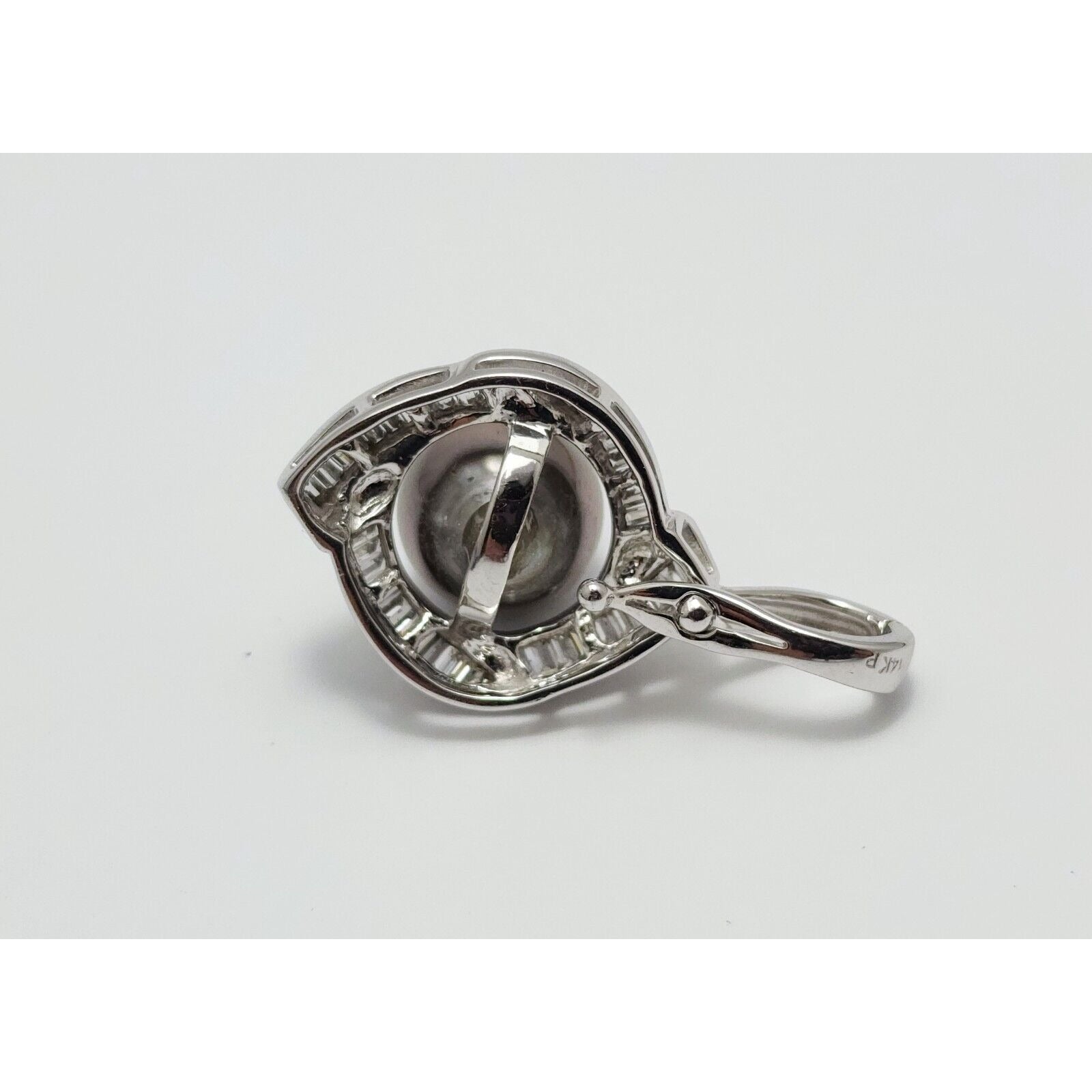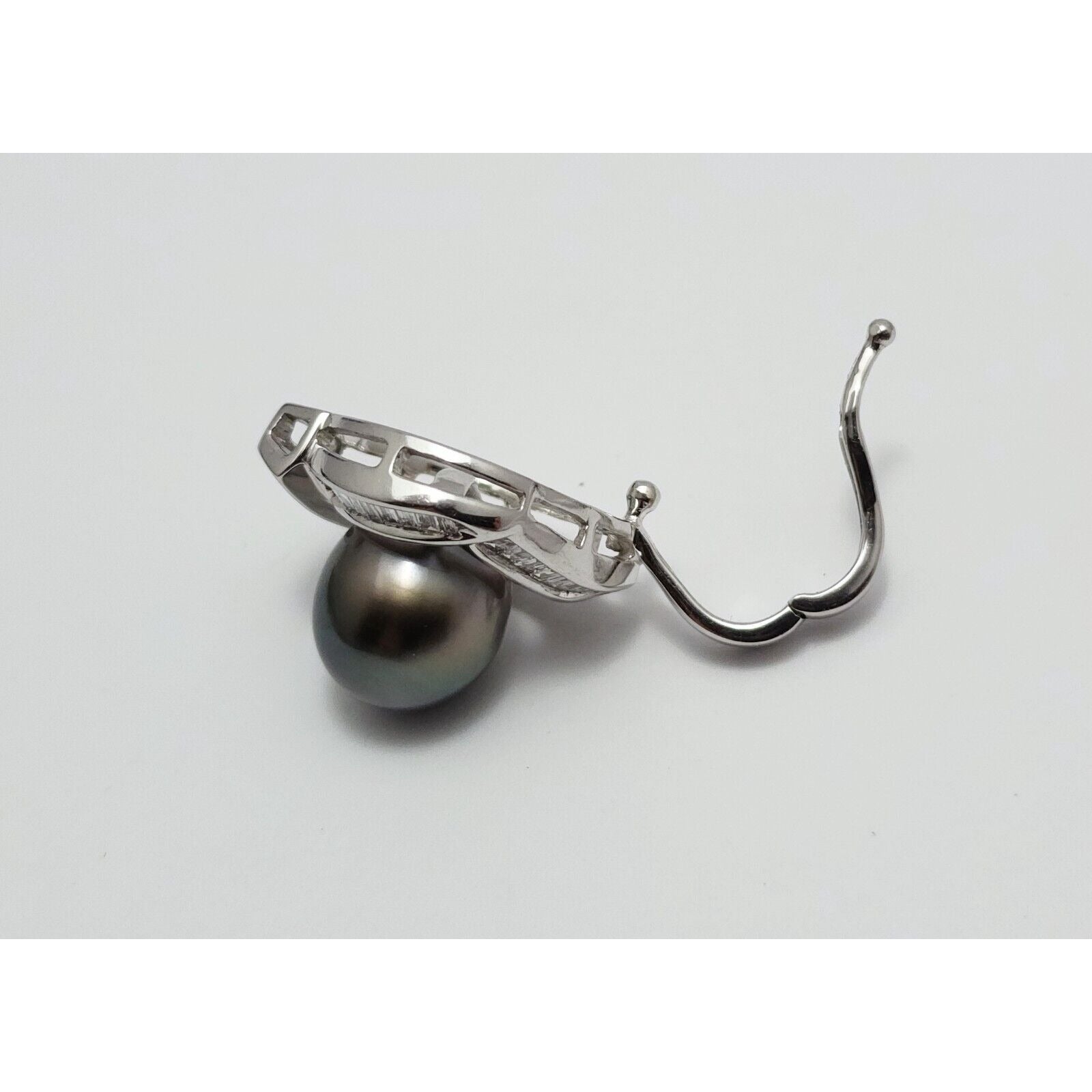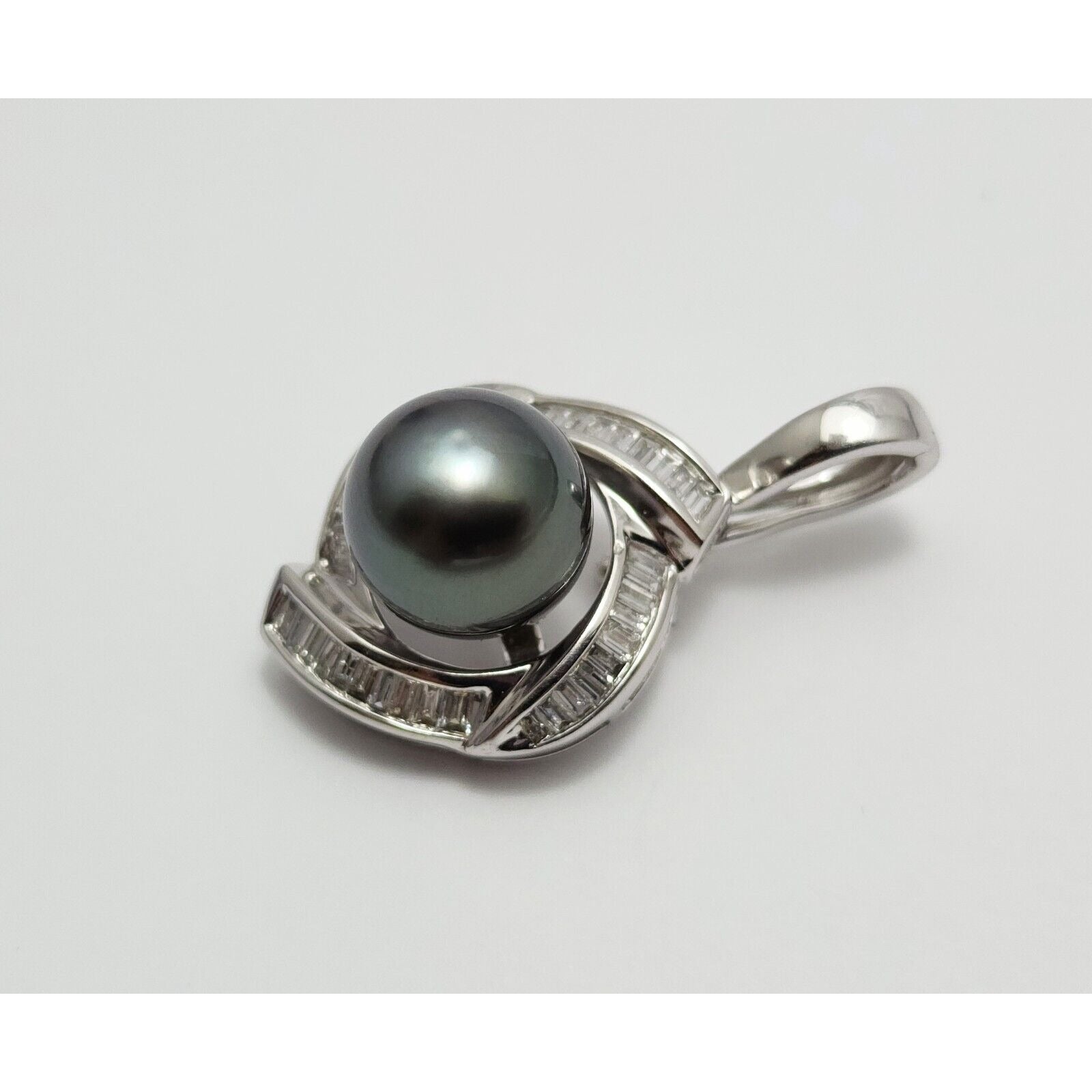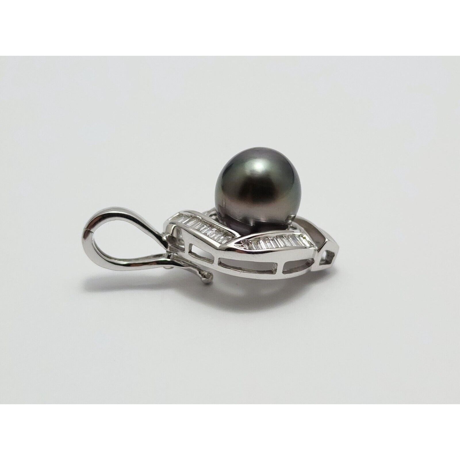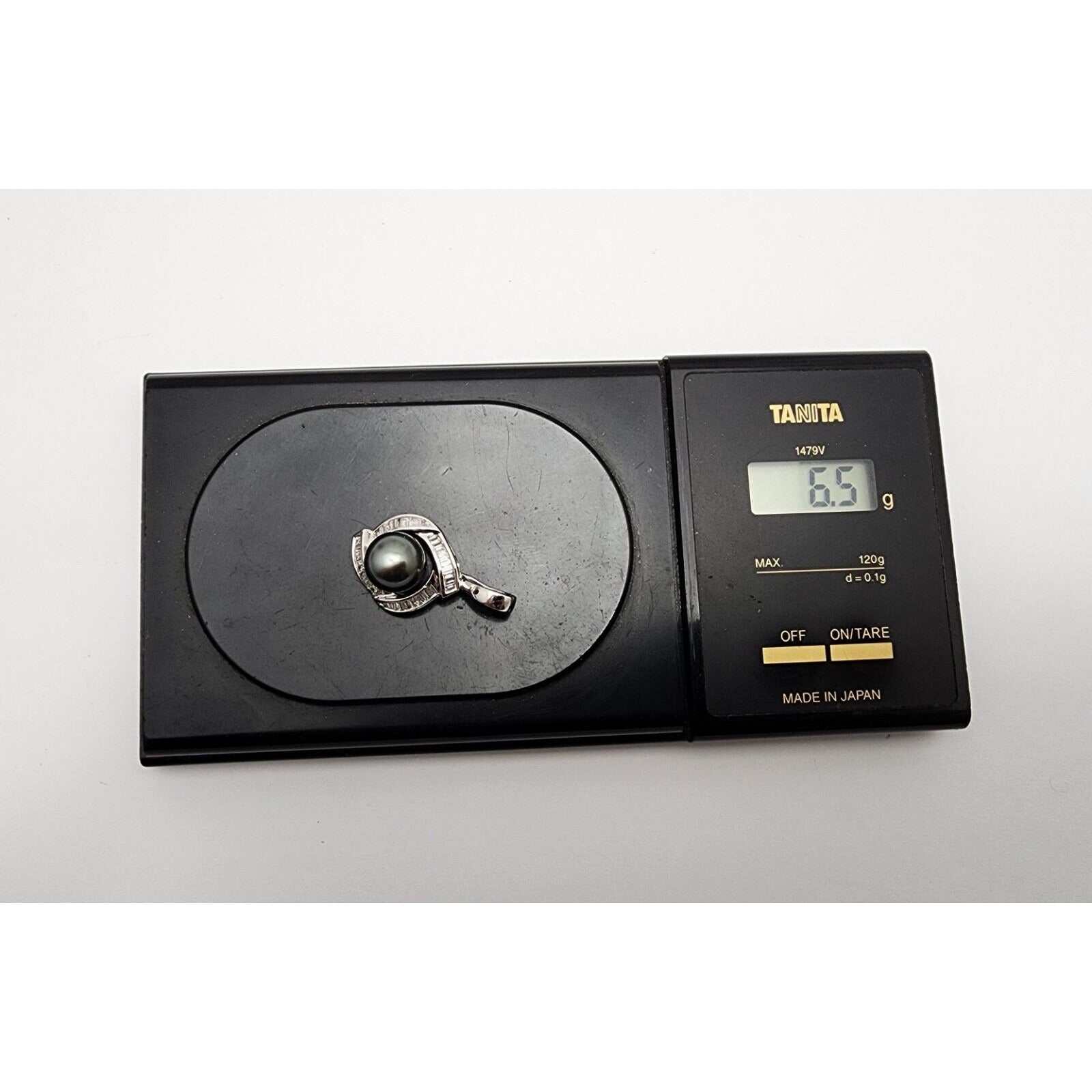 14K Solid White Gold Drop Dangle Tahitian Pearl & Diamond Charm Pendant