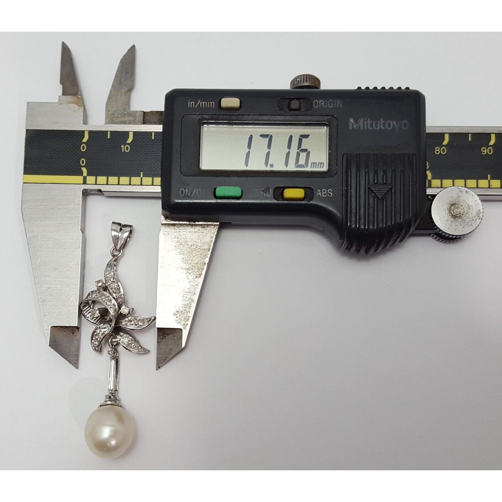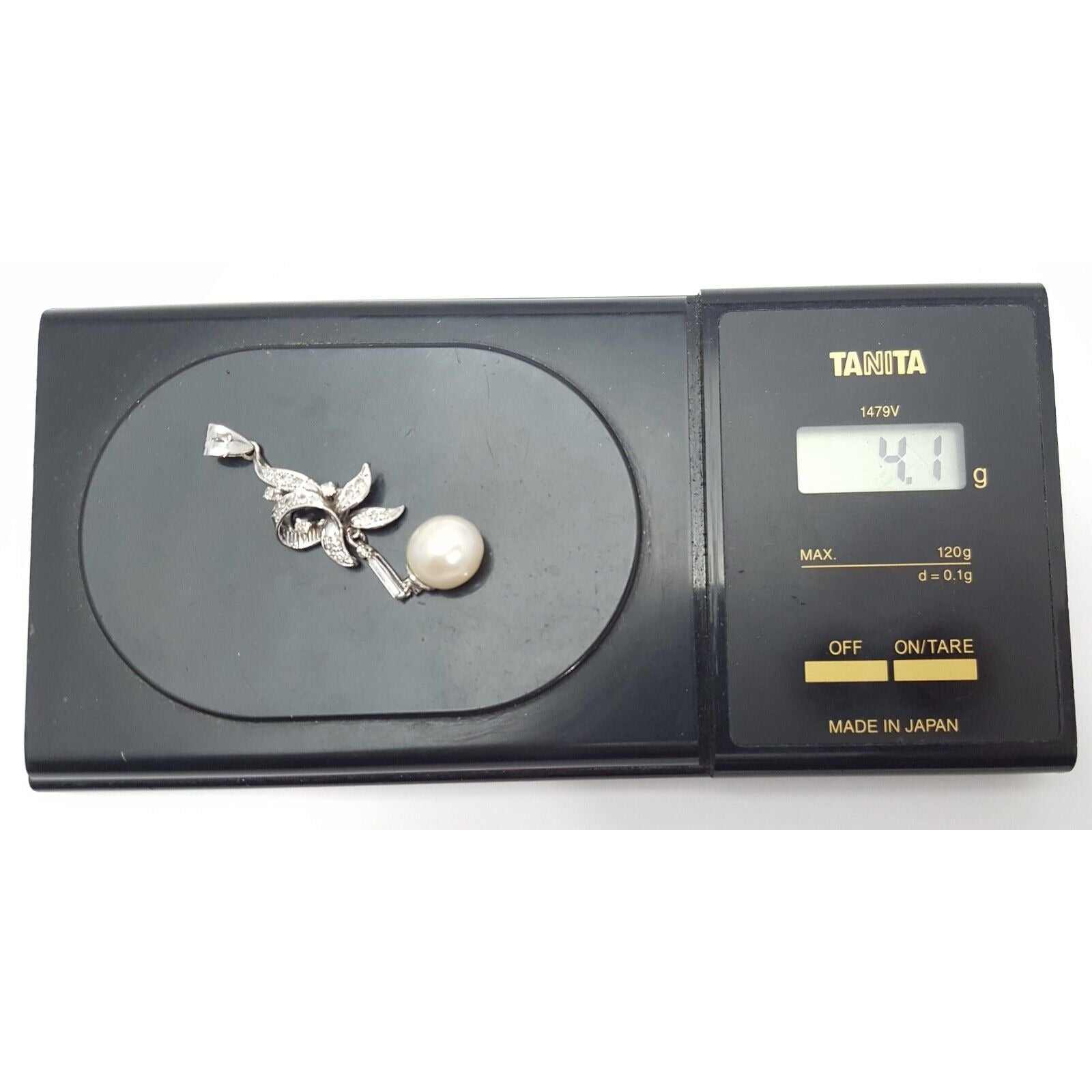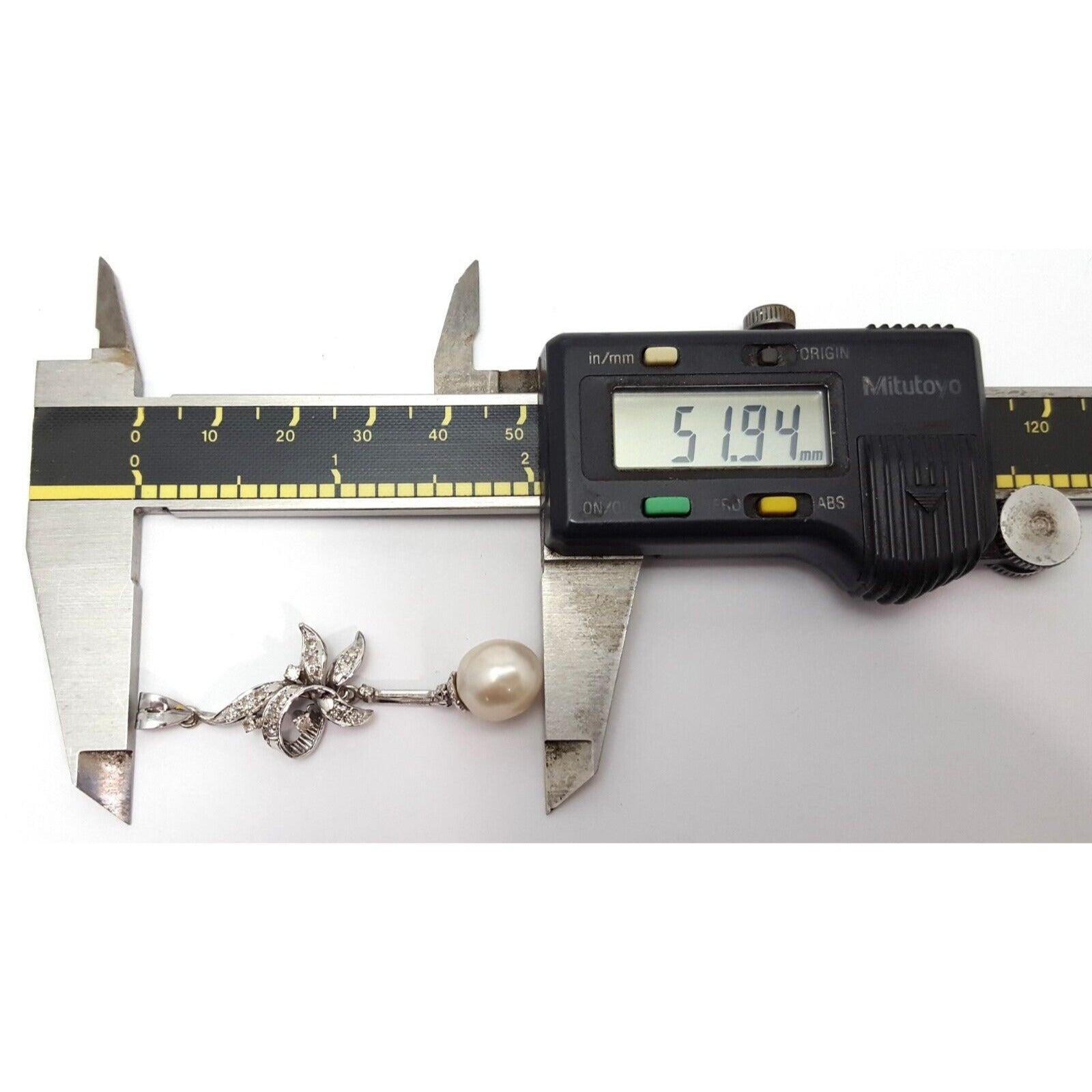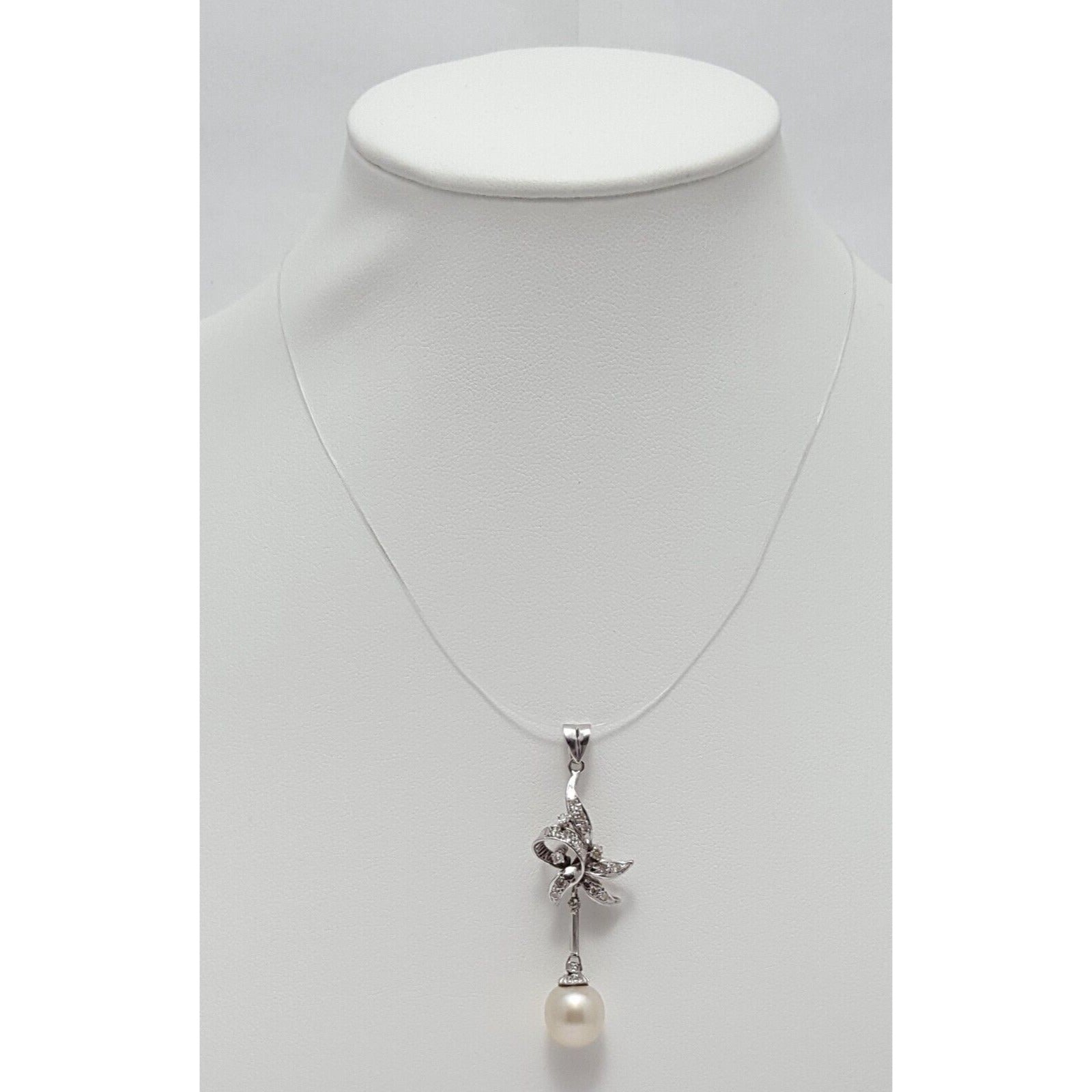 14K Solid White Gold Pearl & Diamond Drop Dangle Charm Pendant