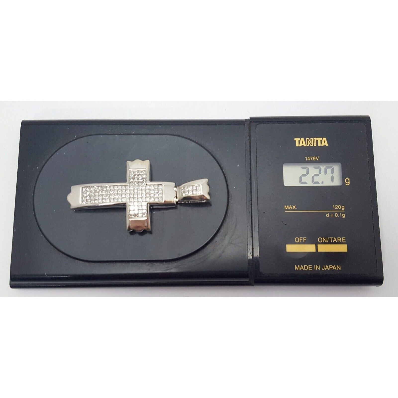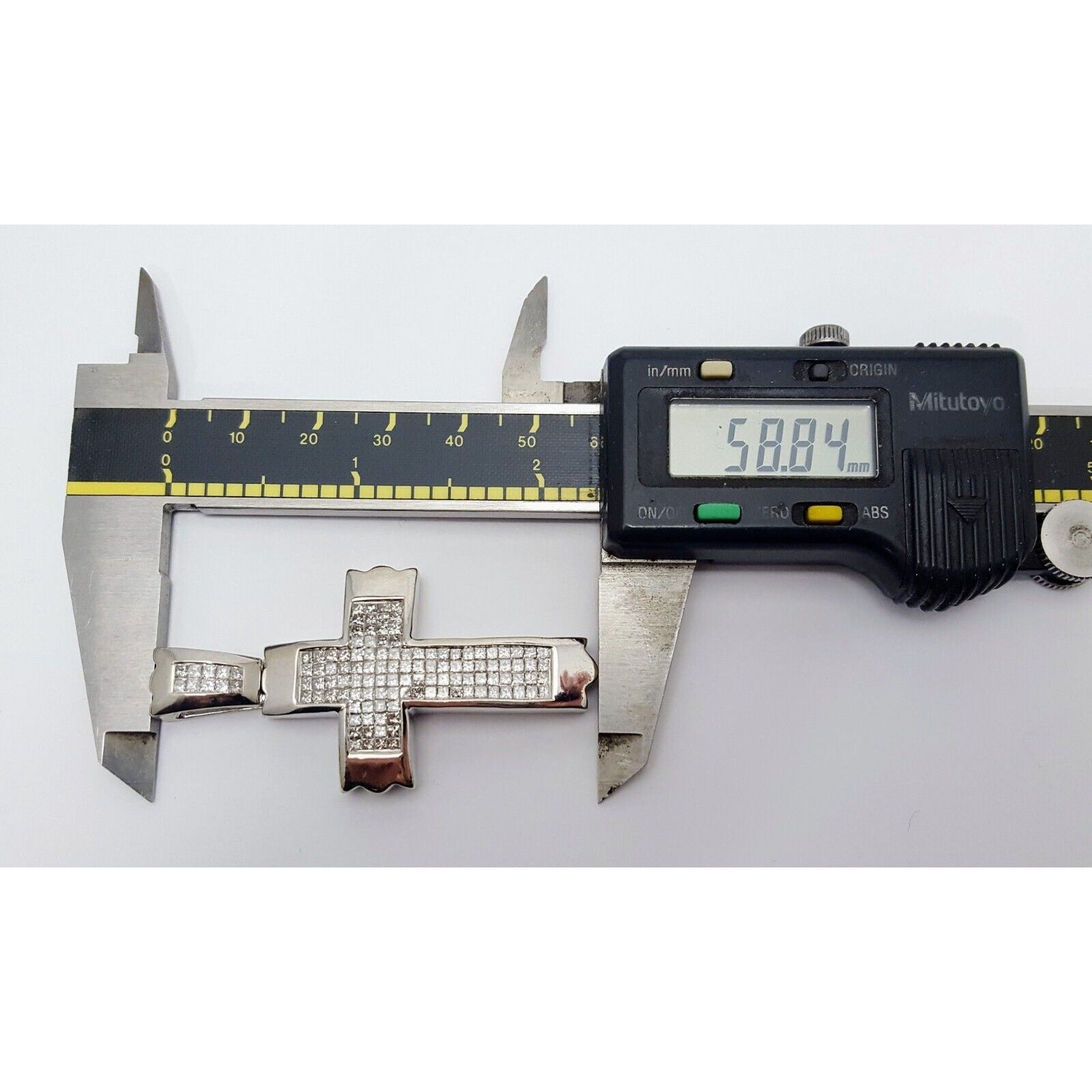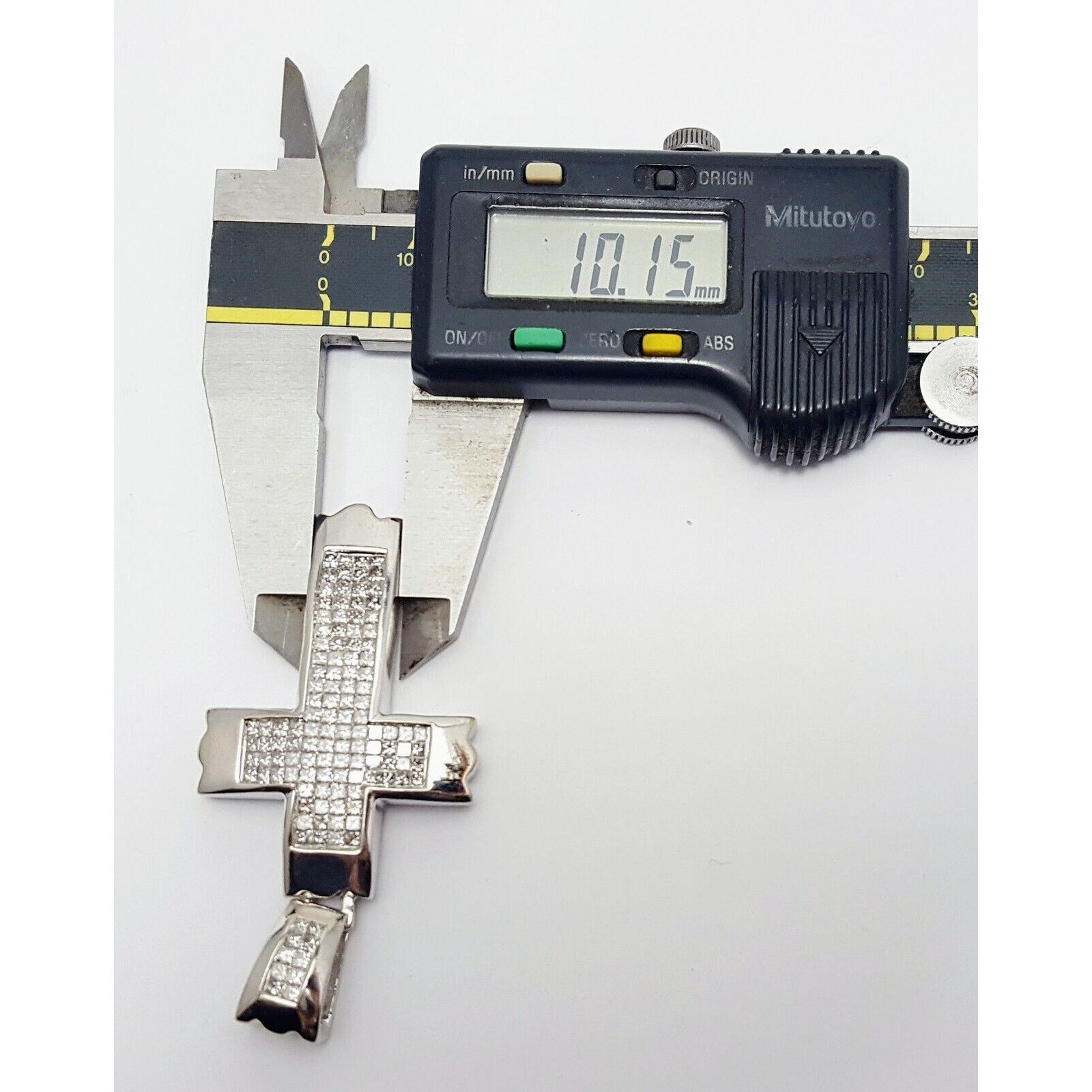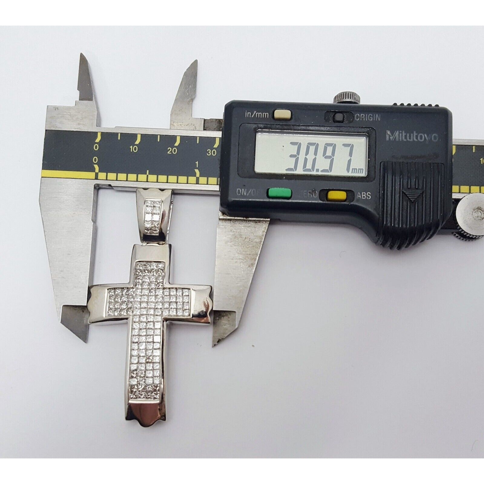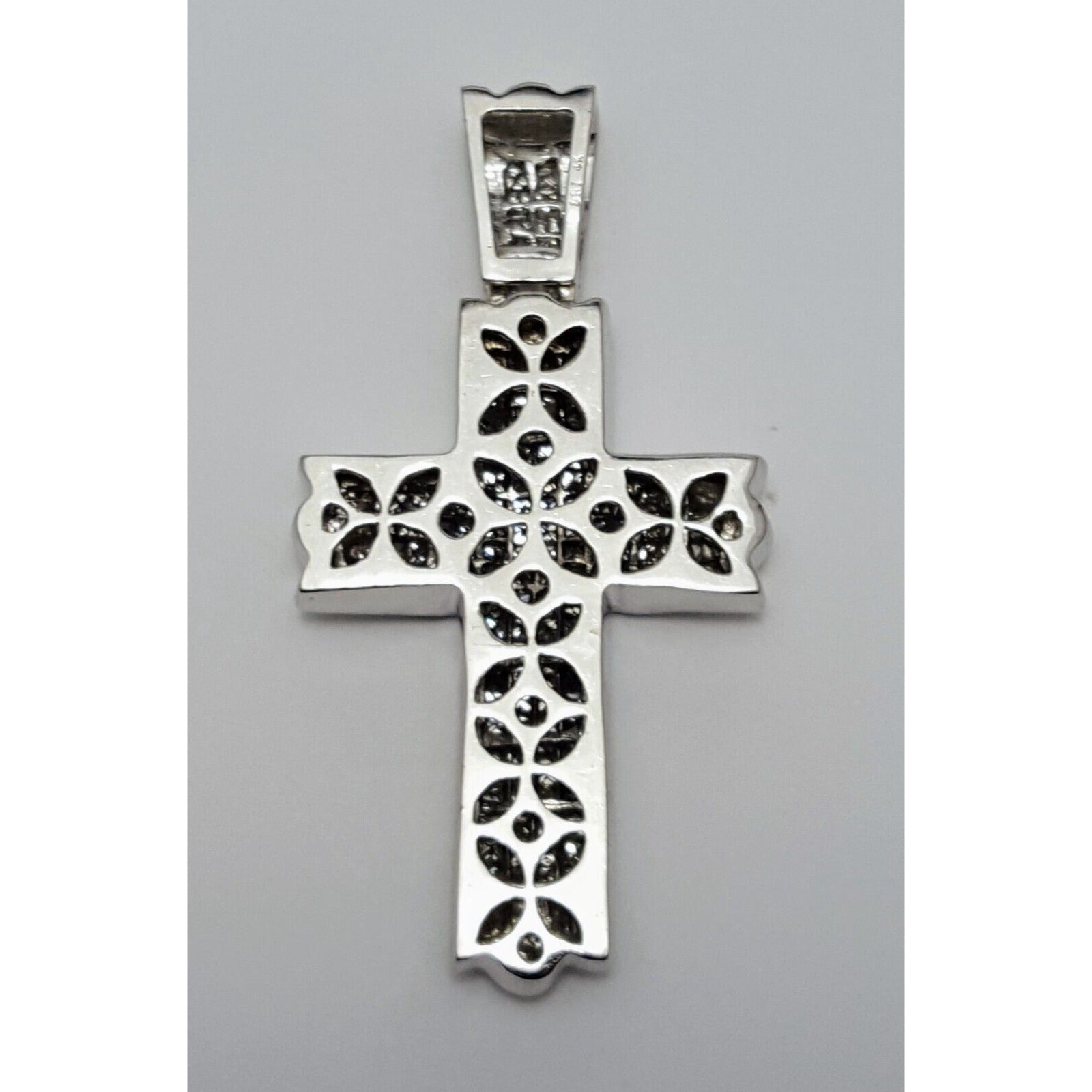 14K Solid White Gold Princess Cut Invisible Setting Diamond Cross Charm Pendant
