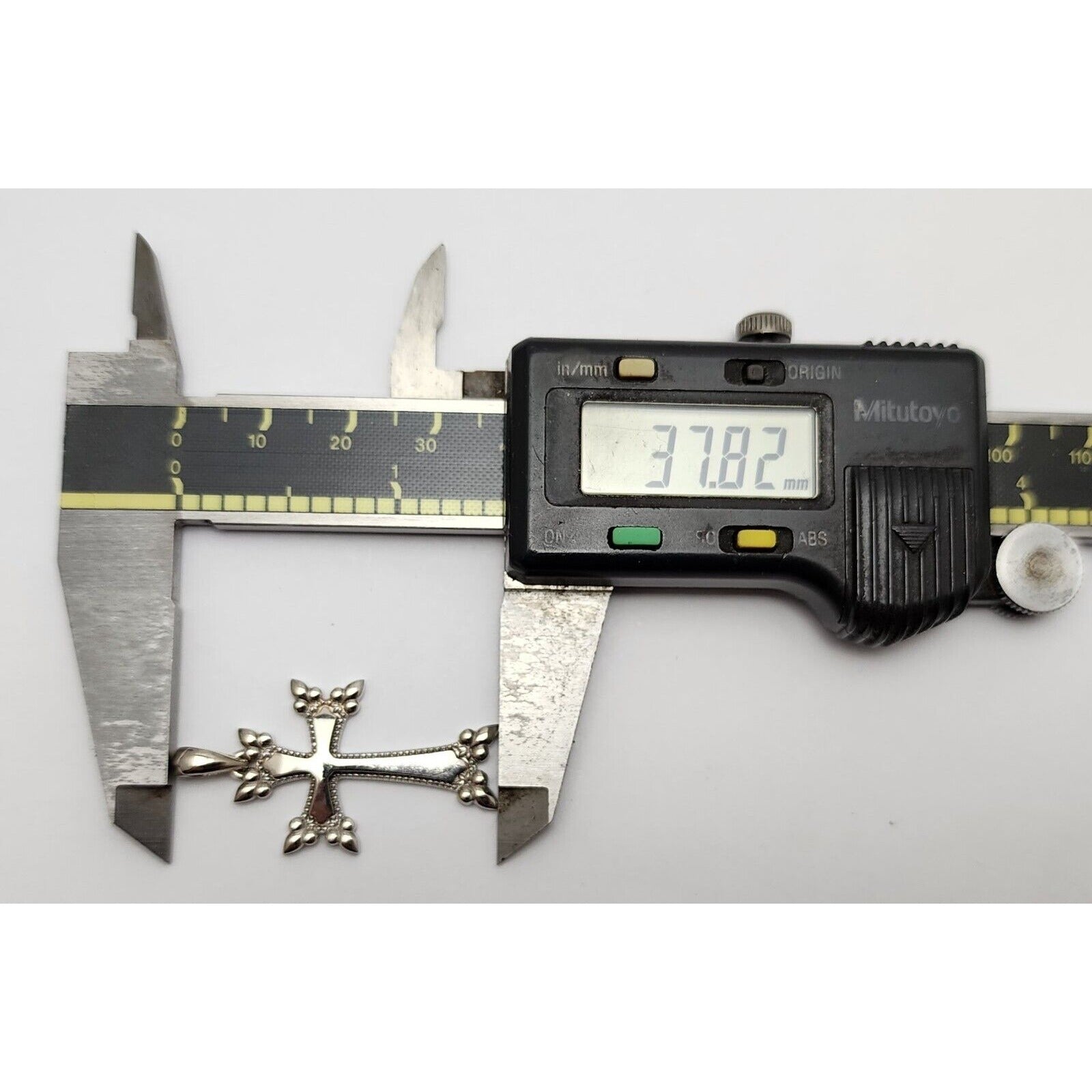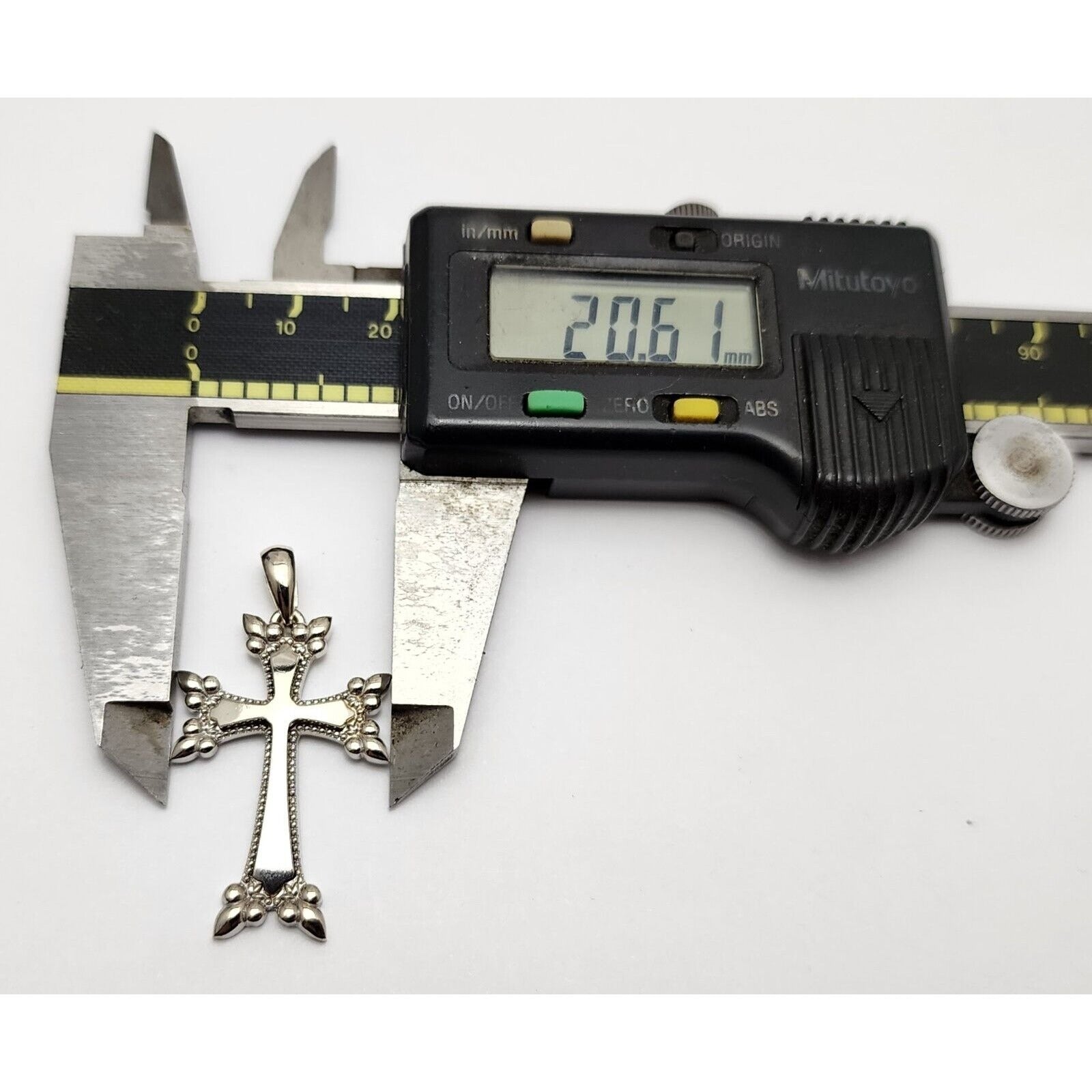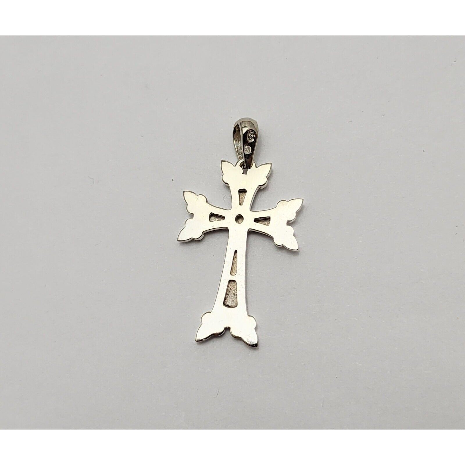 14K Solid White Gold Religious Cross Pendant Charm