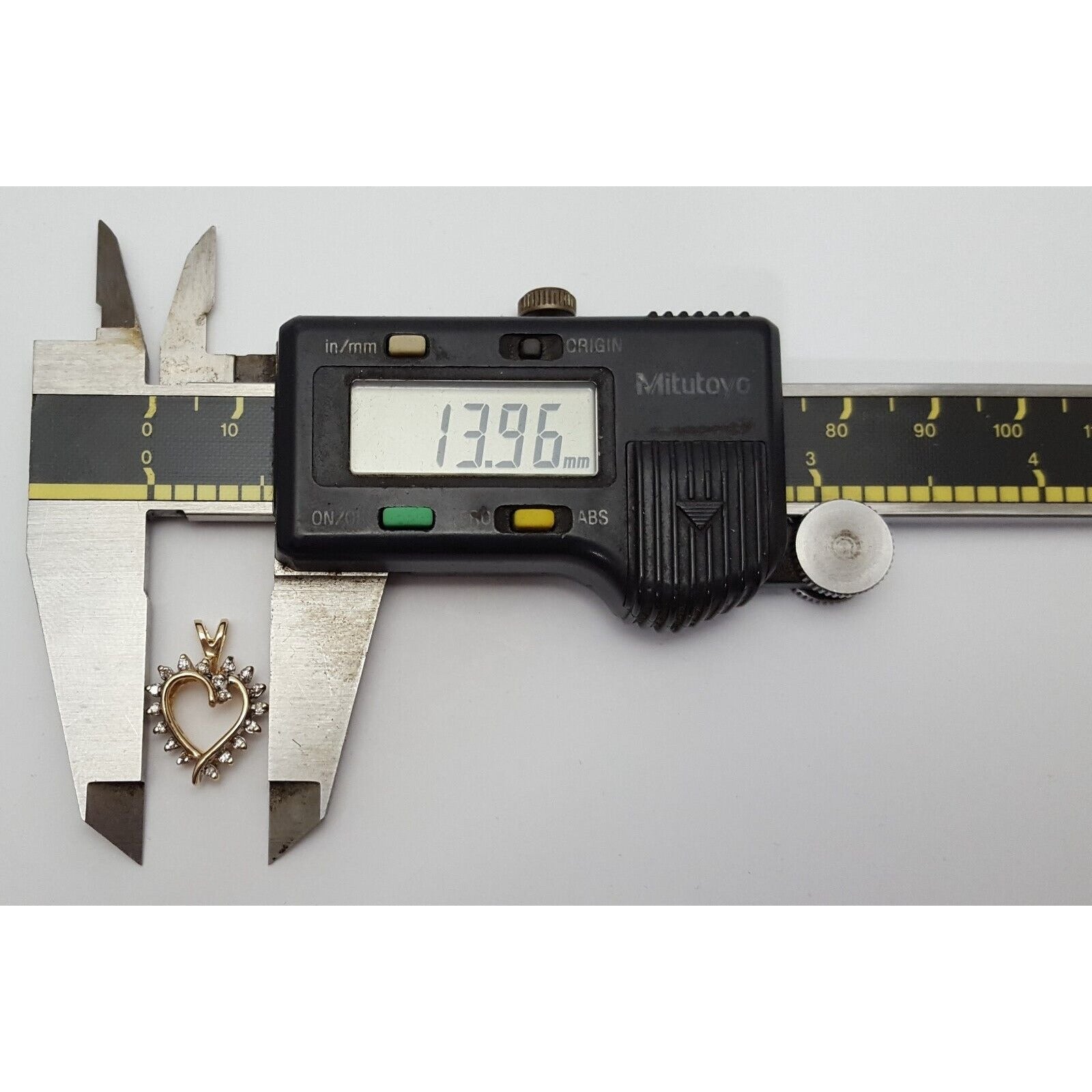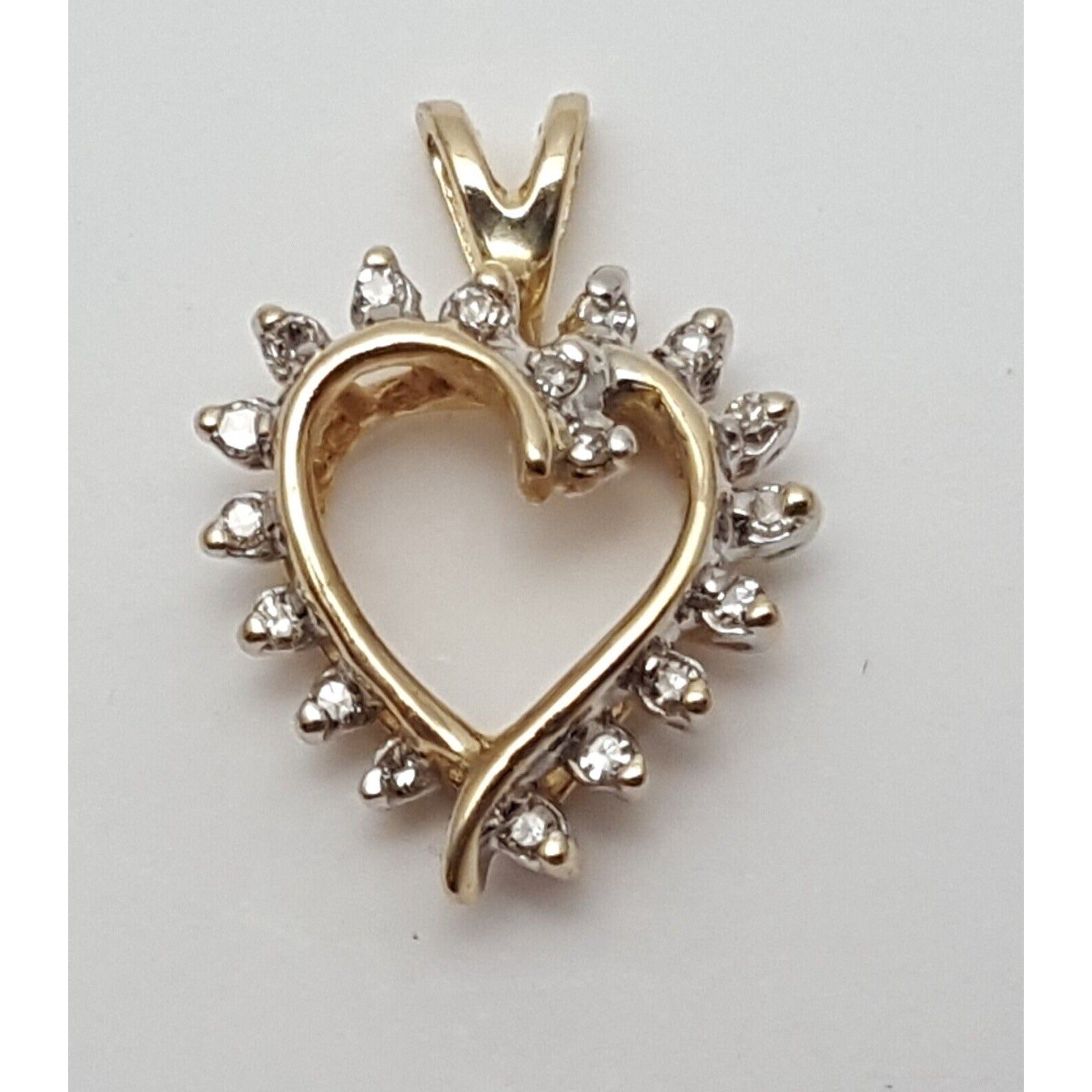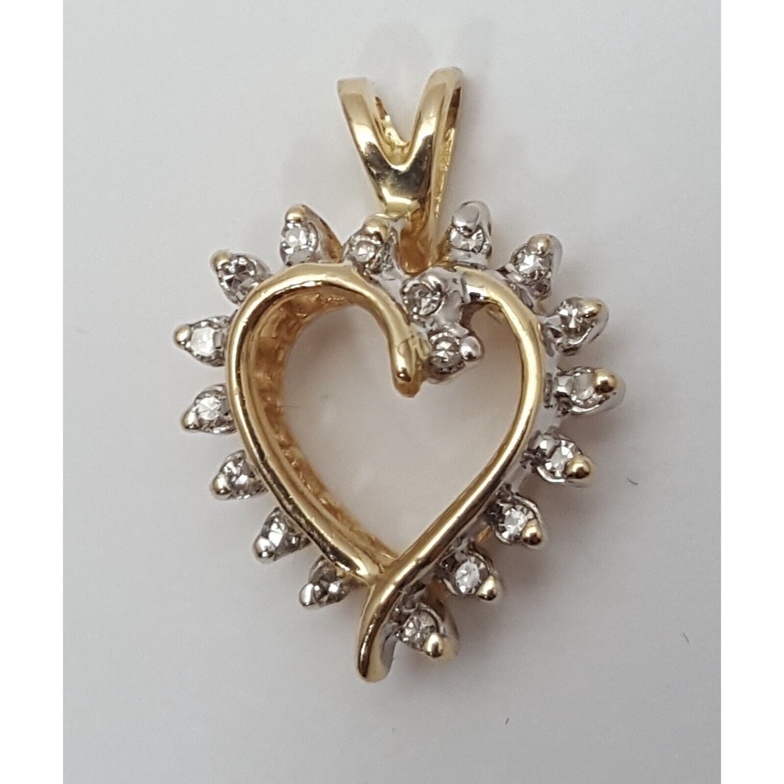 14K Solid Yellow Gold Diamond Open Heart Charm Pendant