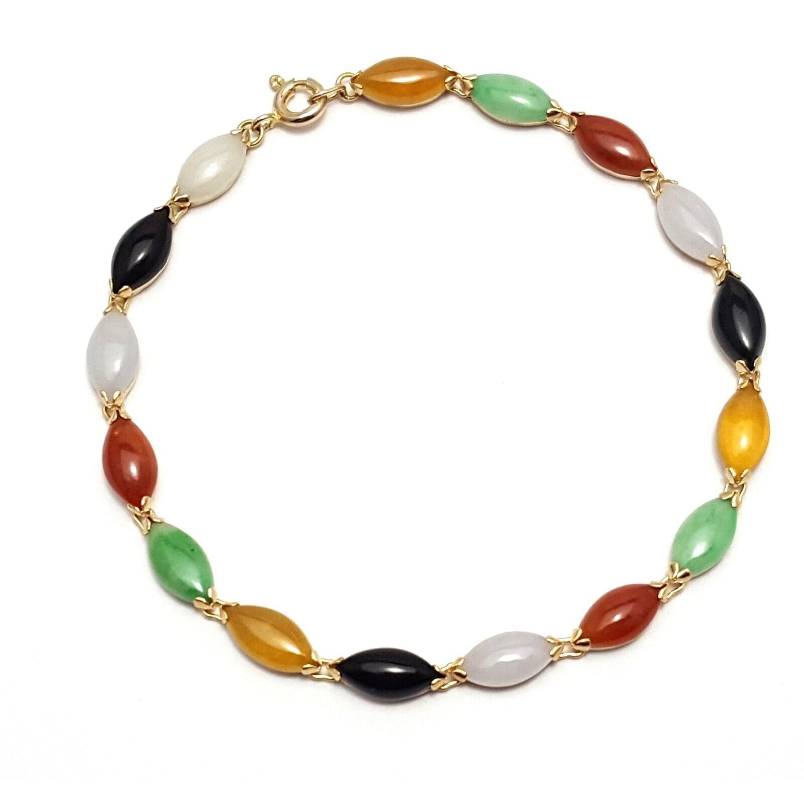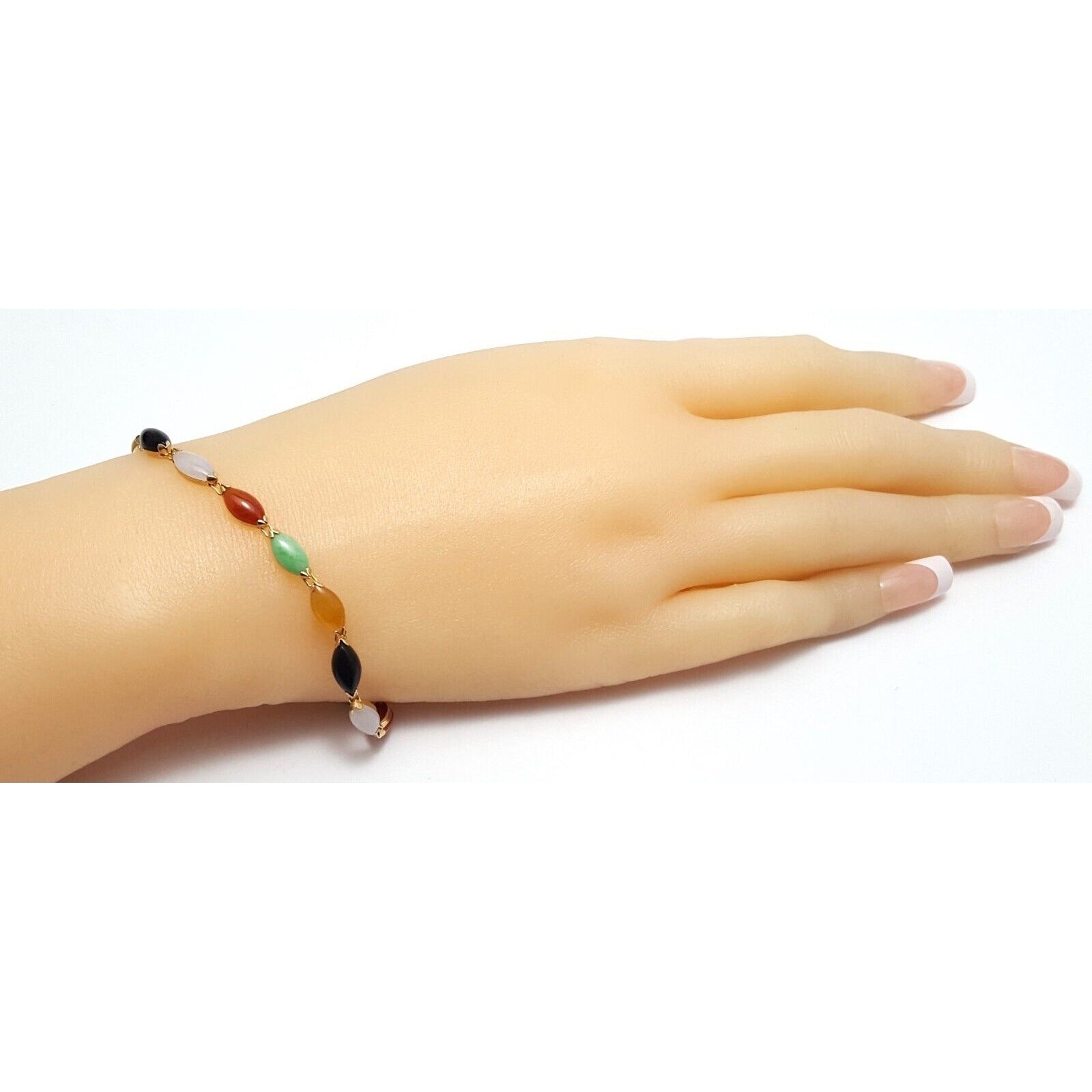 14K Solid Yellow Gold Multi Color Gemstone Link Bracelet