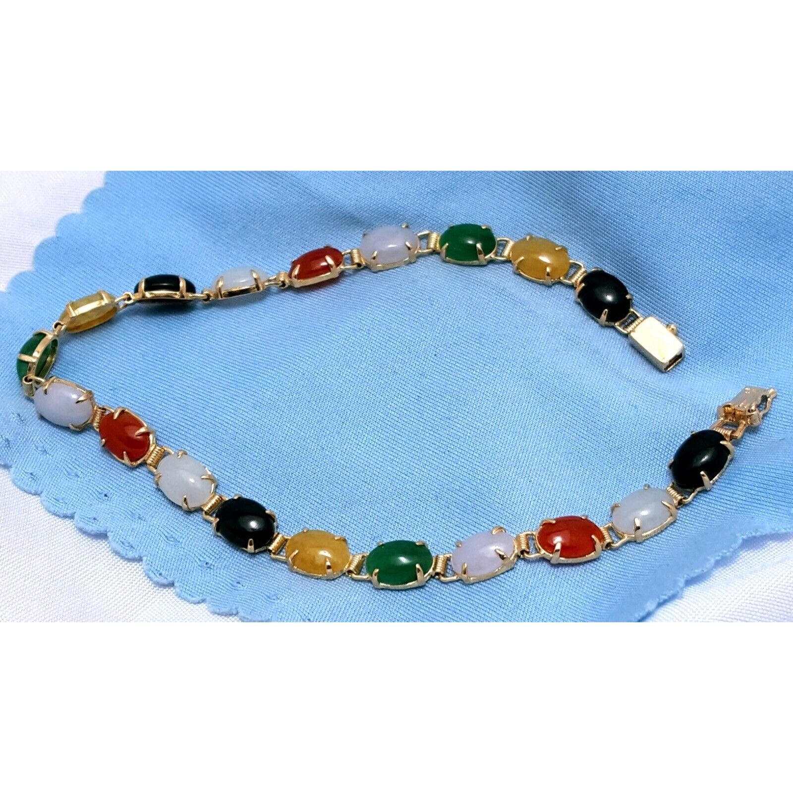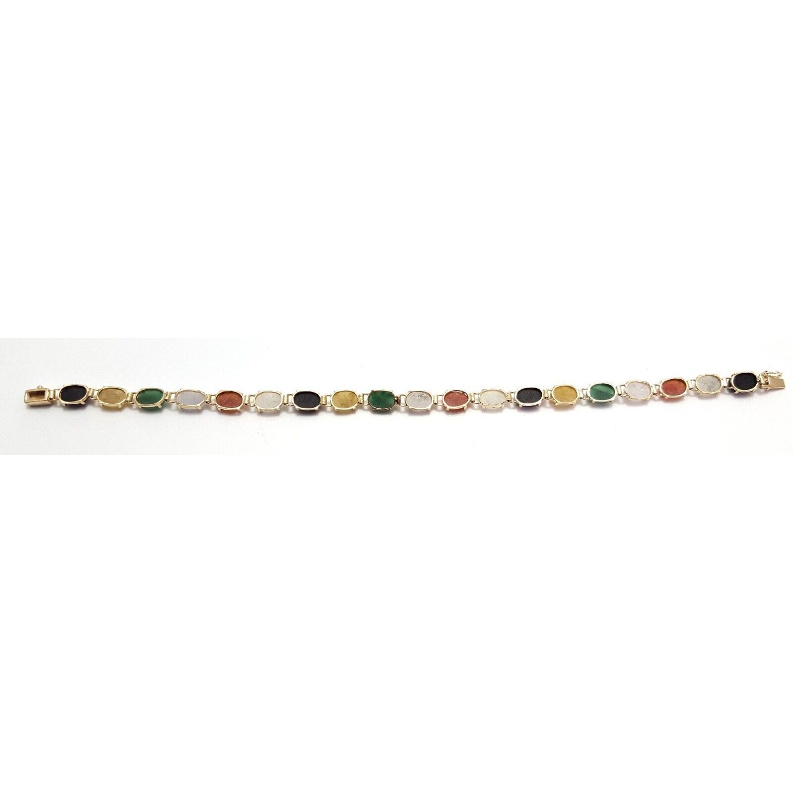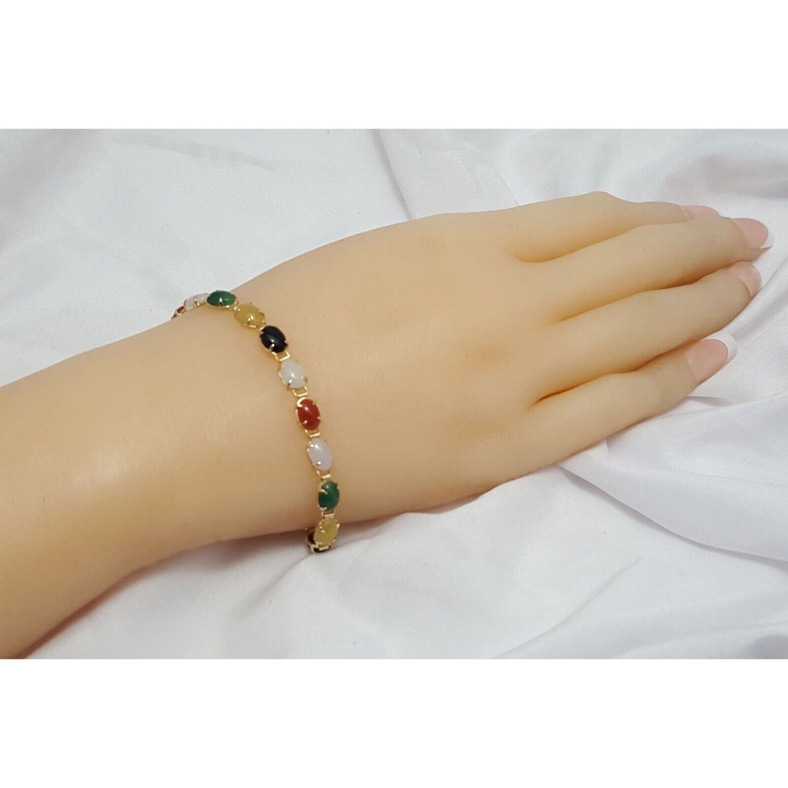 14K Solid Yellow Gold Multi Color Gemstone Tennis Bracelet
