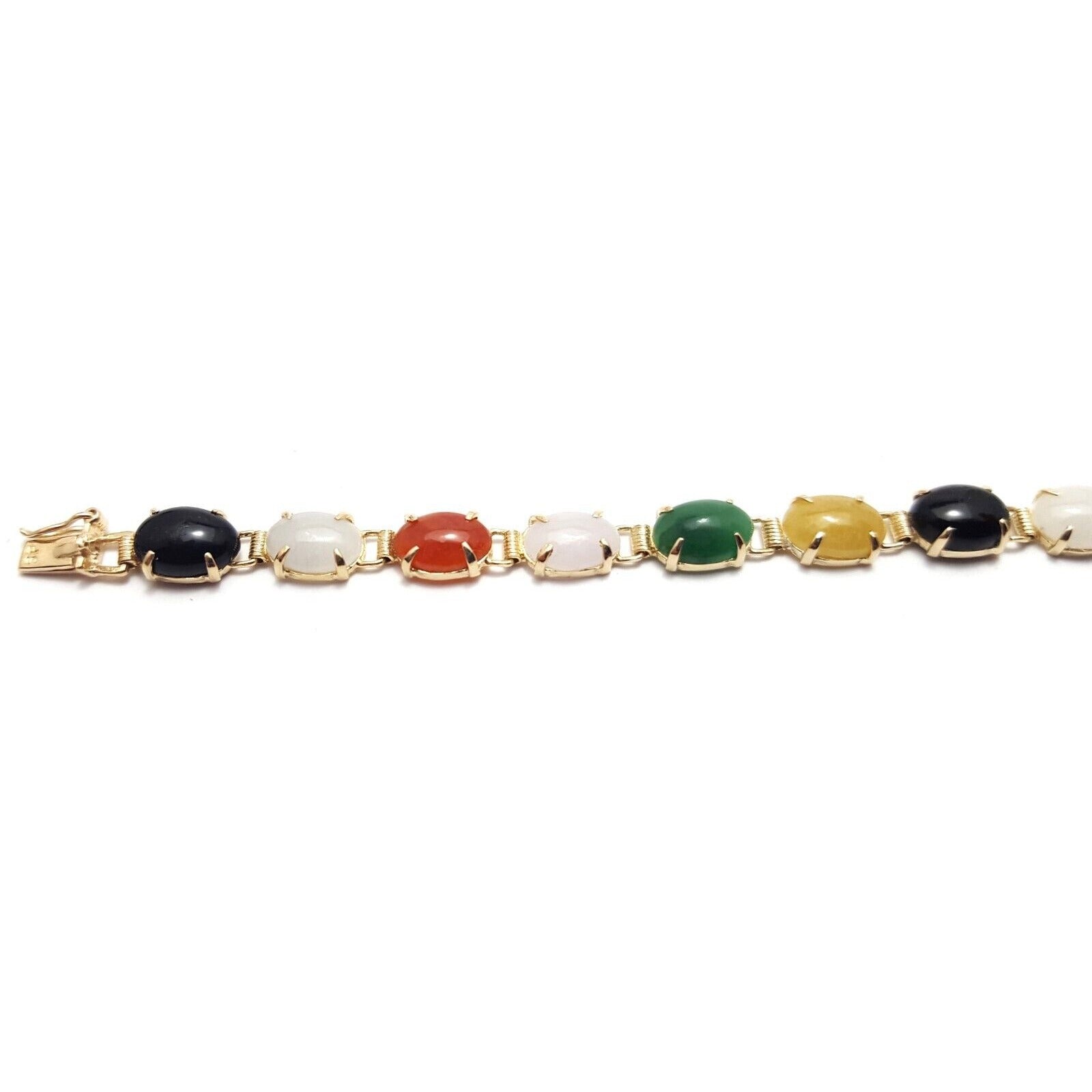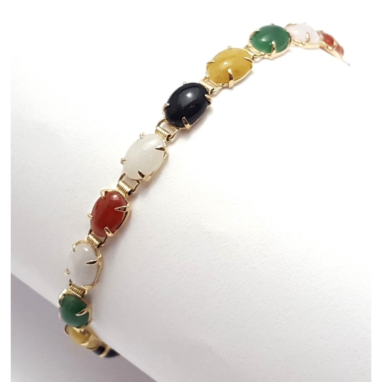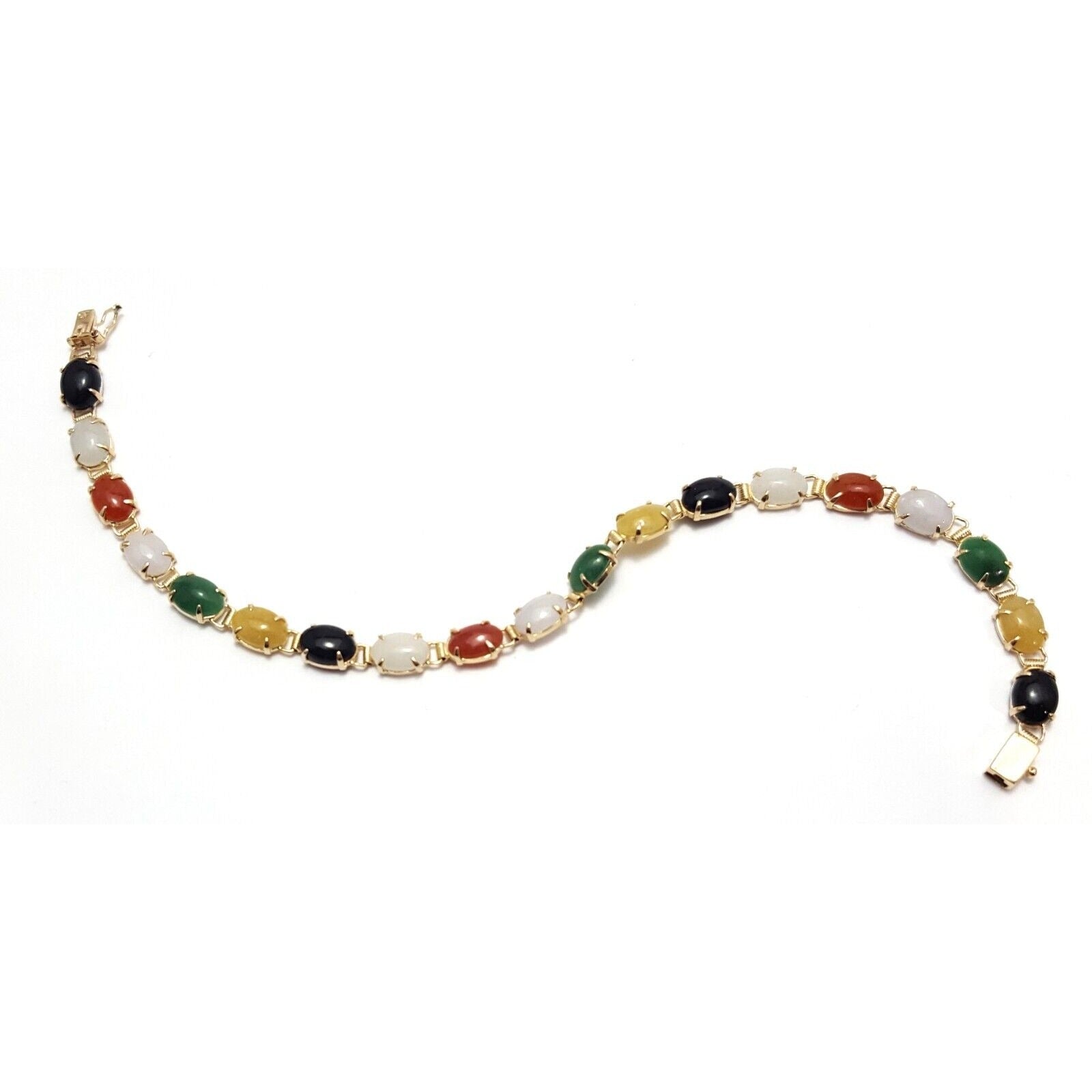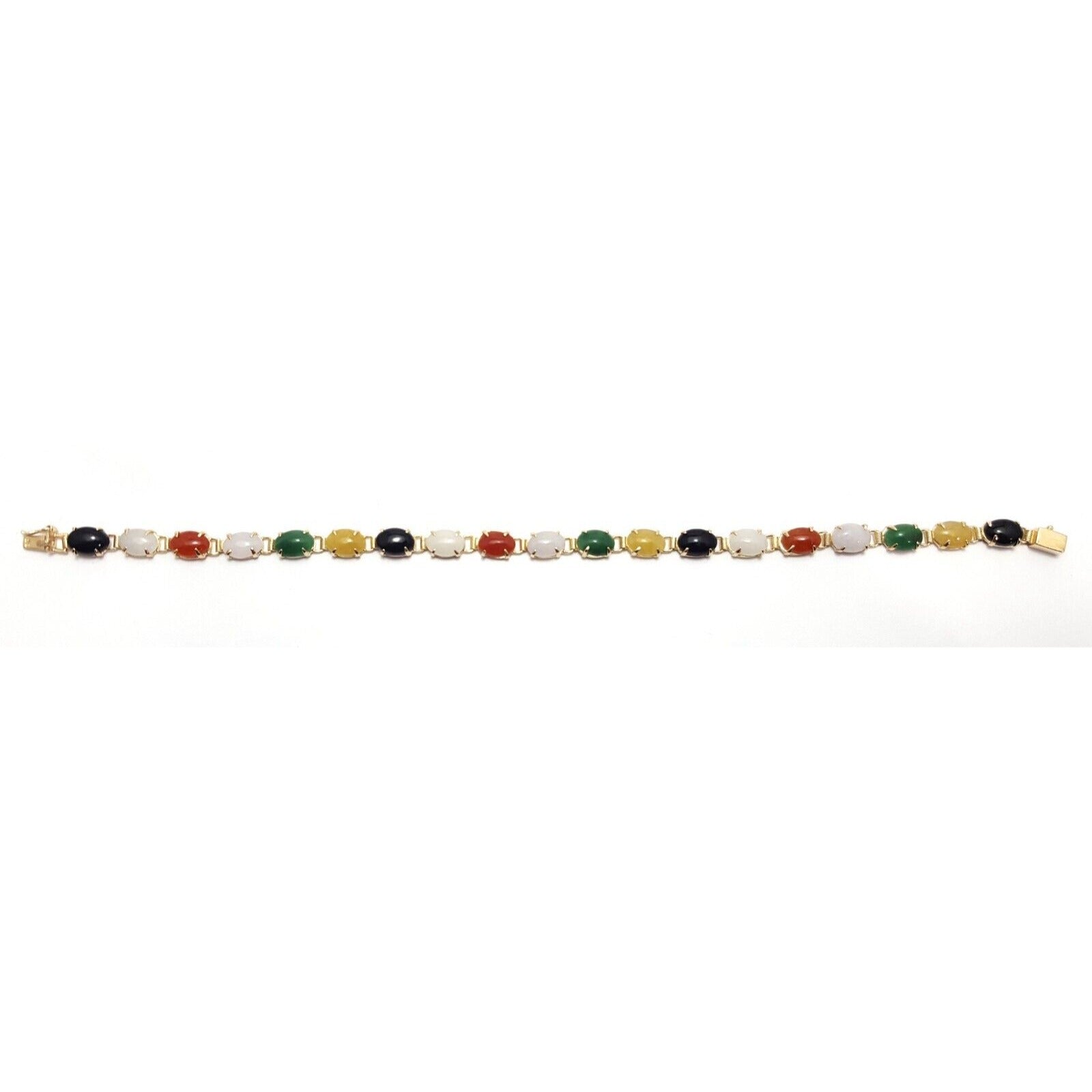 14K Solid Yellow Gold Multi Color Gemstone Tennis Bracelet