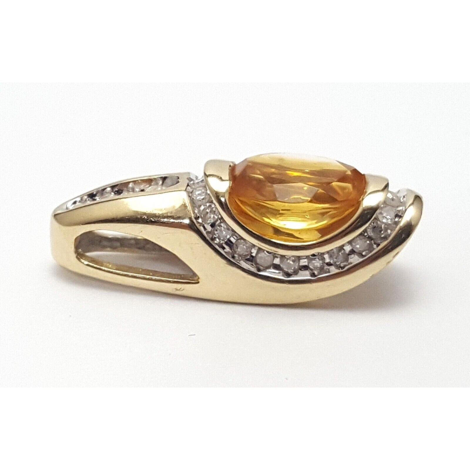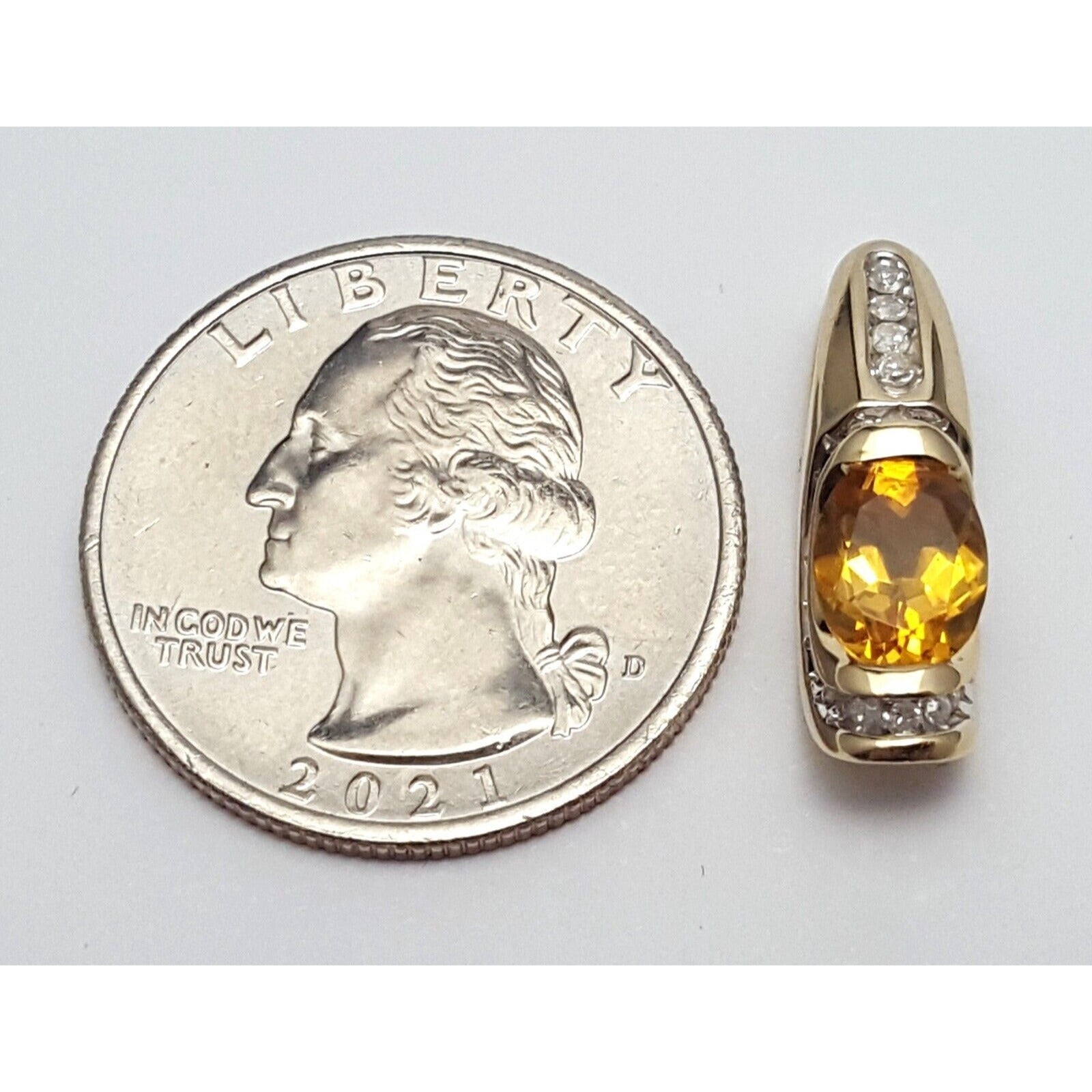 14K Solid Yellow Gold Yellow Topaz & Diamond Drop Charm Pendant