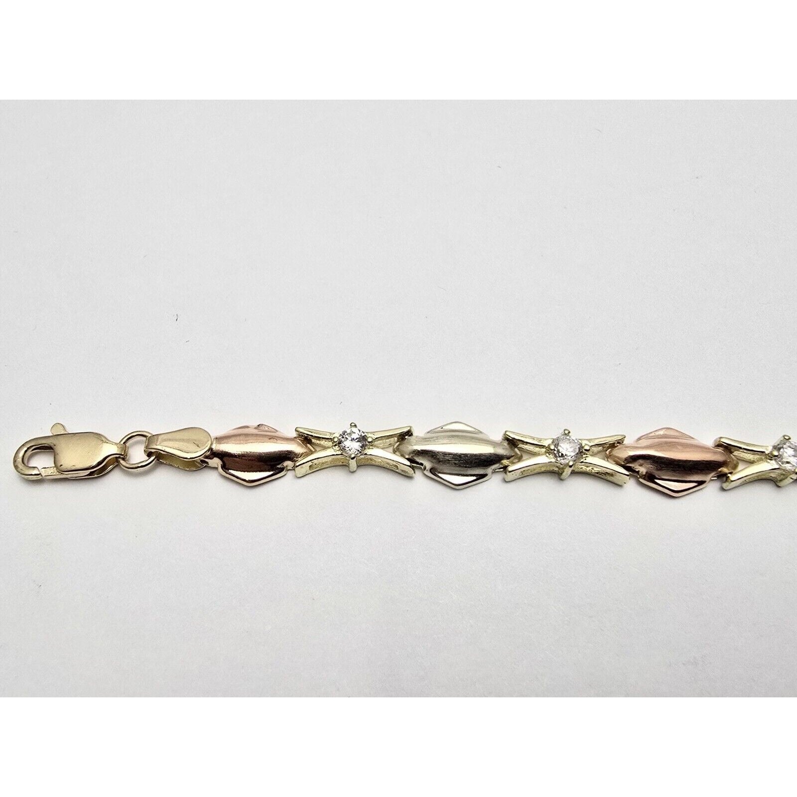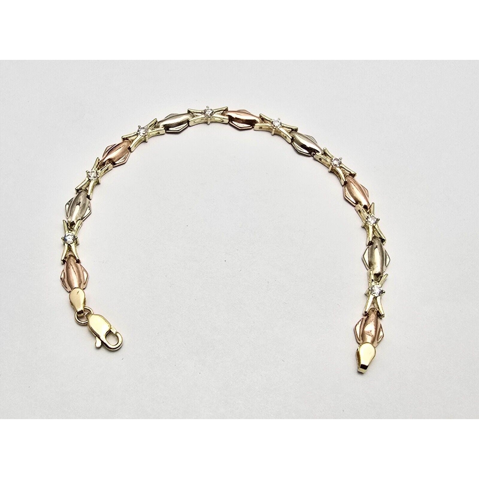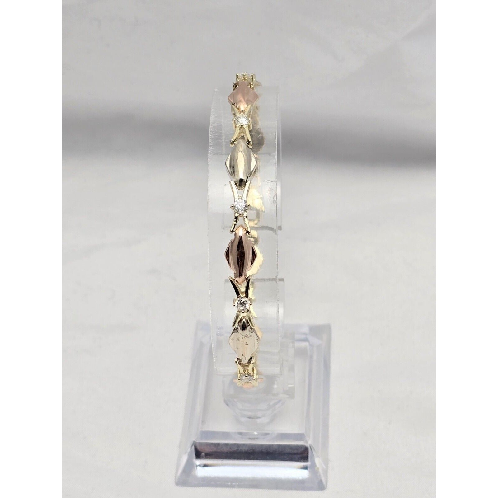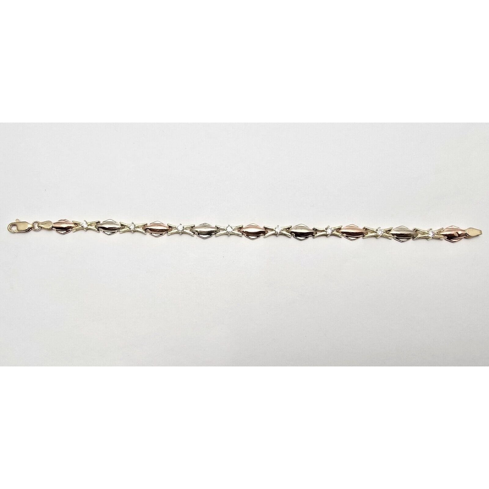 14K Tri Tone Gold Cubic Zirconia Tennis Link Bracelet