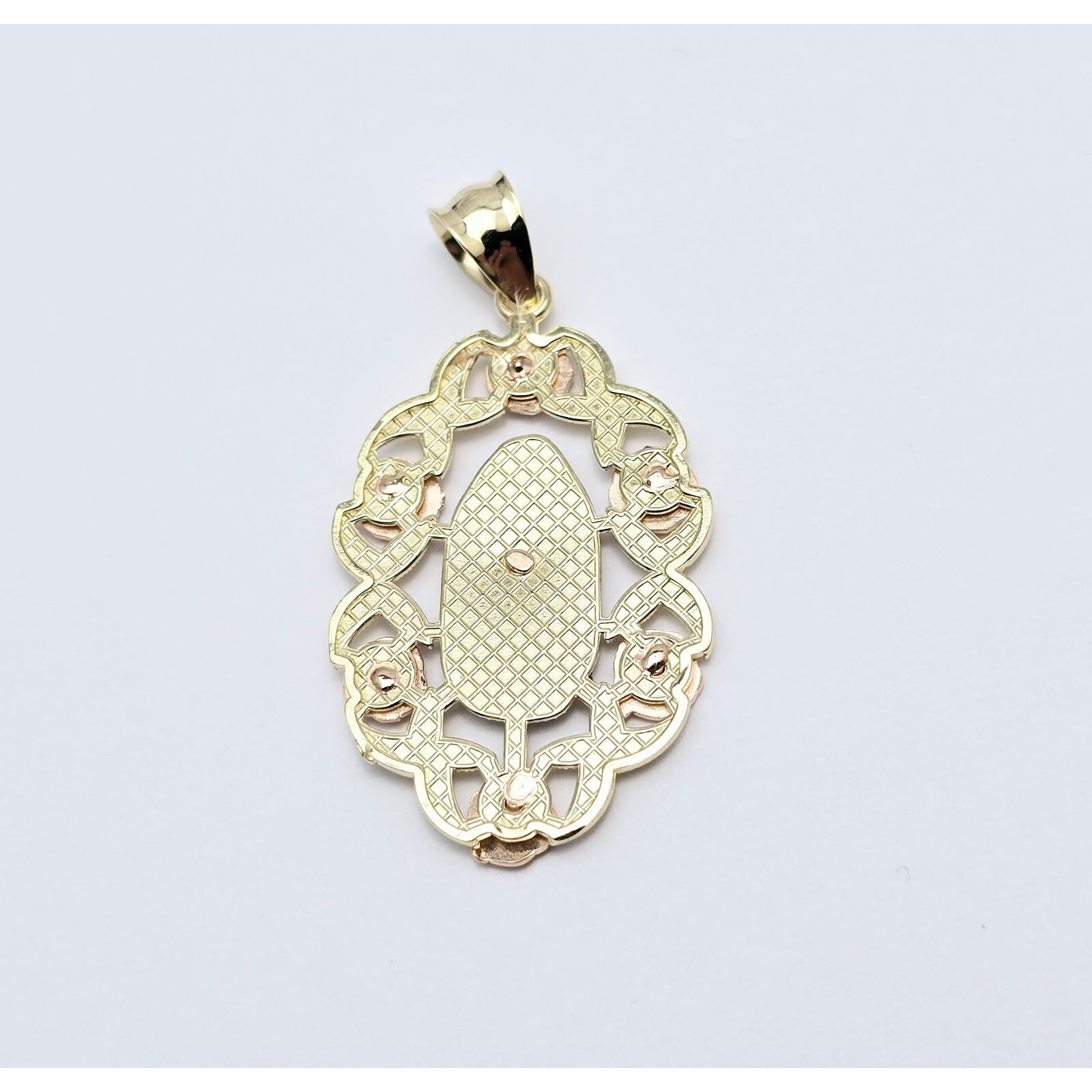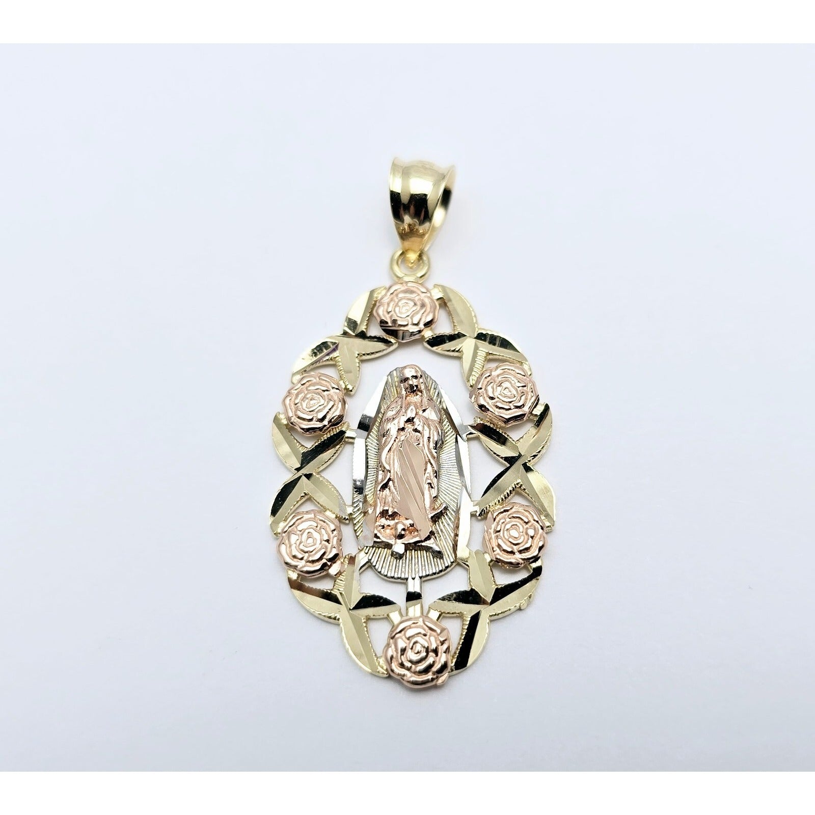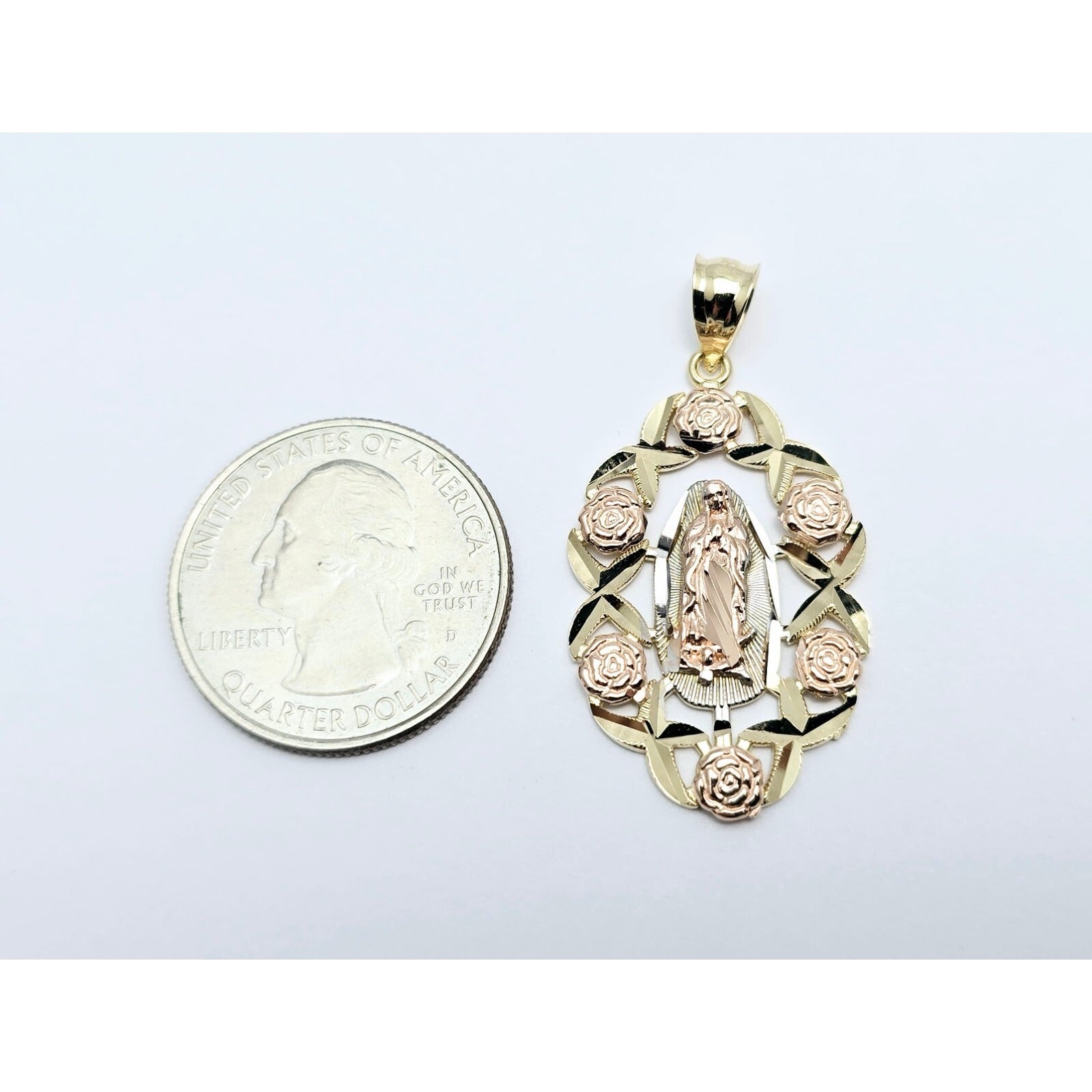 14K Tri Tone Gold Religious Flower Floral Saint Mary Charm Pendant