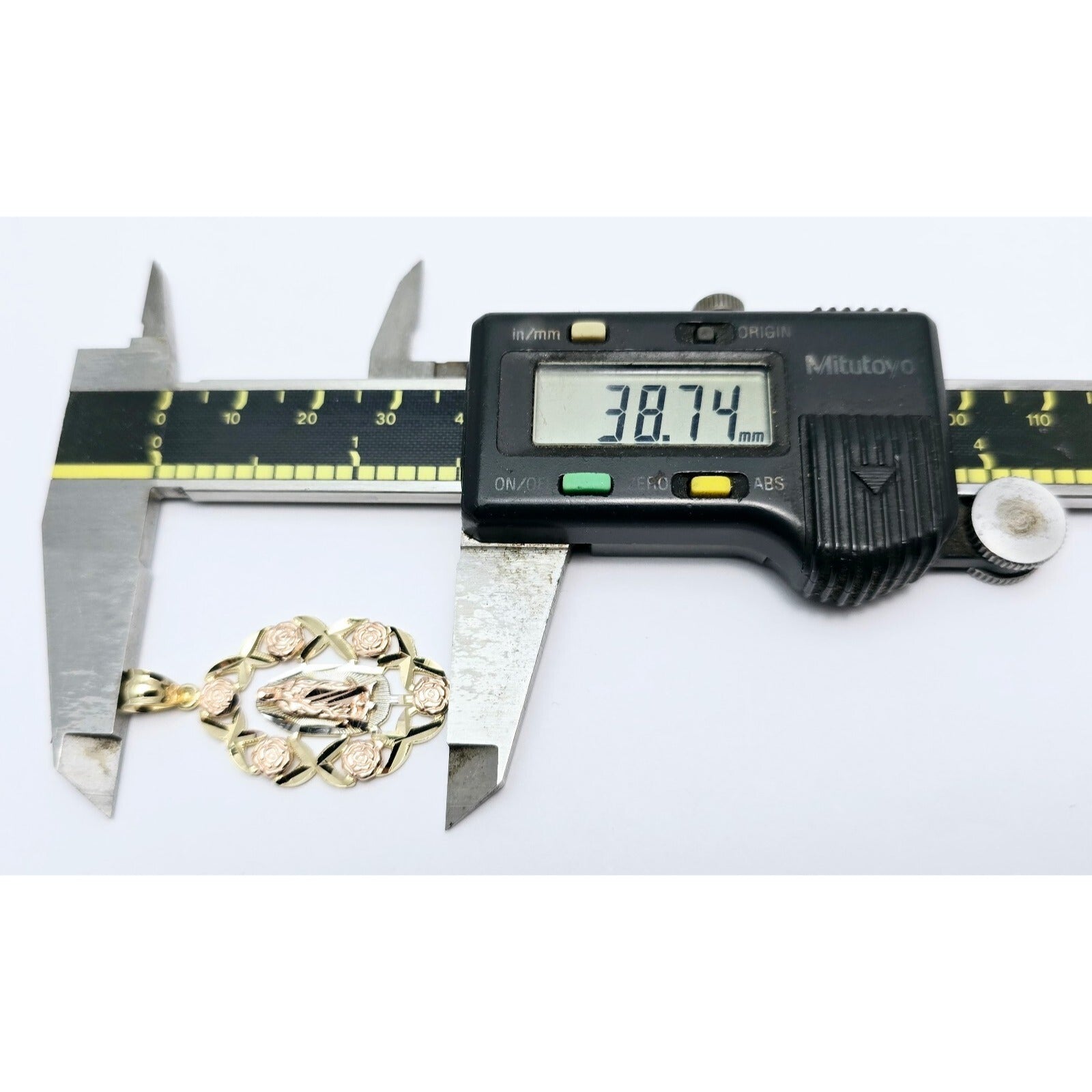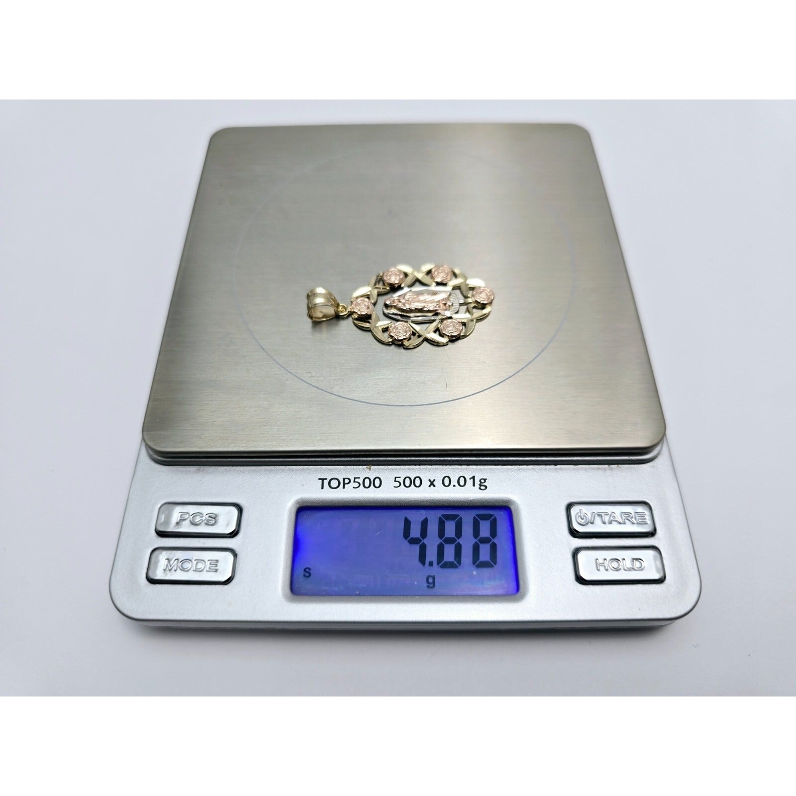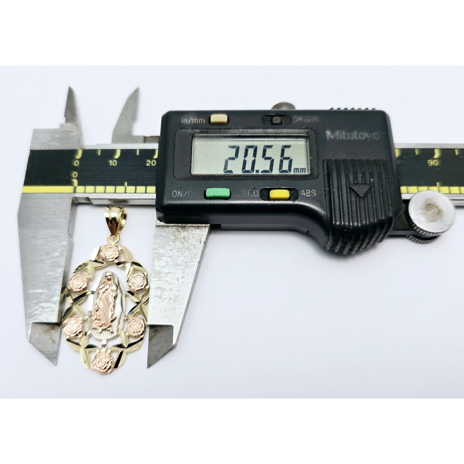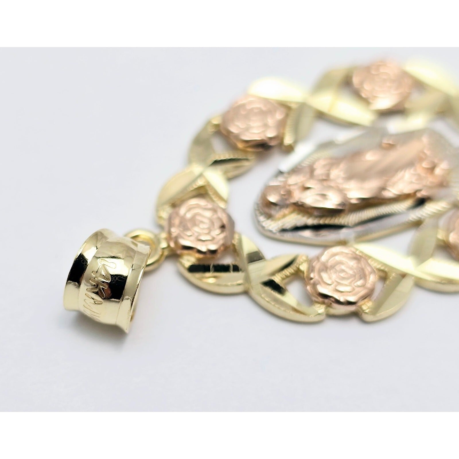 14K Tri Tone Gold Religious Flower Floral Saint Mary Charm Pendant