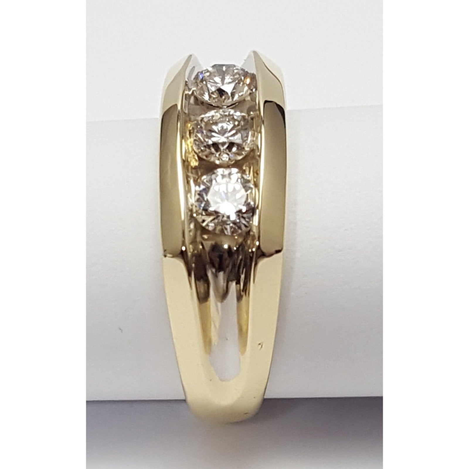 14K Two Tone Gold Channel Set Three Stone Diamond Mens Ring