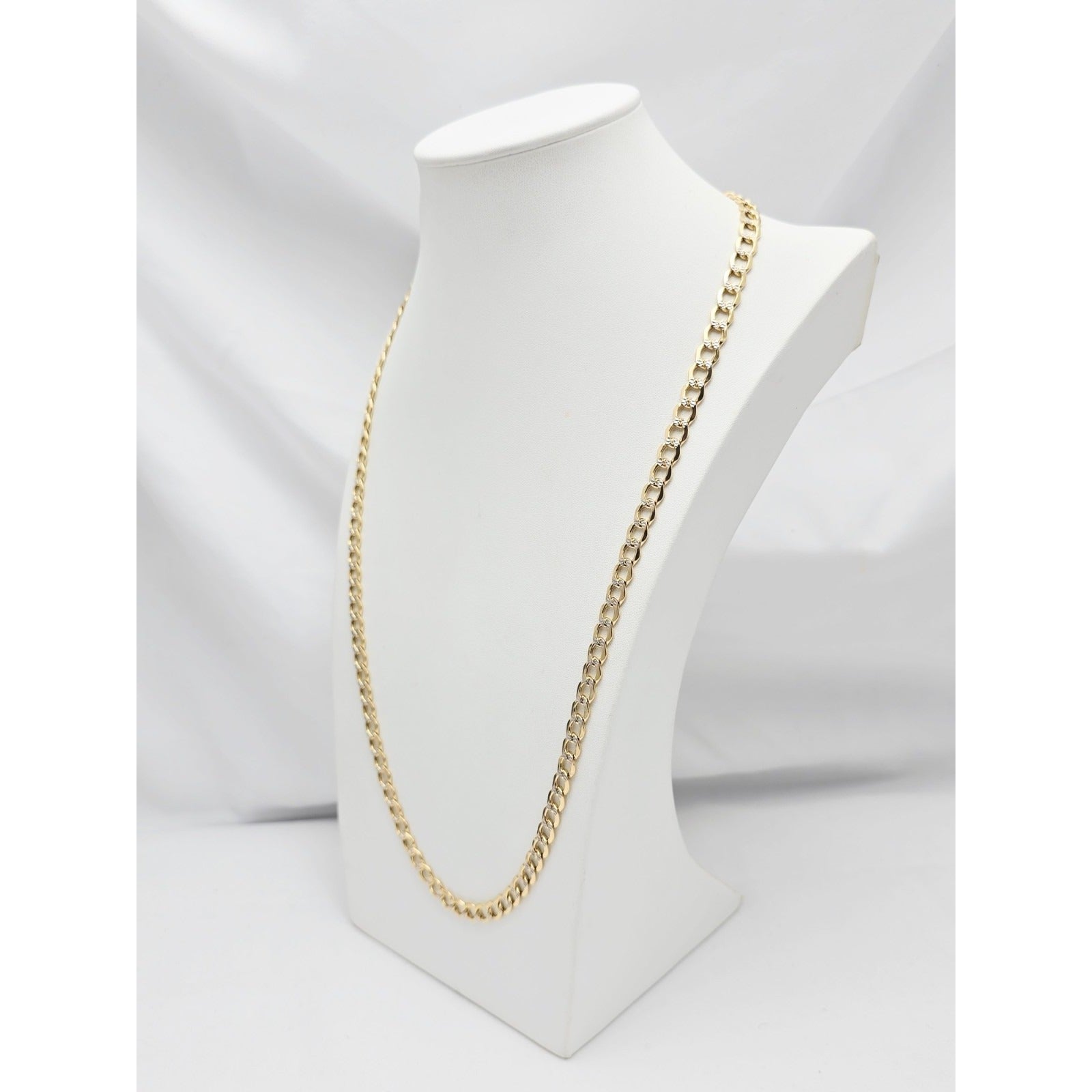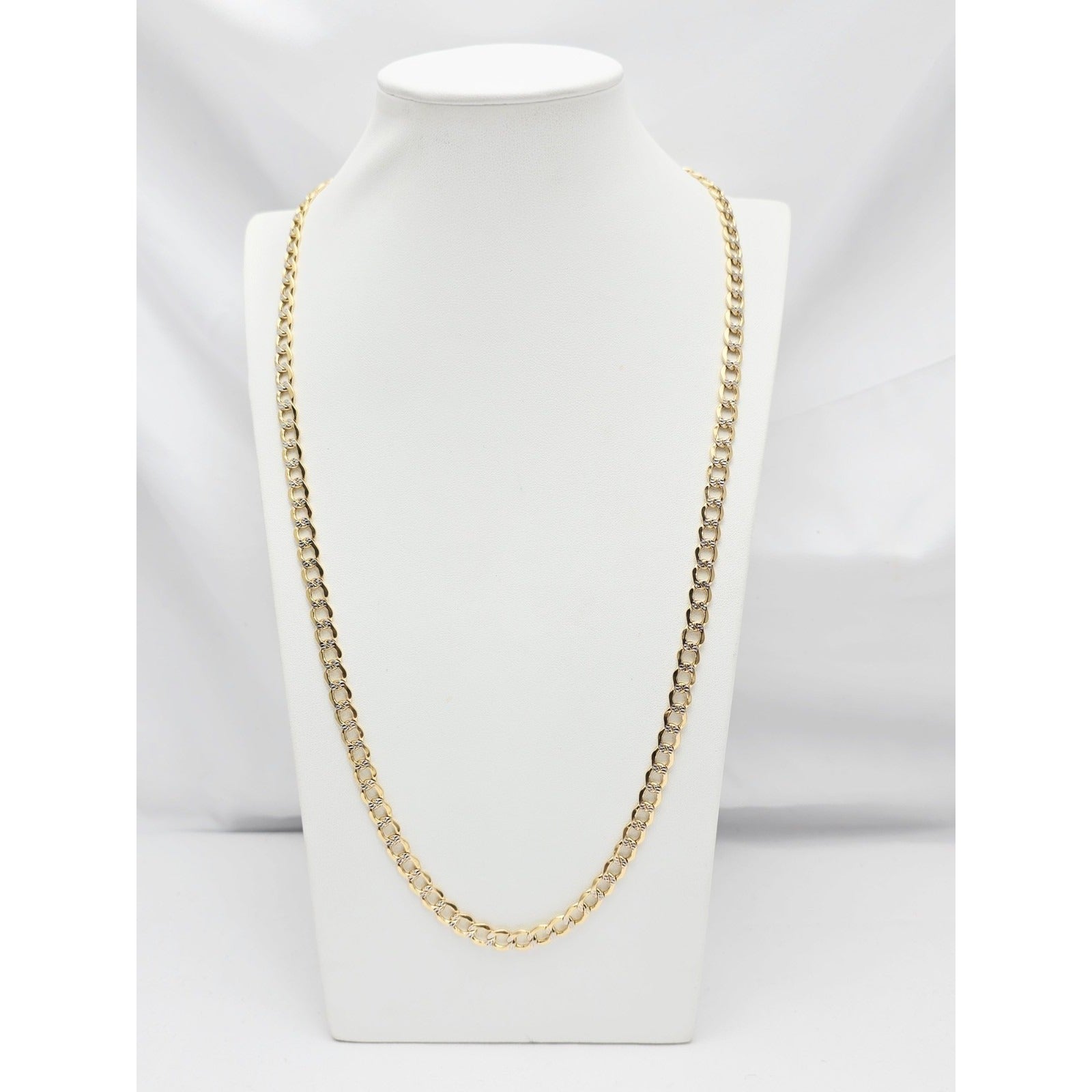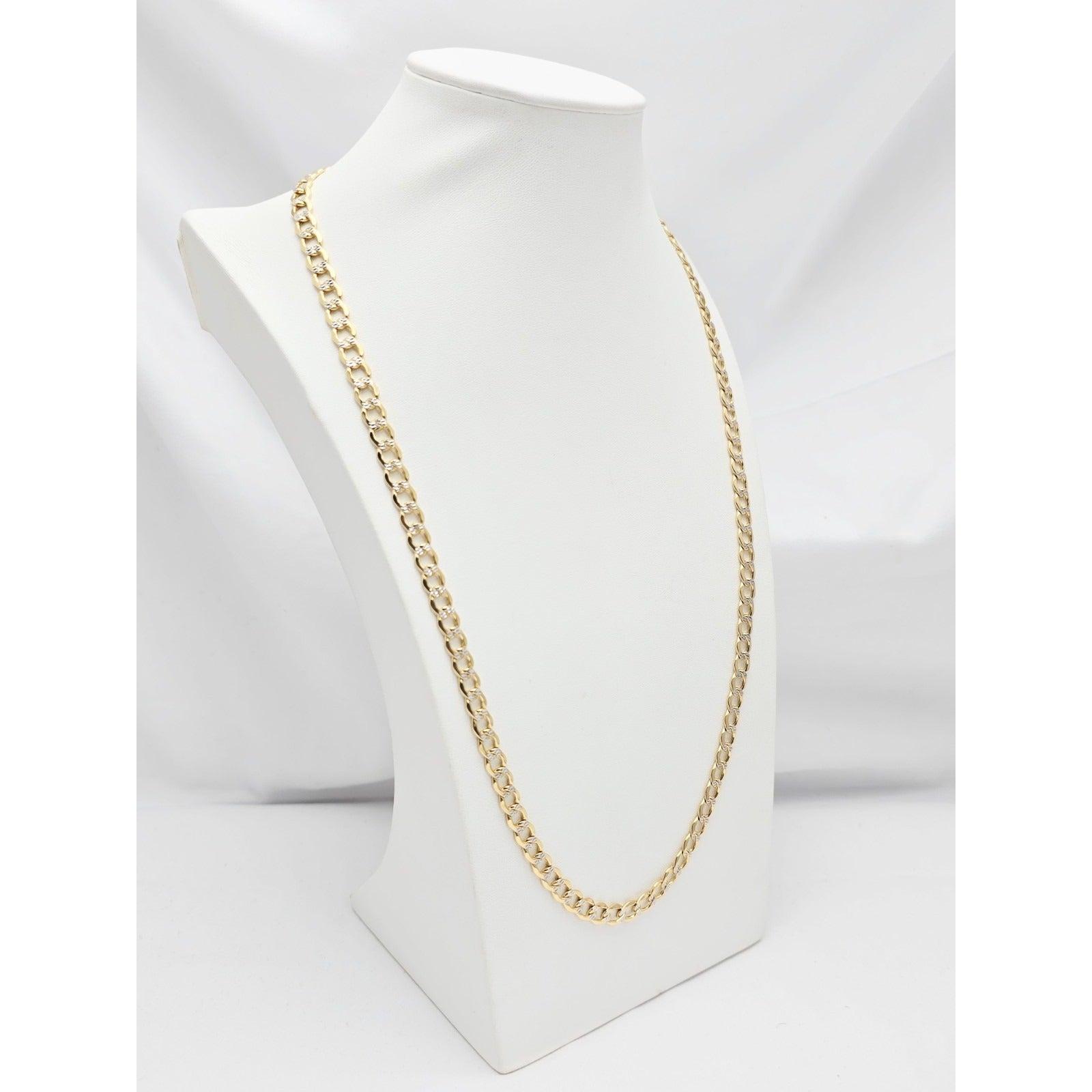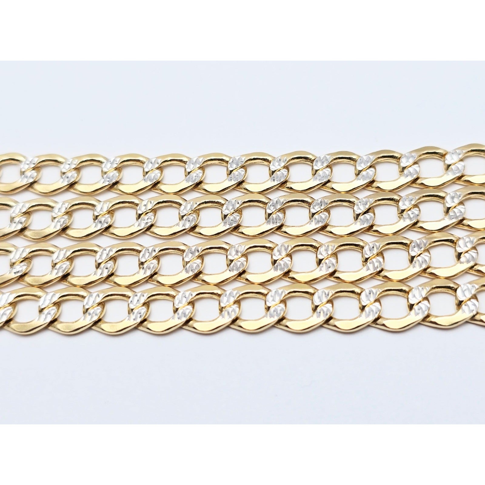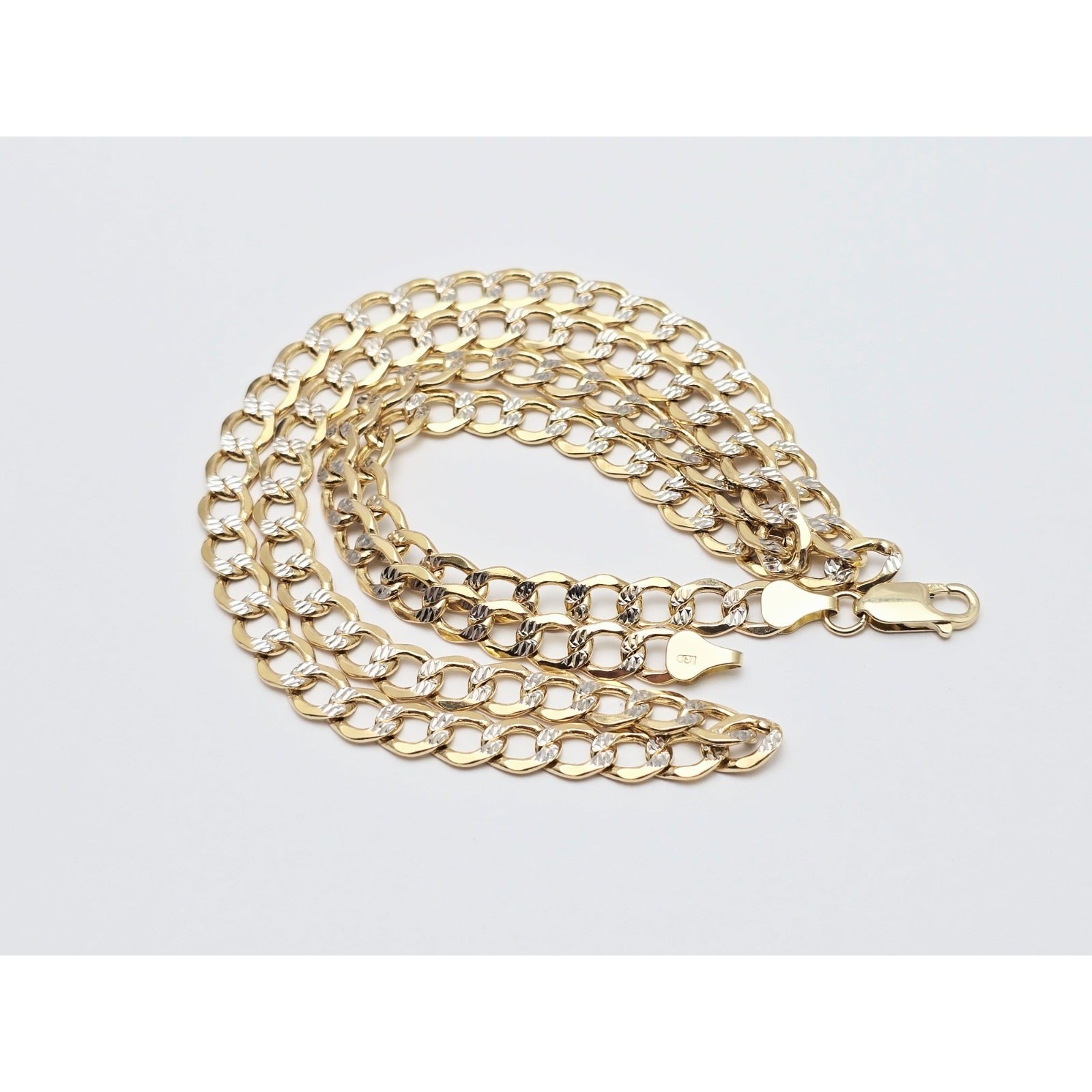 14K Two Tone Gold Diamond Cut Cuban Link Chain Necklace