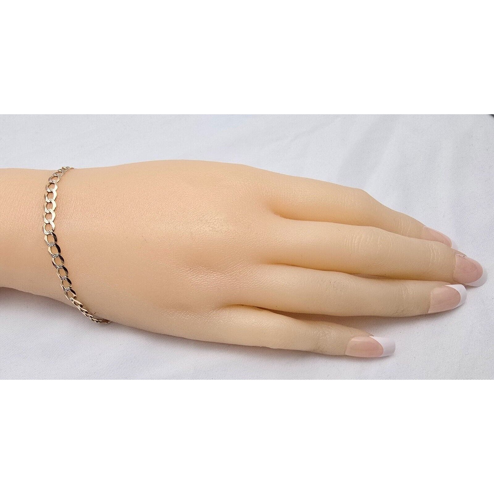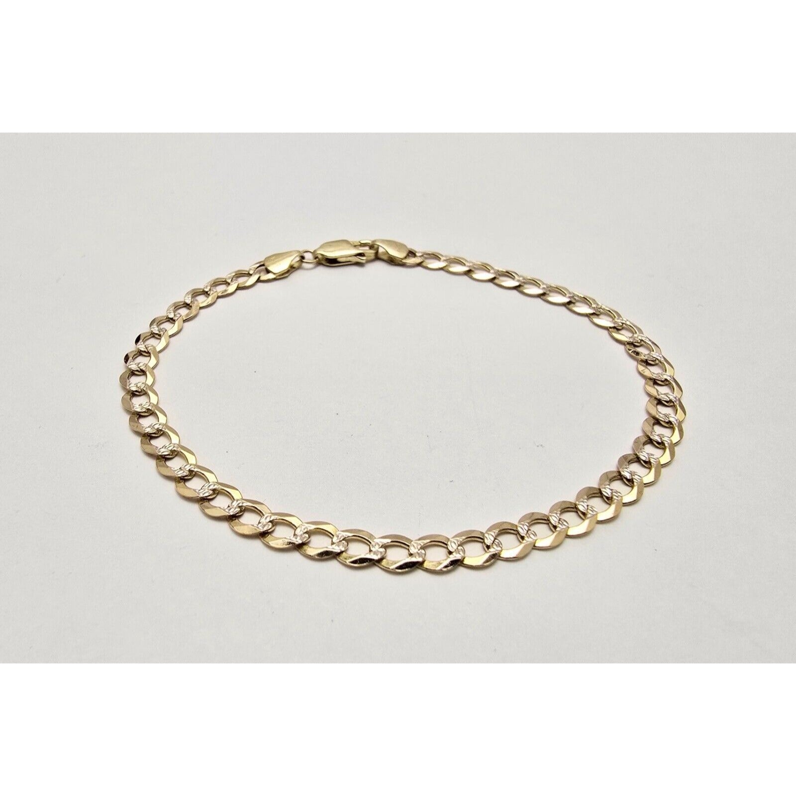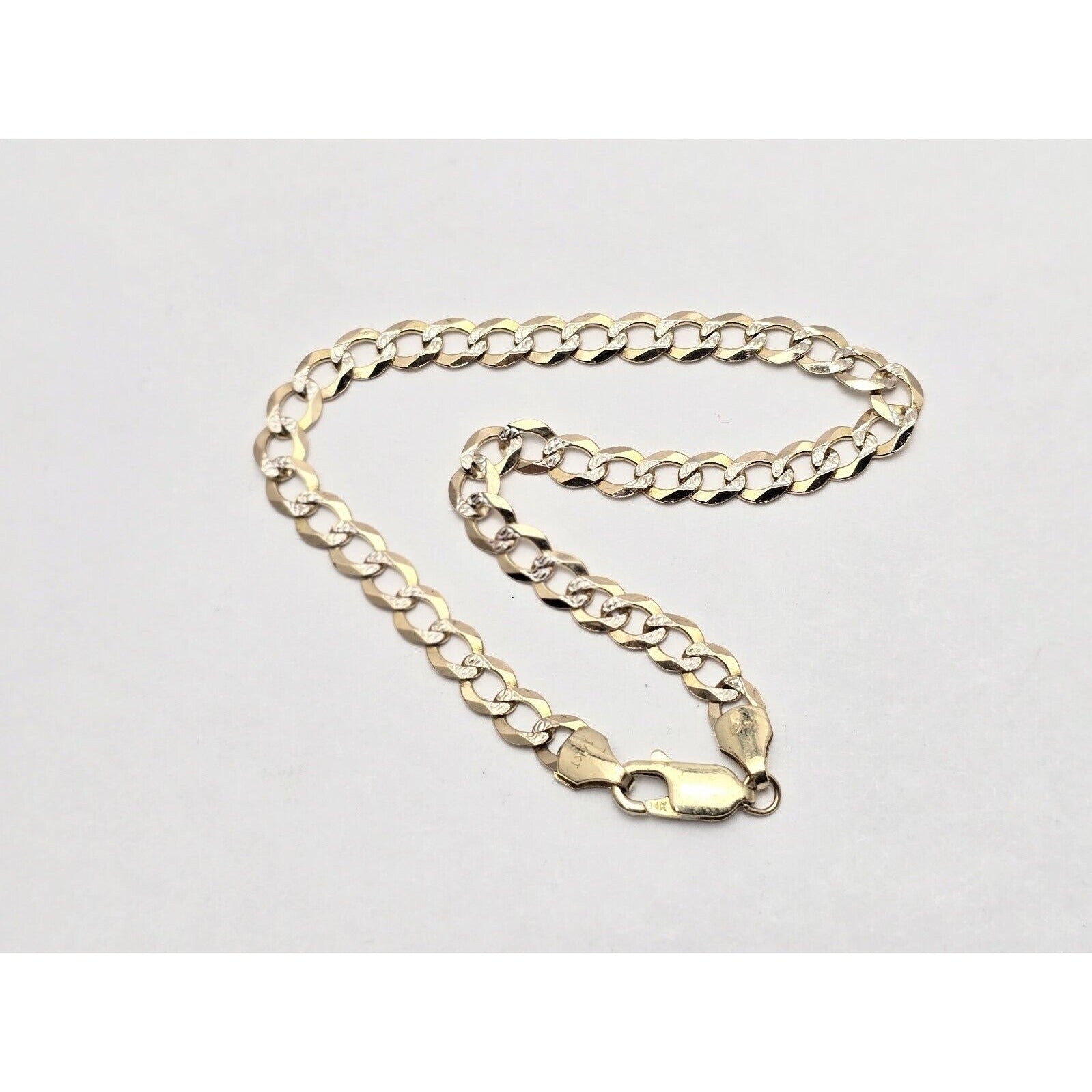 14K Two Tone Gold Diamond Cut Curb Cuban Link Chain Bracelet
