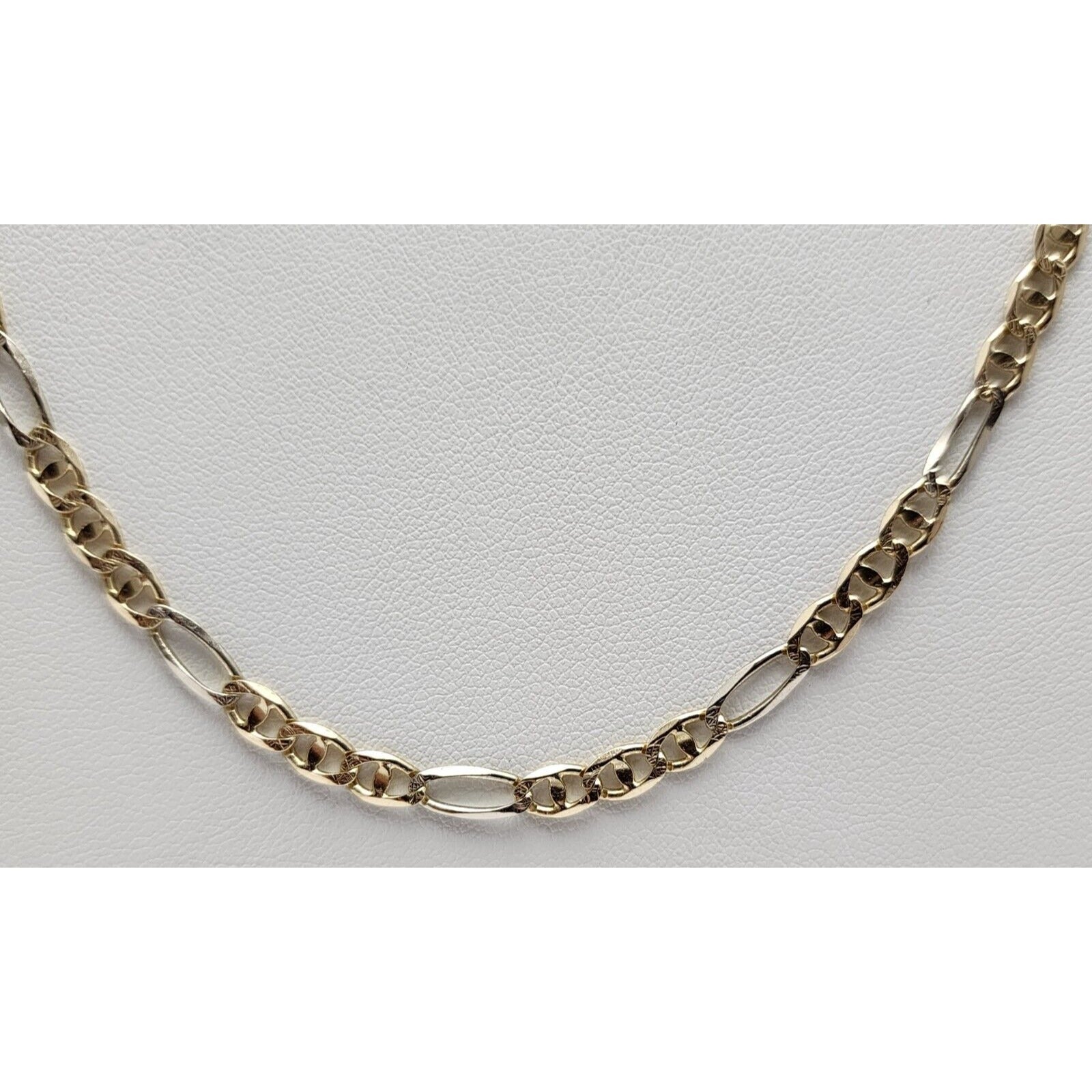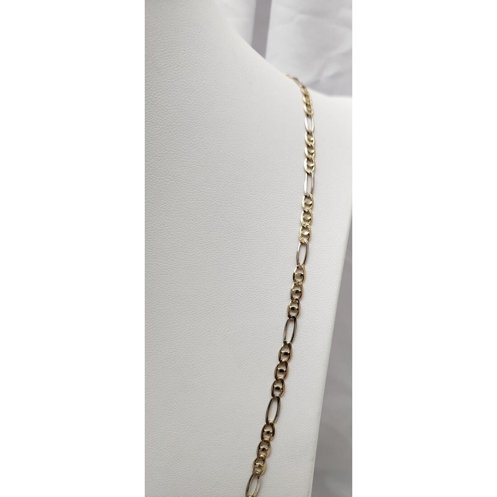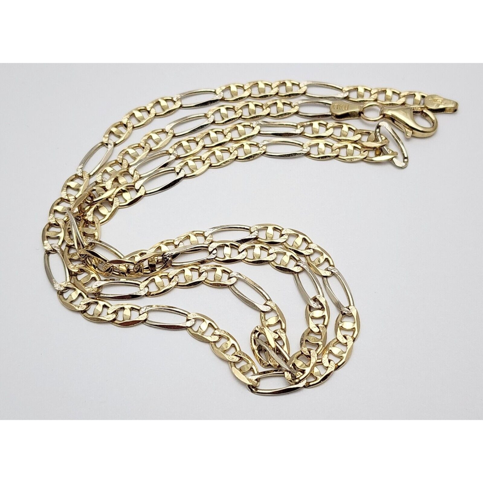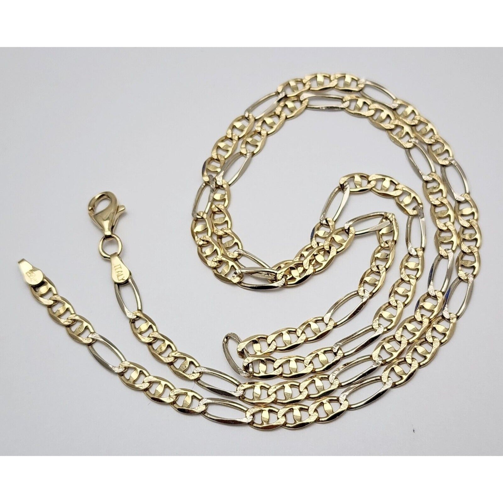 14K Two Tone Gold Diamond Cut Figaro Link Chain Necklace