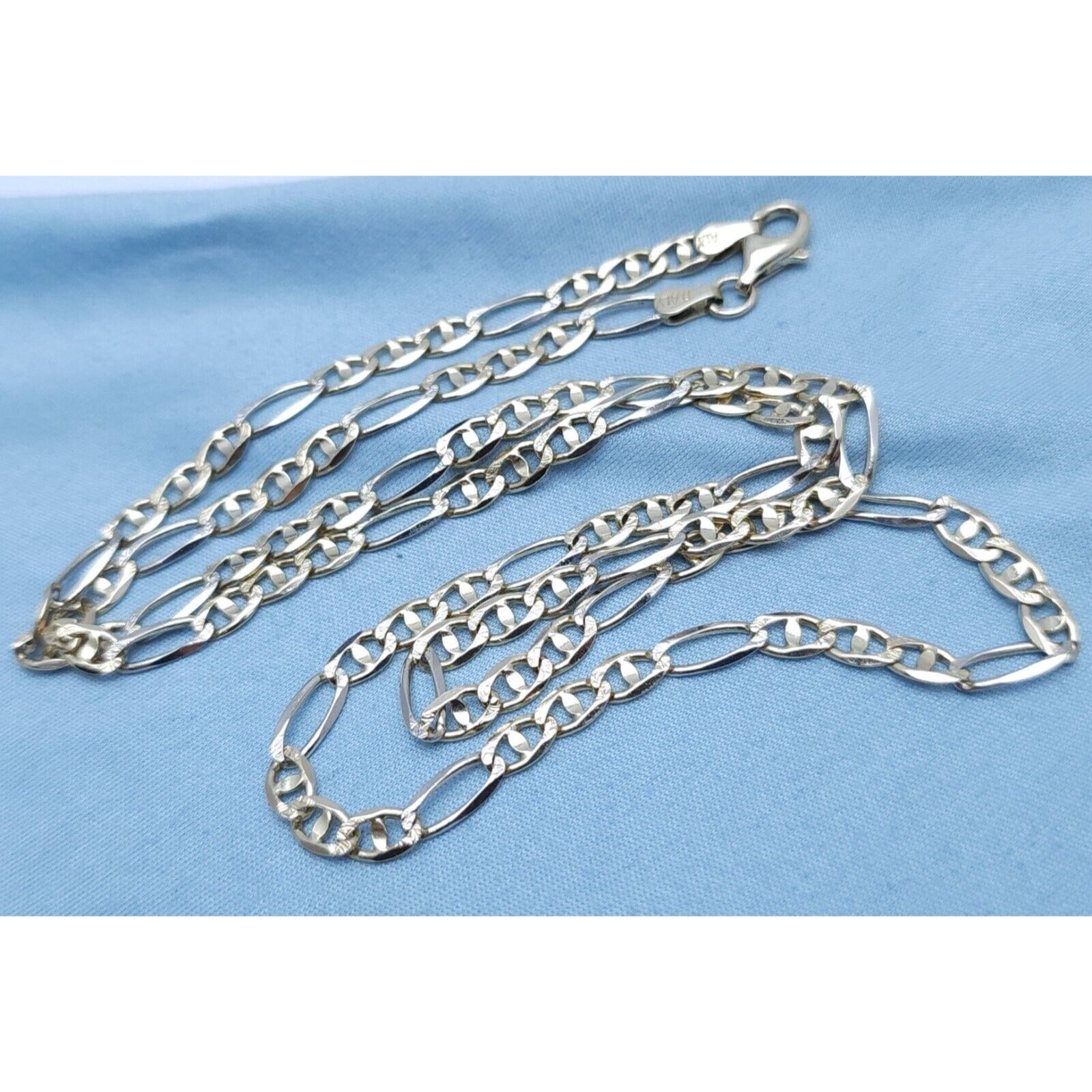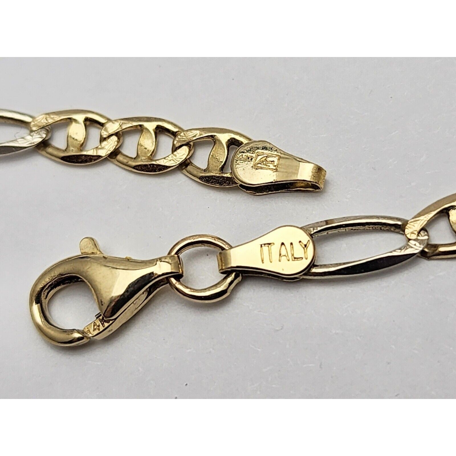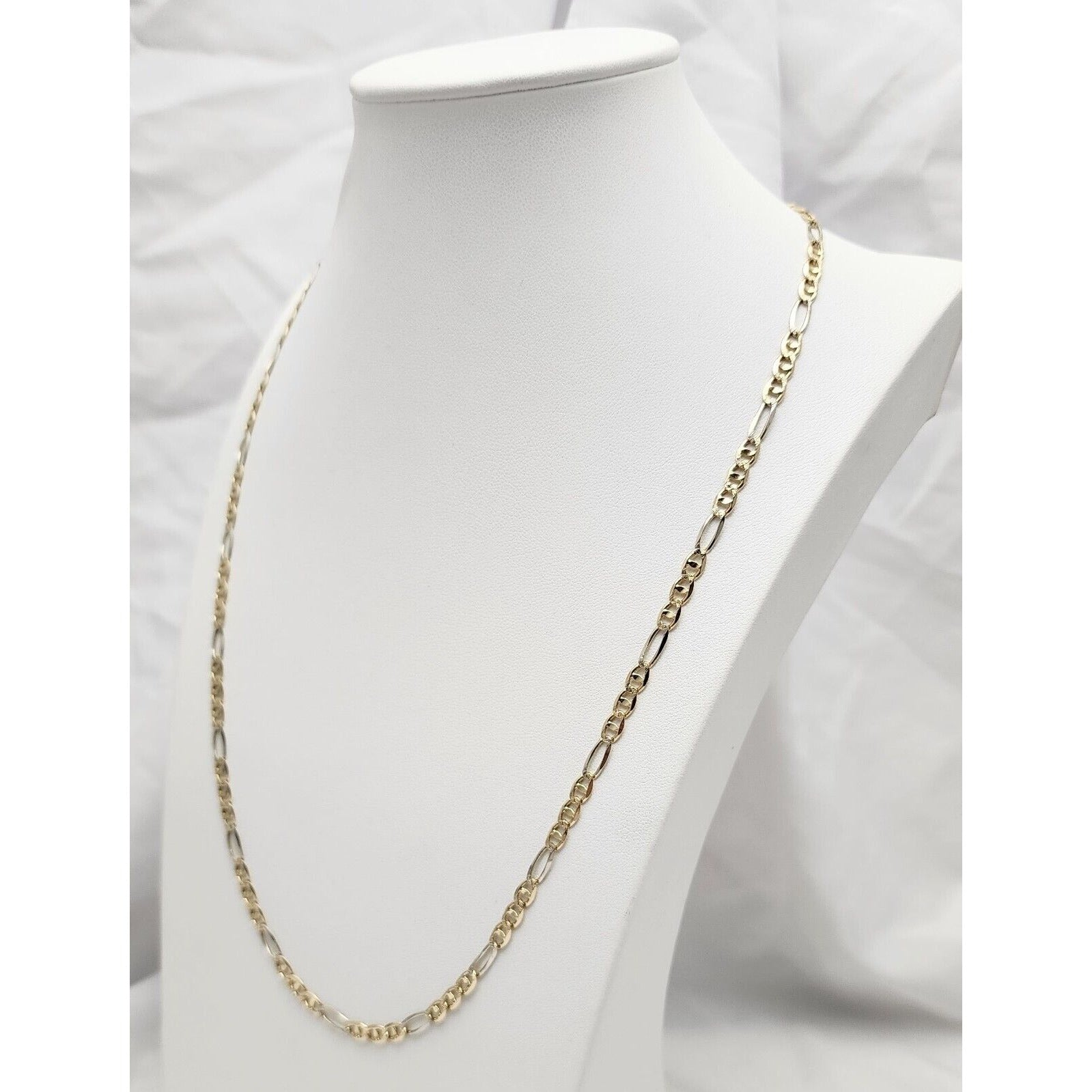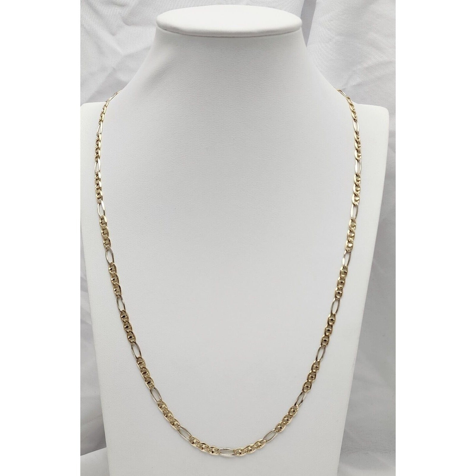 14K Two Tone Gold Diamond Cut Figaro Link Chain Necklace