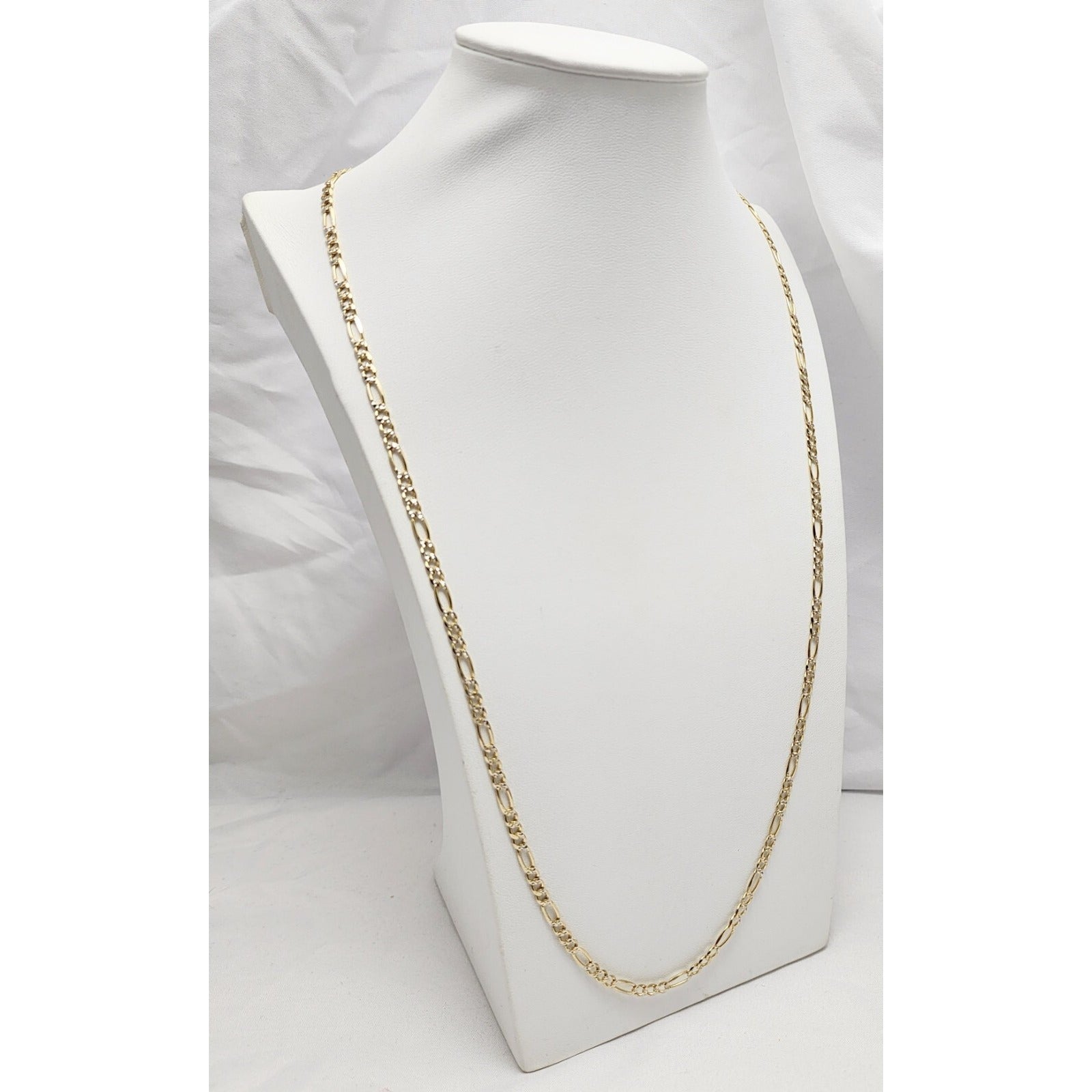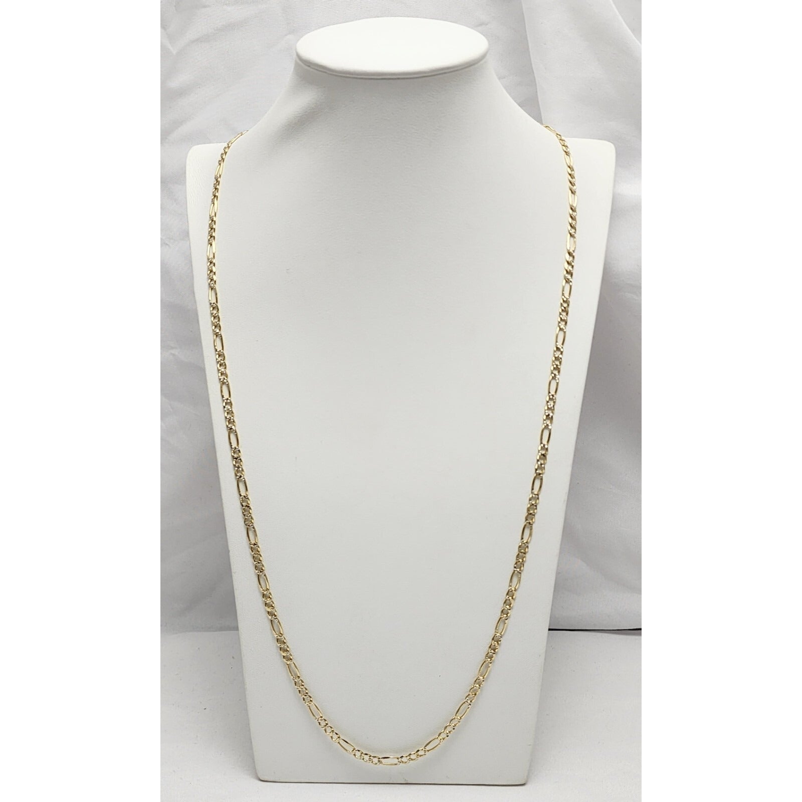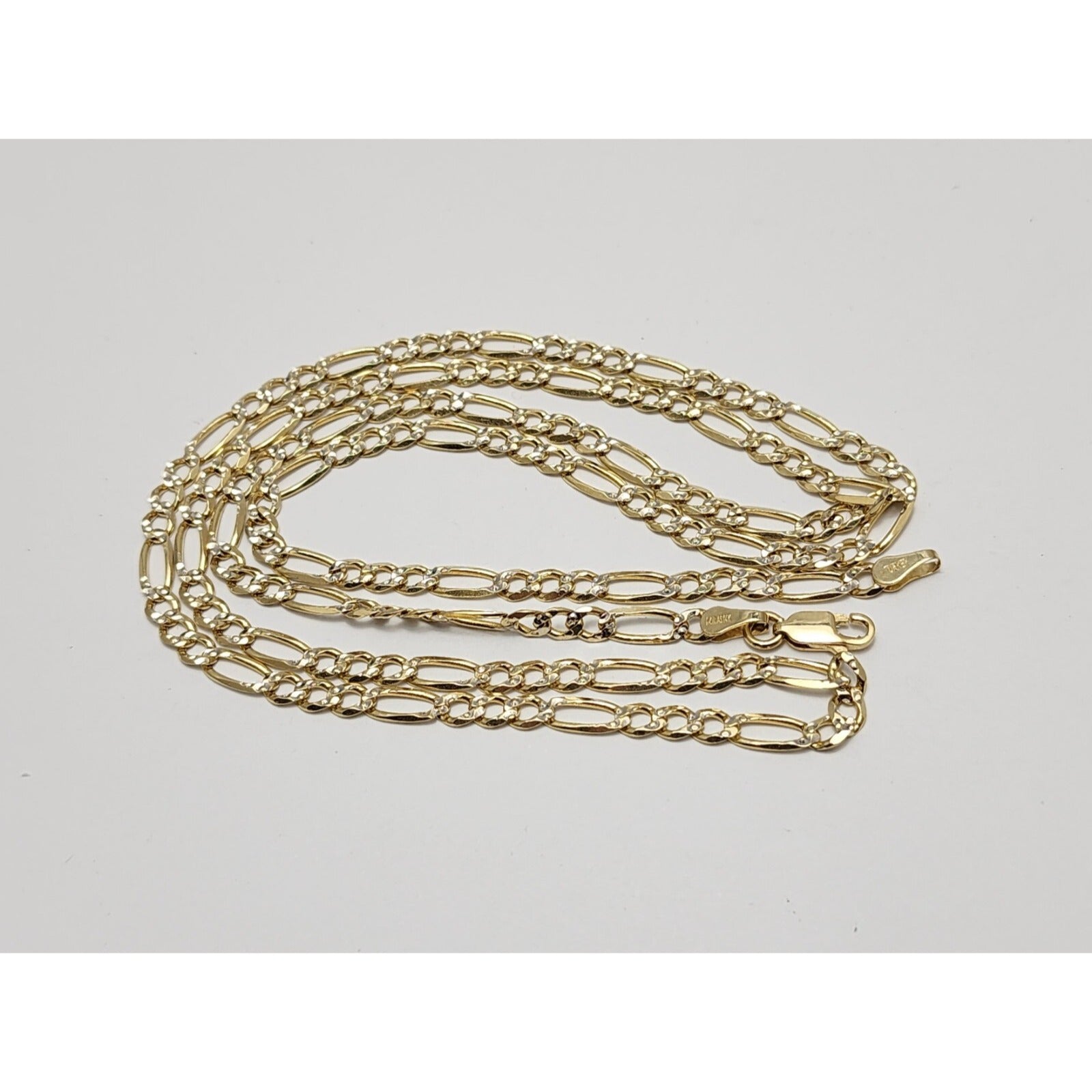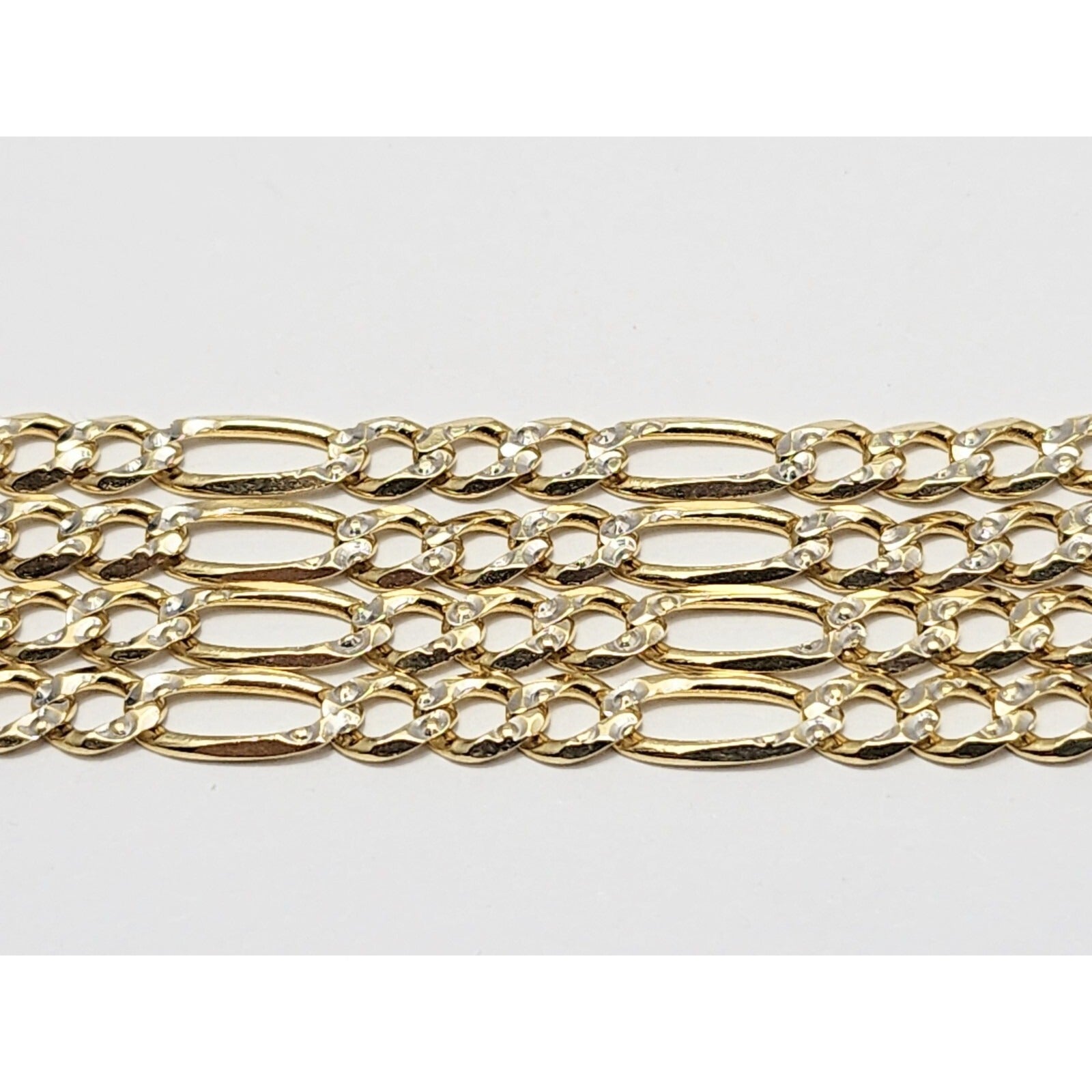 14K Two Tone Gold Diamond Cut Figaro Link Chain Necklace