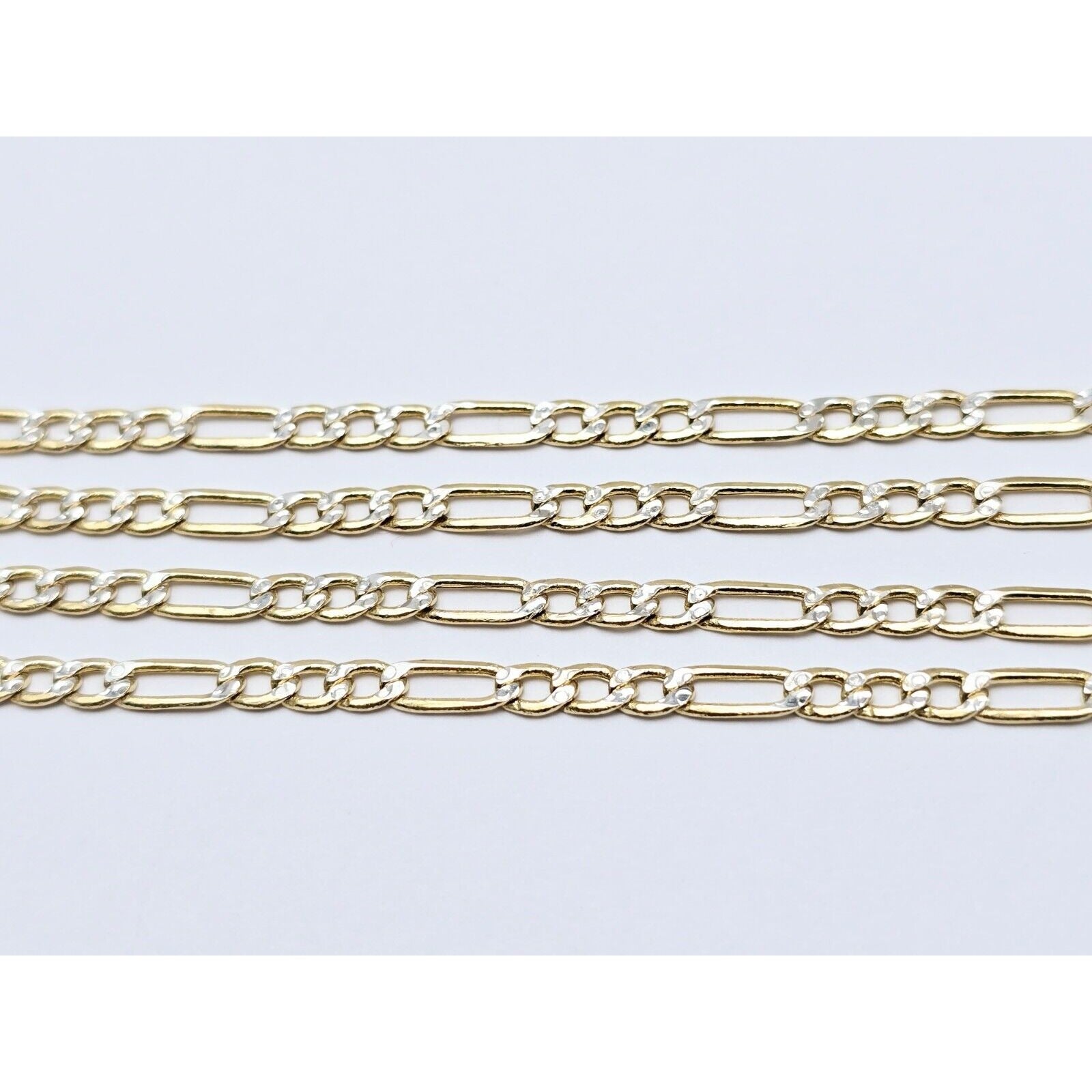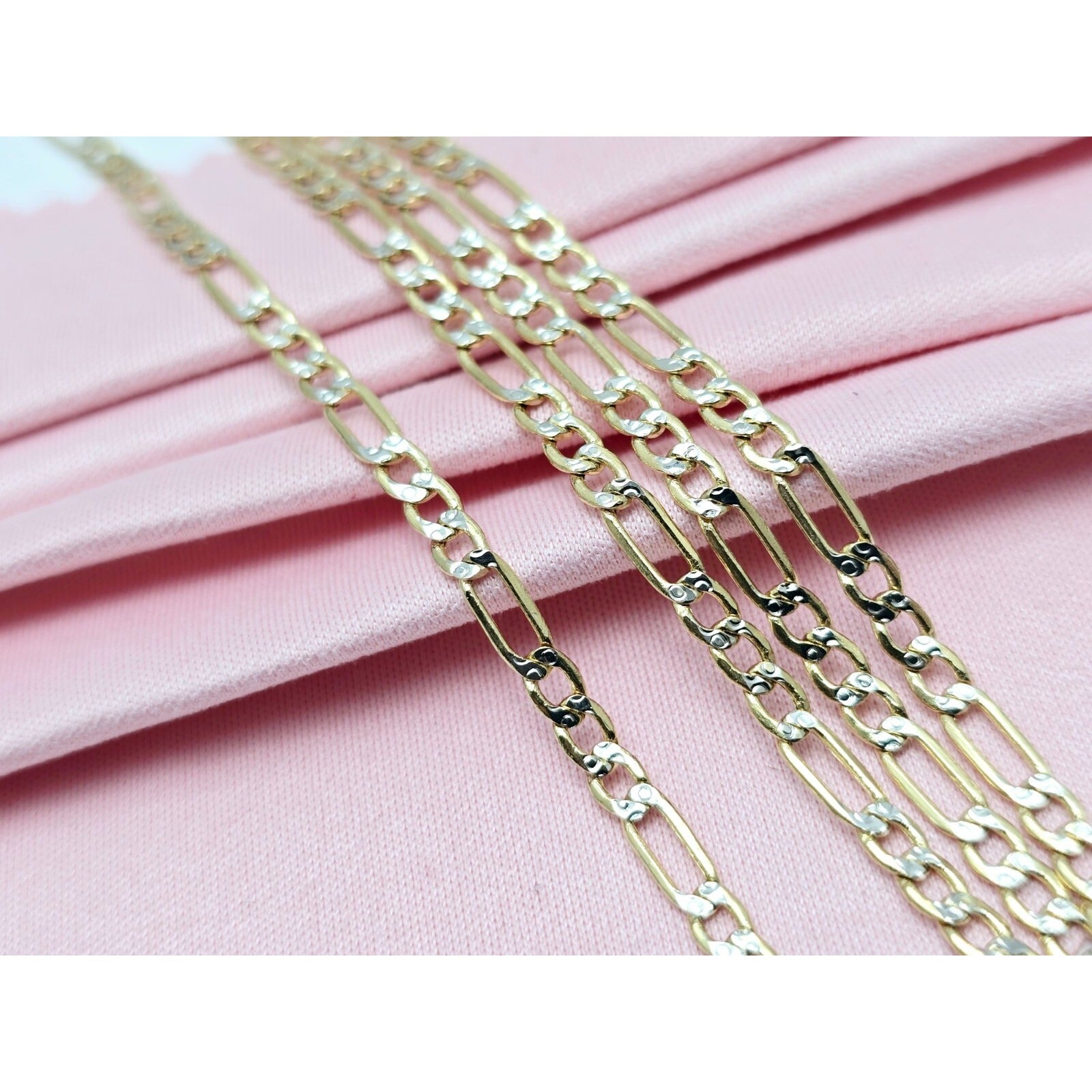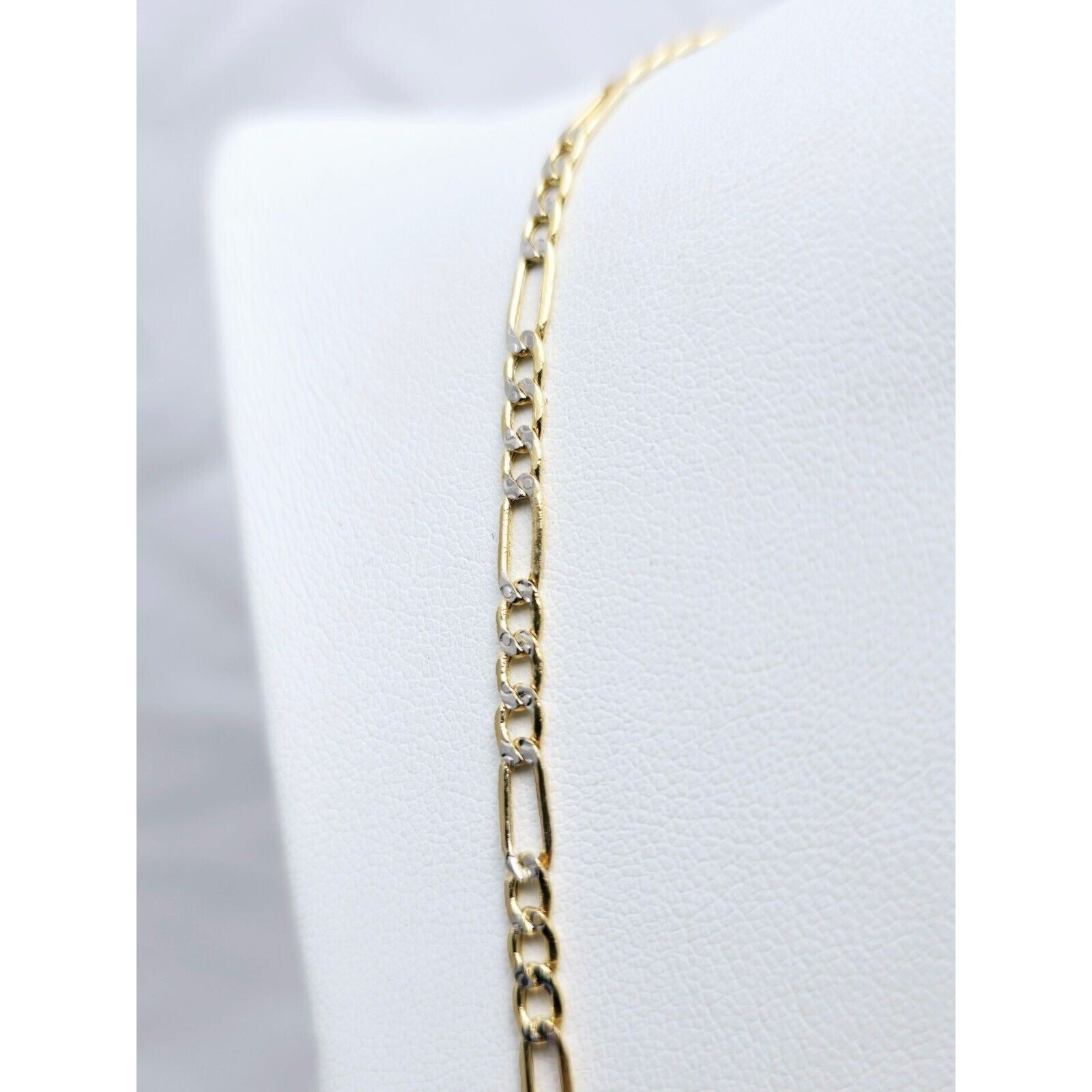 14K Two Tone Gold Diamond Cut Figaro Link Chain Necklace