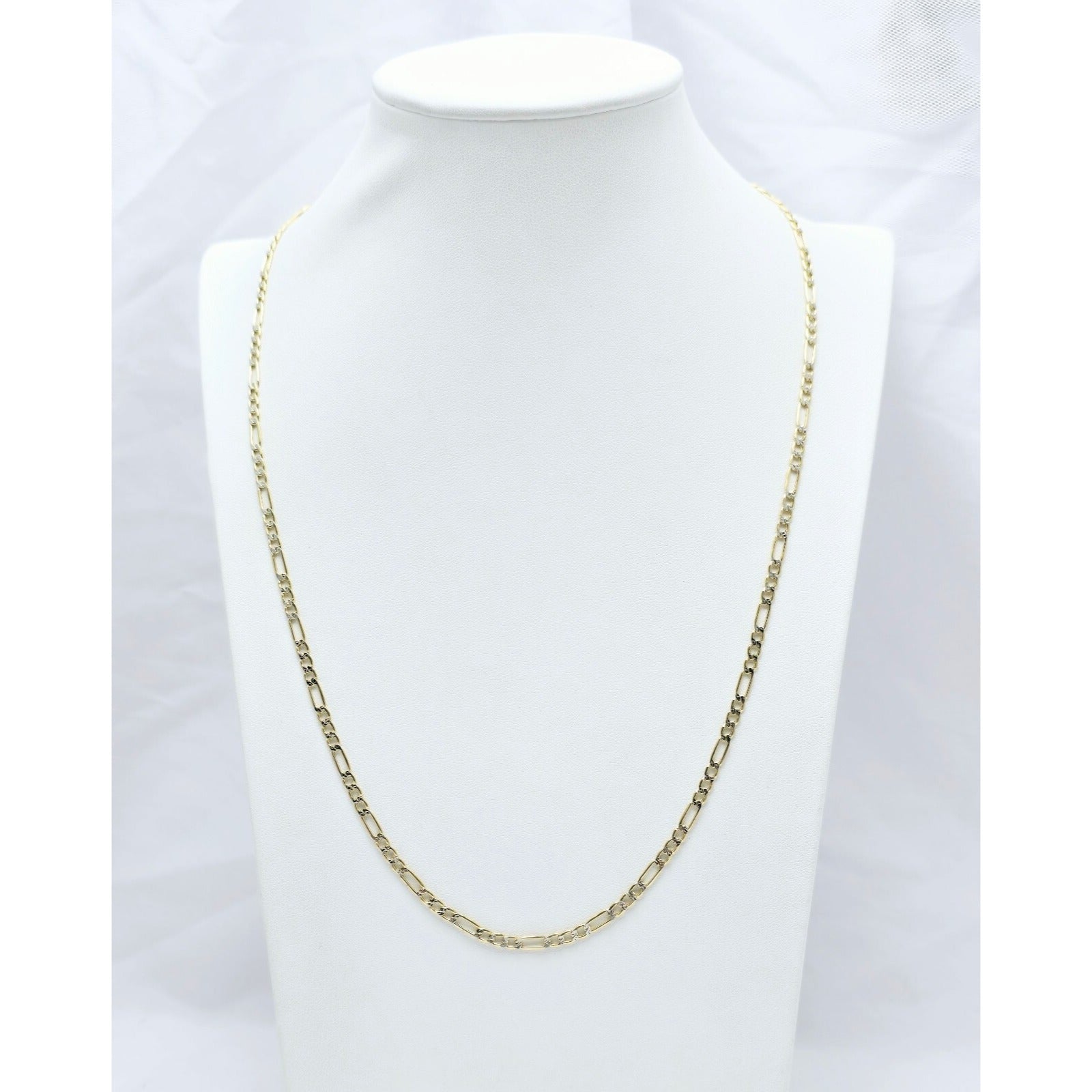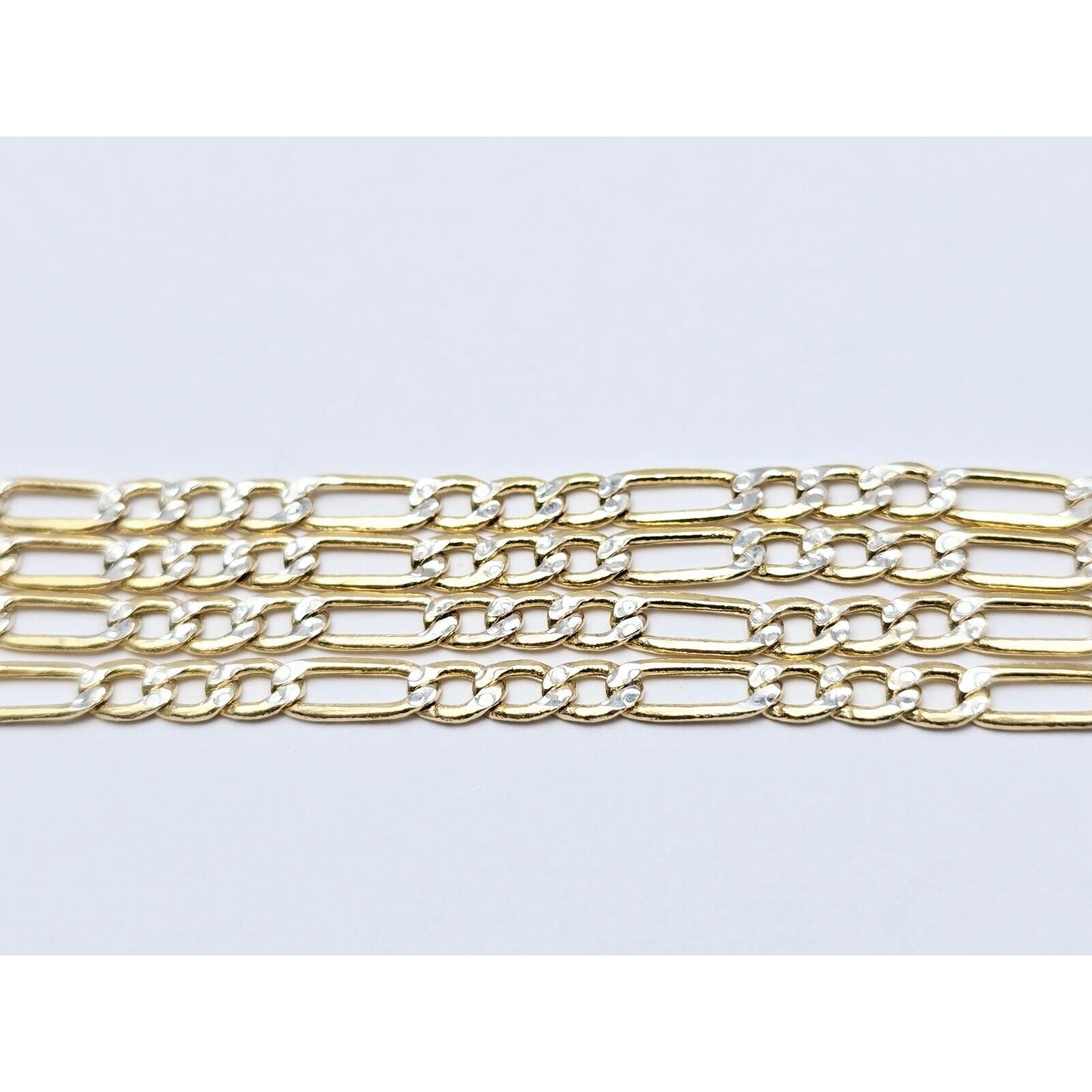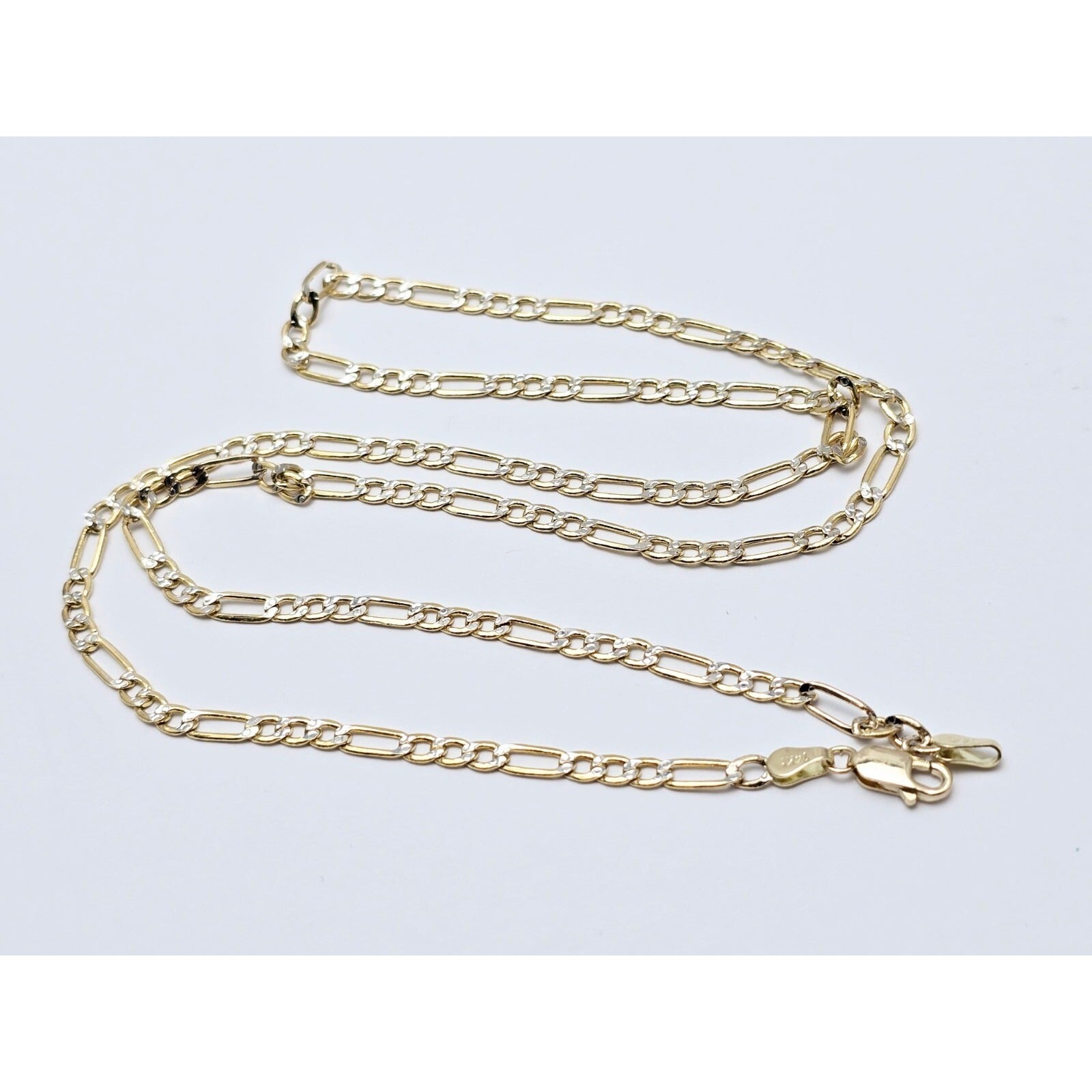 14K Two Tone Gold Diamond Cut Figaro Link Chain Necklace