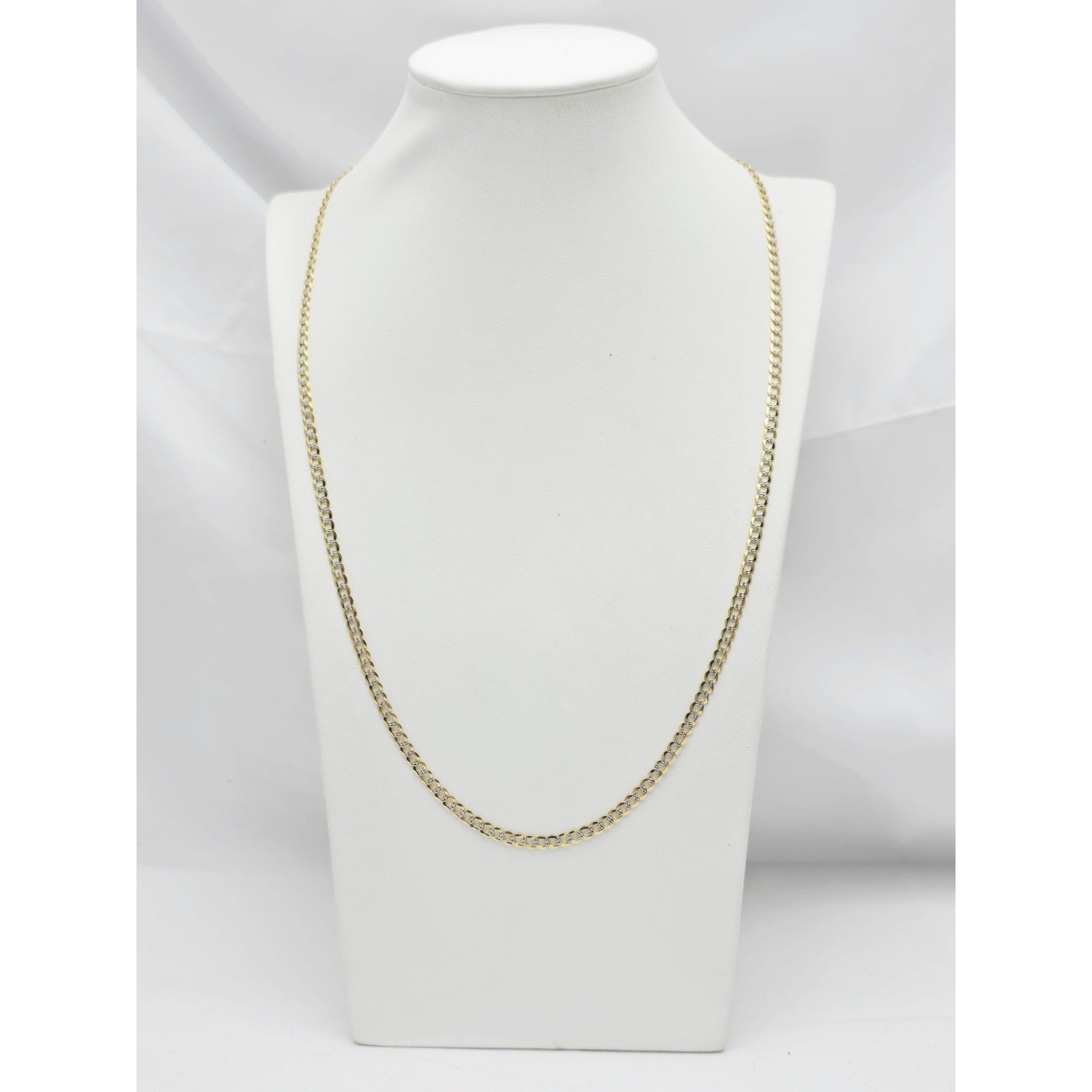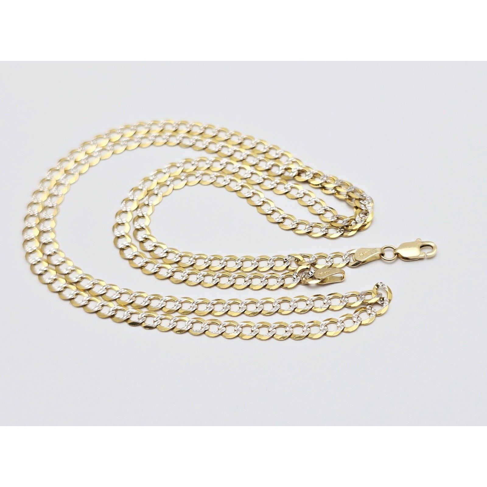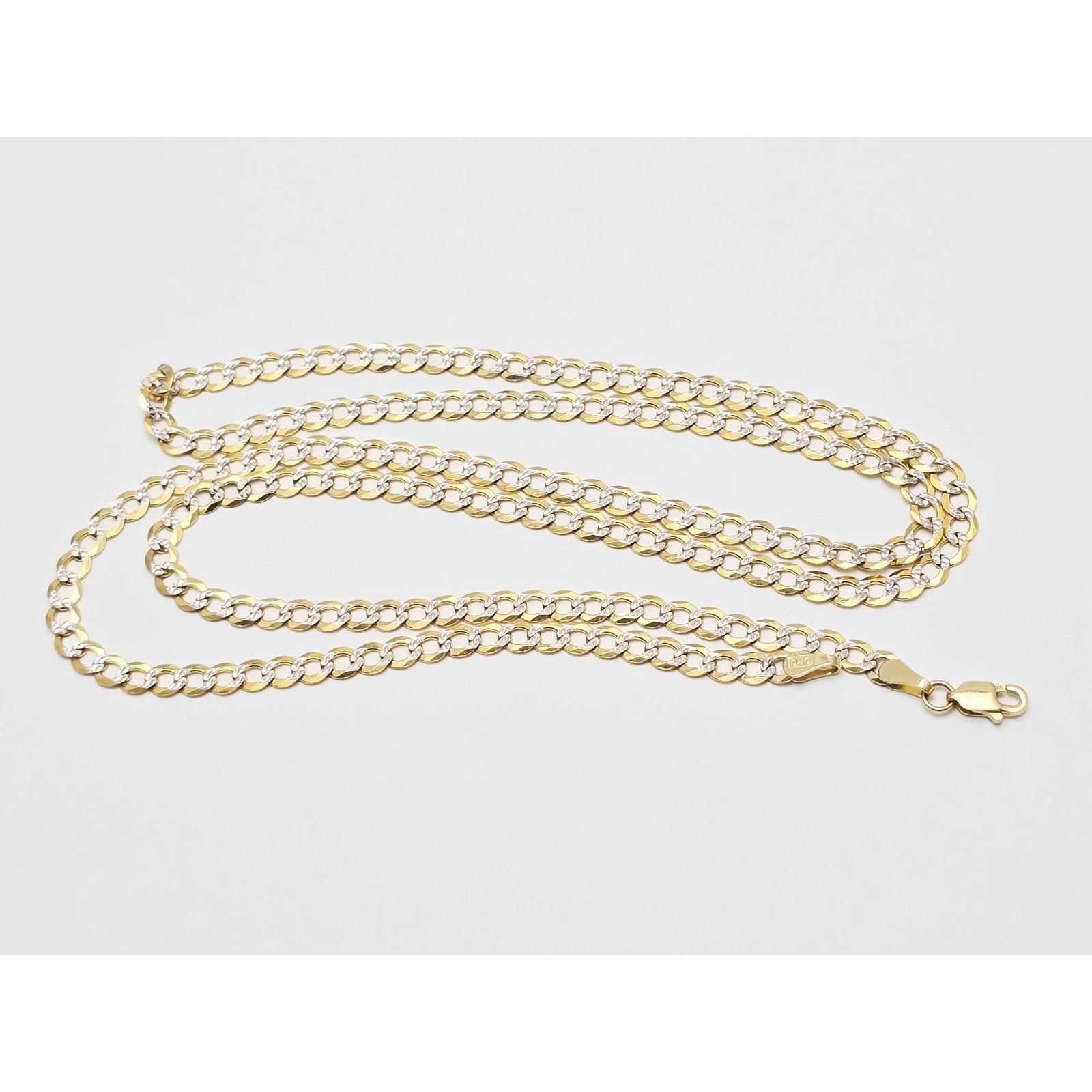 14K Two Tone Gold Diamond Cut Flat Curb Link Chain Necklace