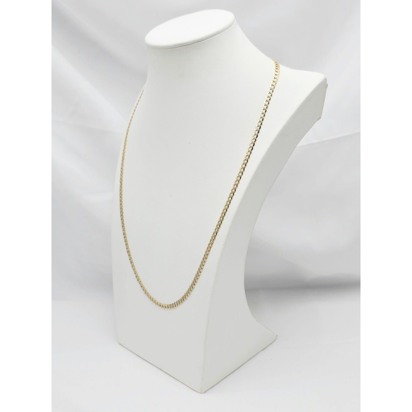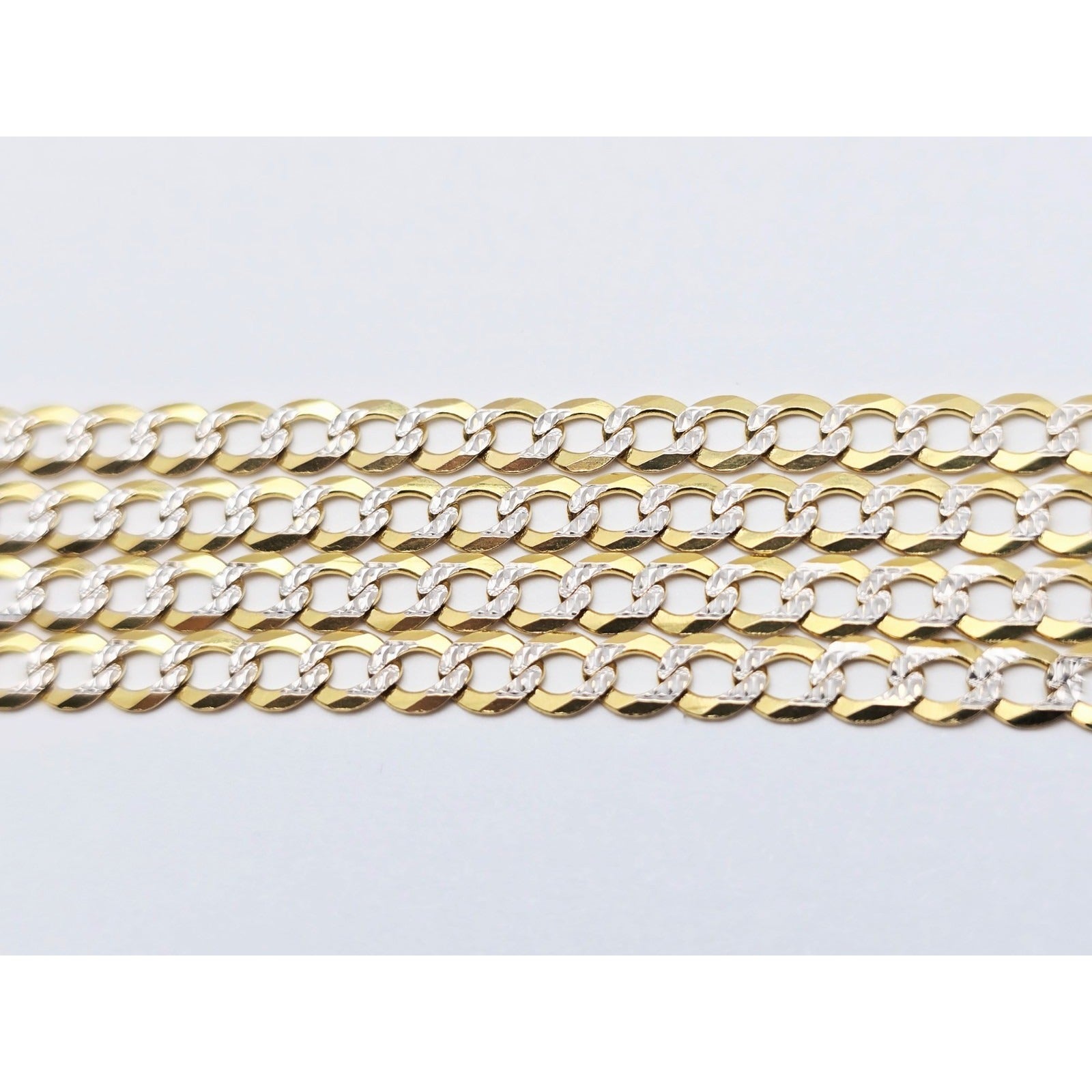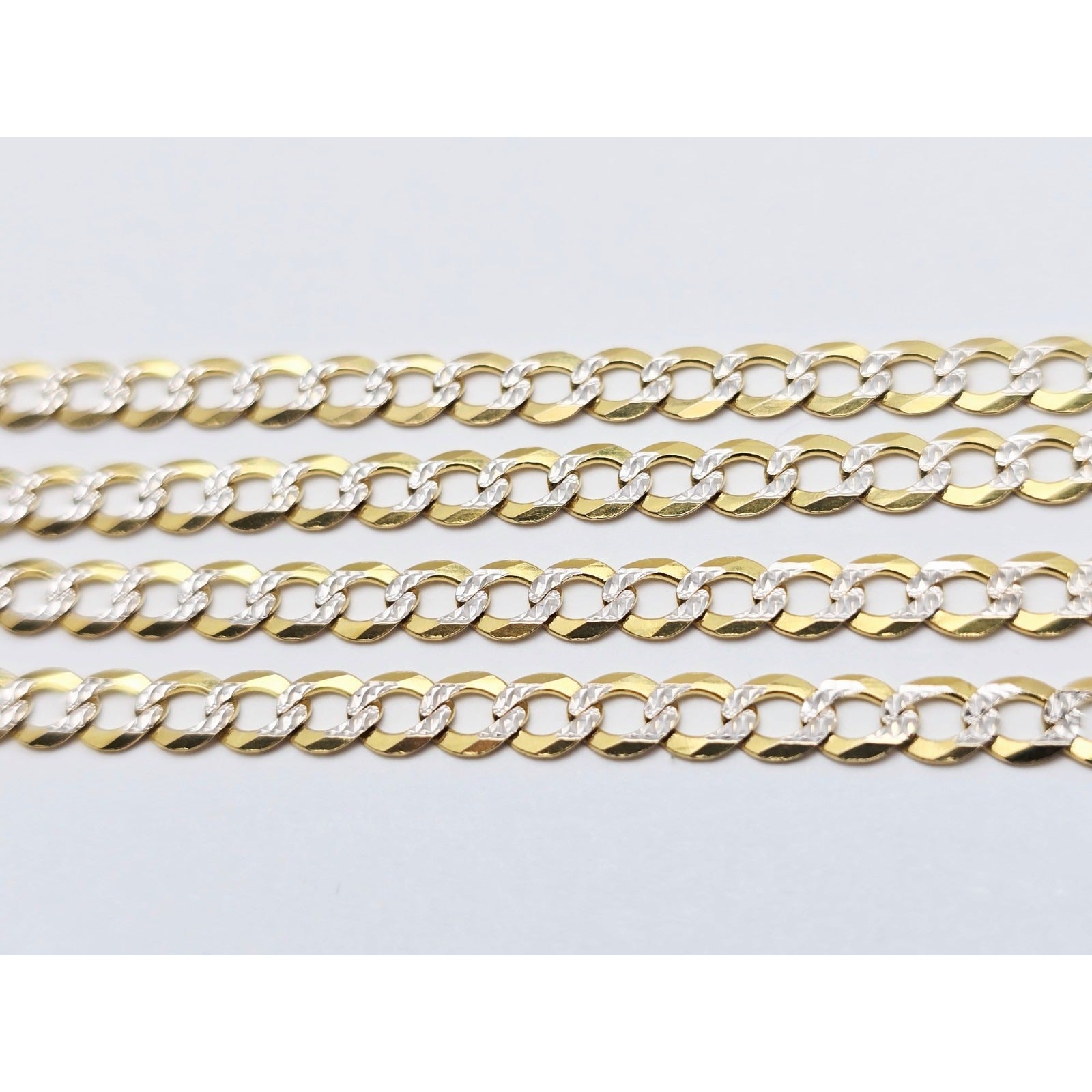 14K Two Tone Gold Diamond Cut Flat Curb Link Chain Necklace