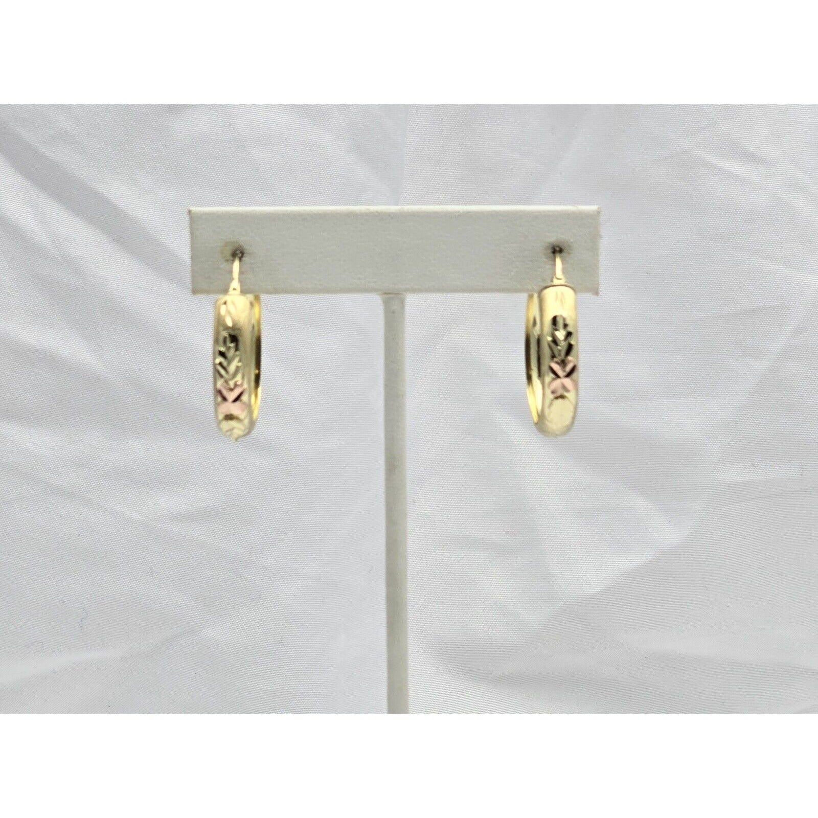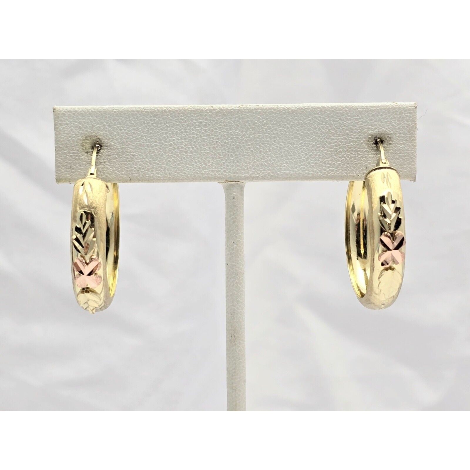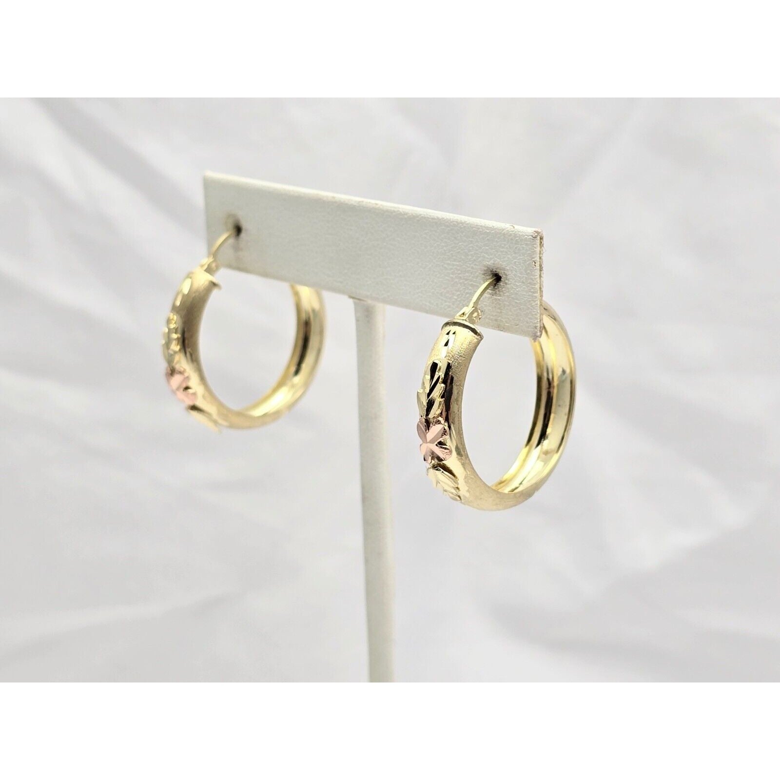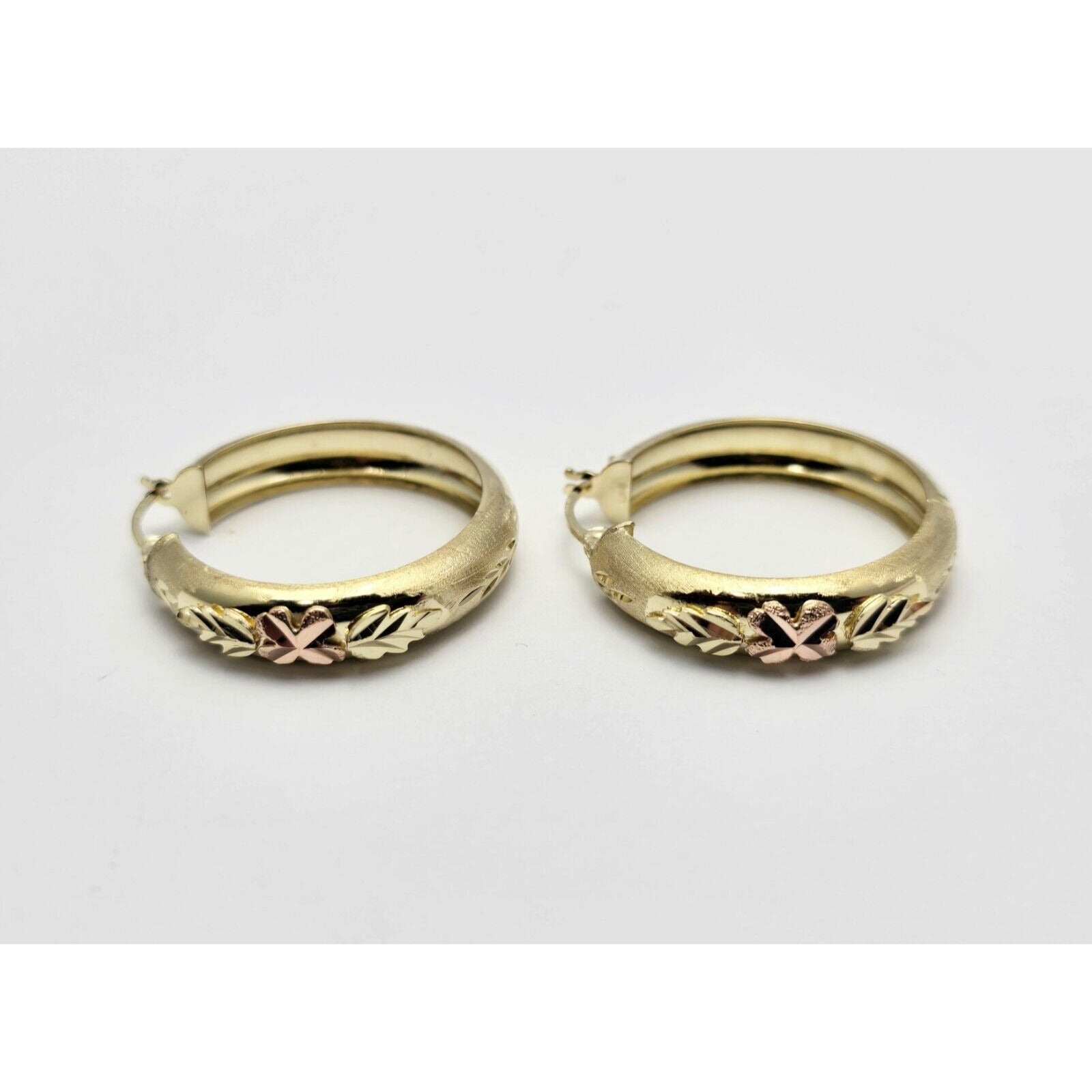 14K Two Tone Gold Diamond Cut Hinged Hoop Earrings