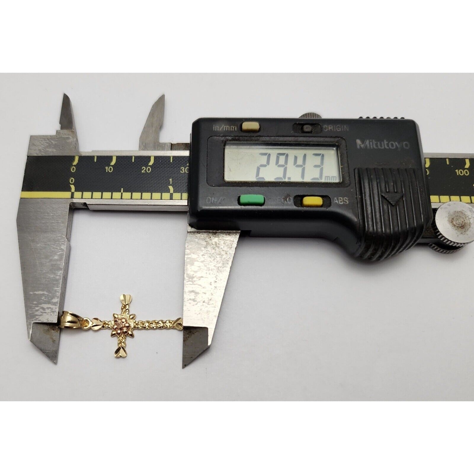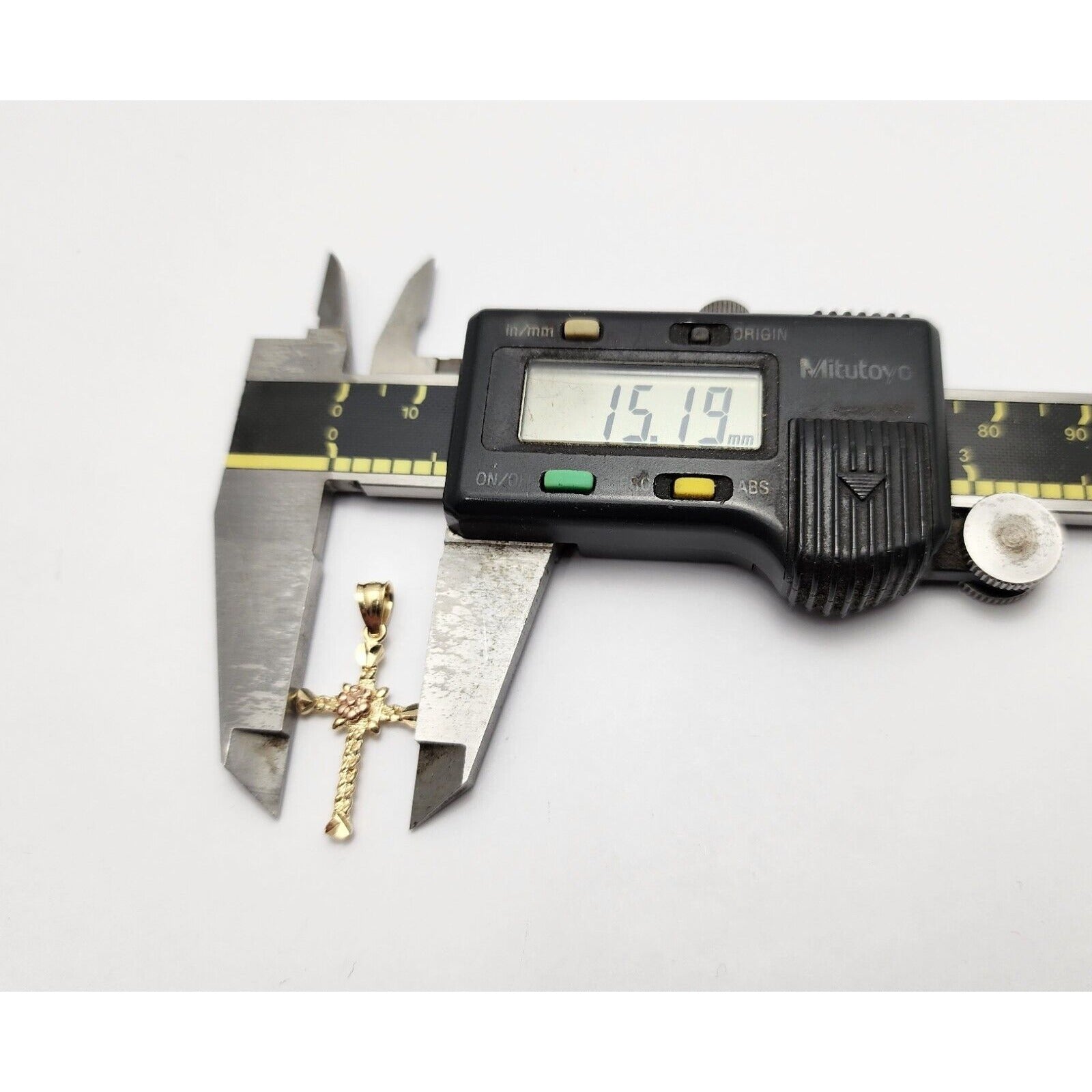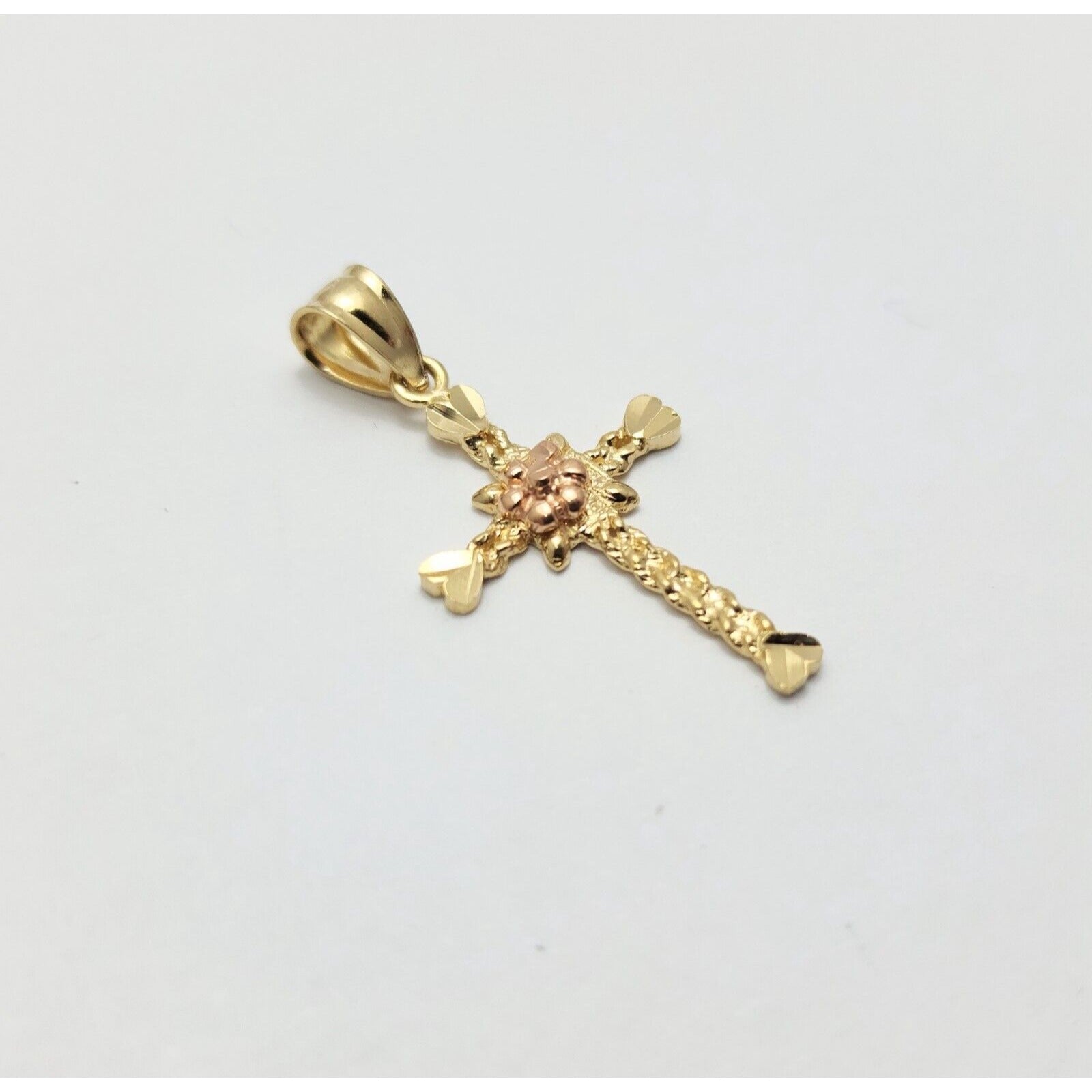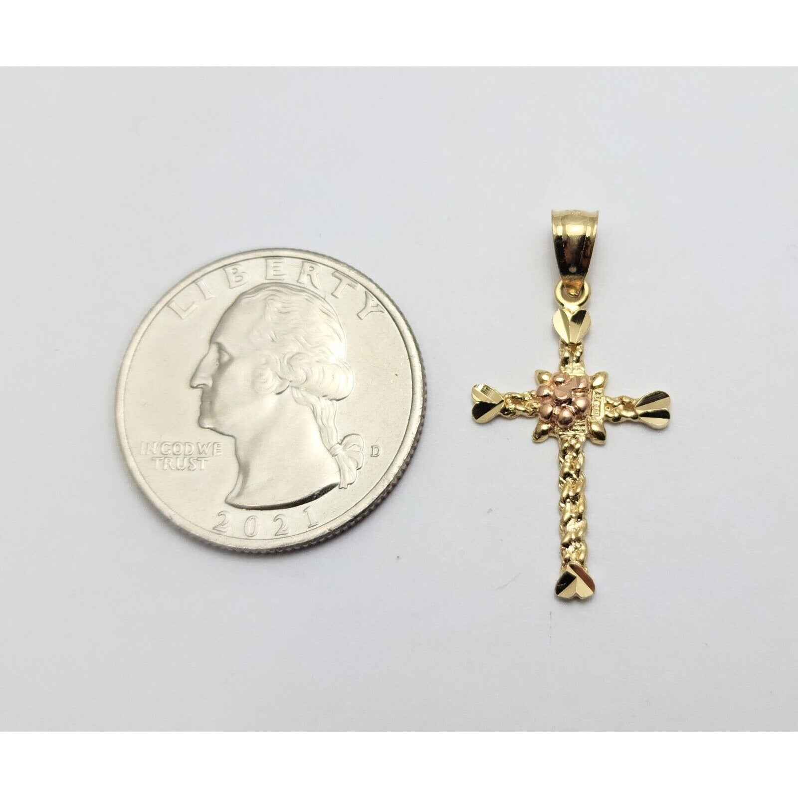 14K Two Tone Gold Diamond Cut Religious Cross Charm Pendant