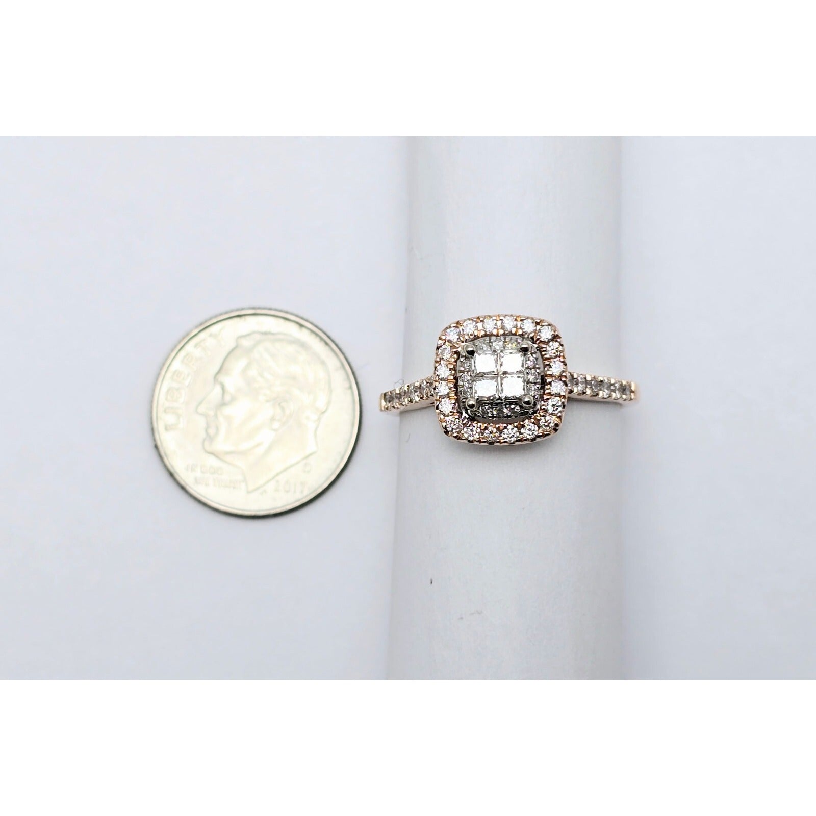 14K Two Tone Gold Double Halo Diamond Engagement Ring
